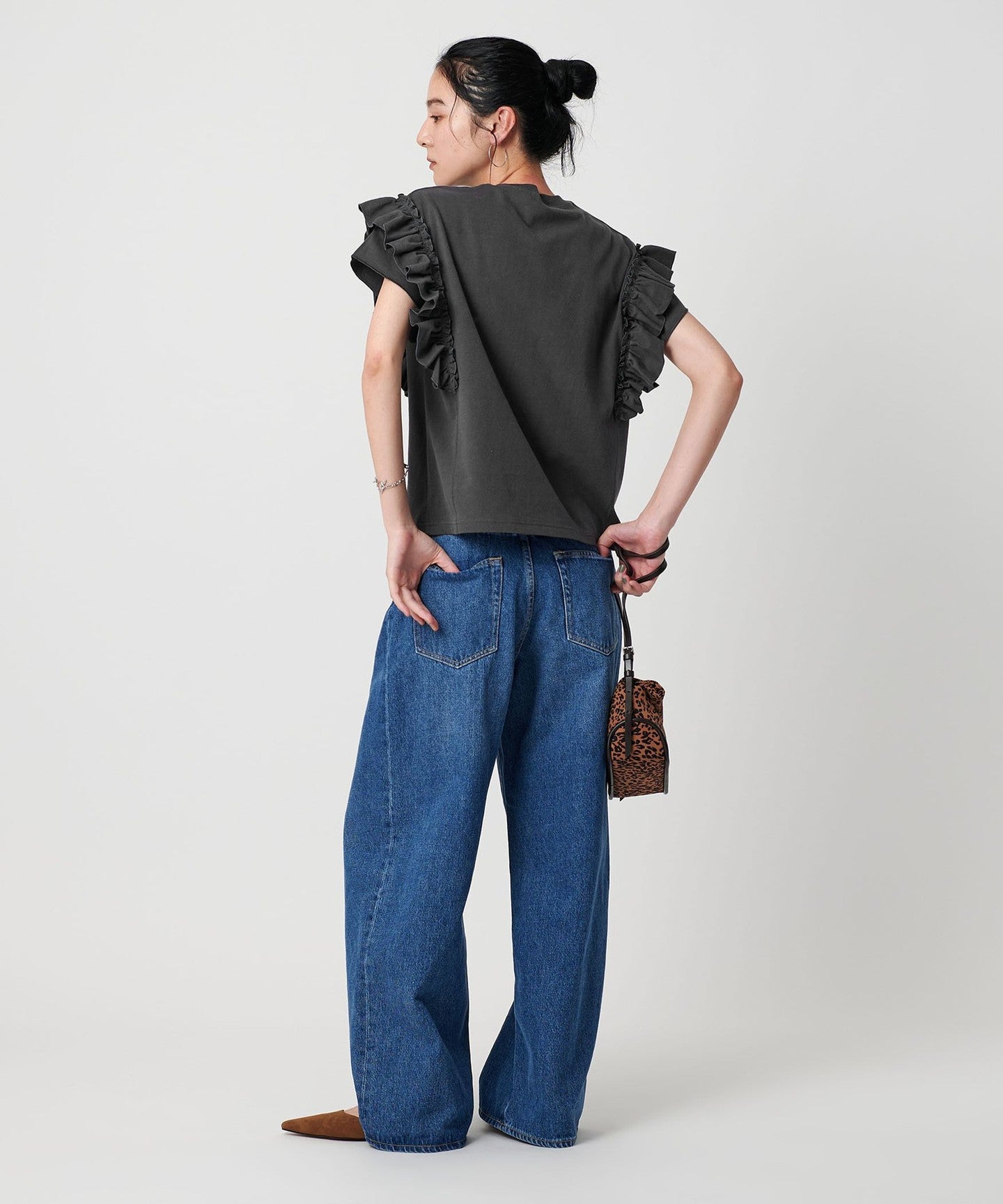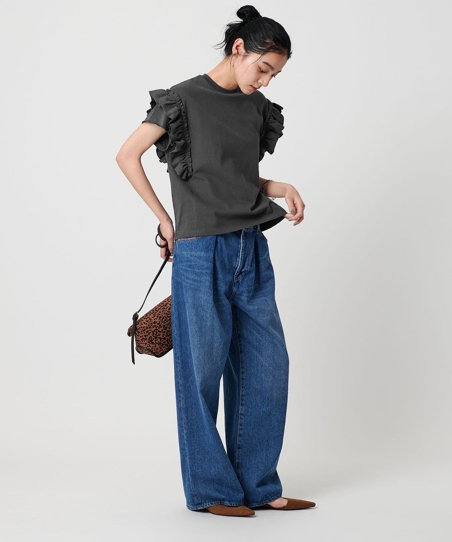 When pairing with casual wide jeans, tuck in the waist for a neat look.