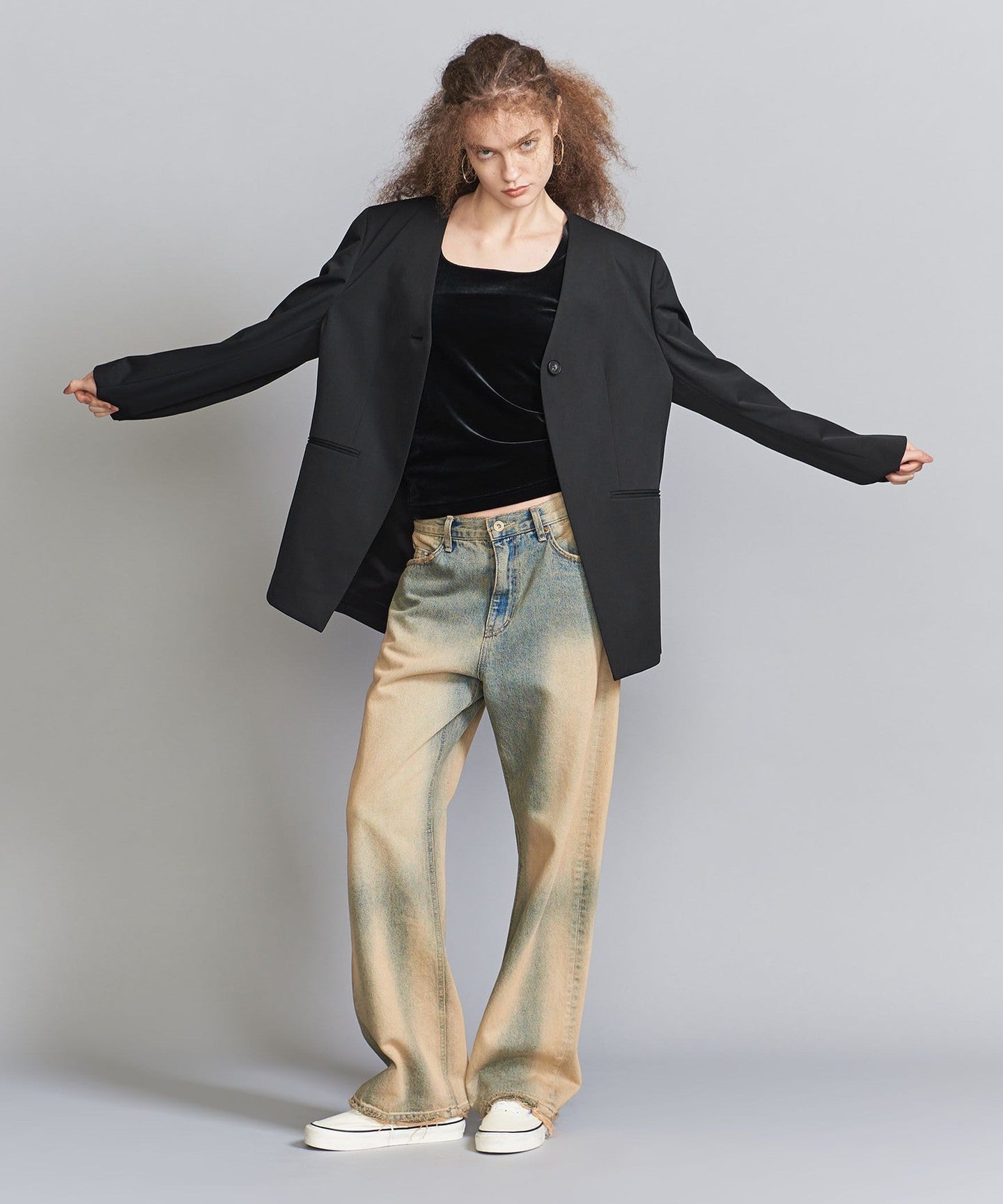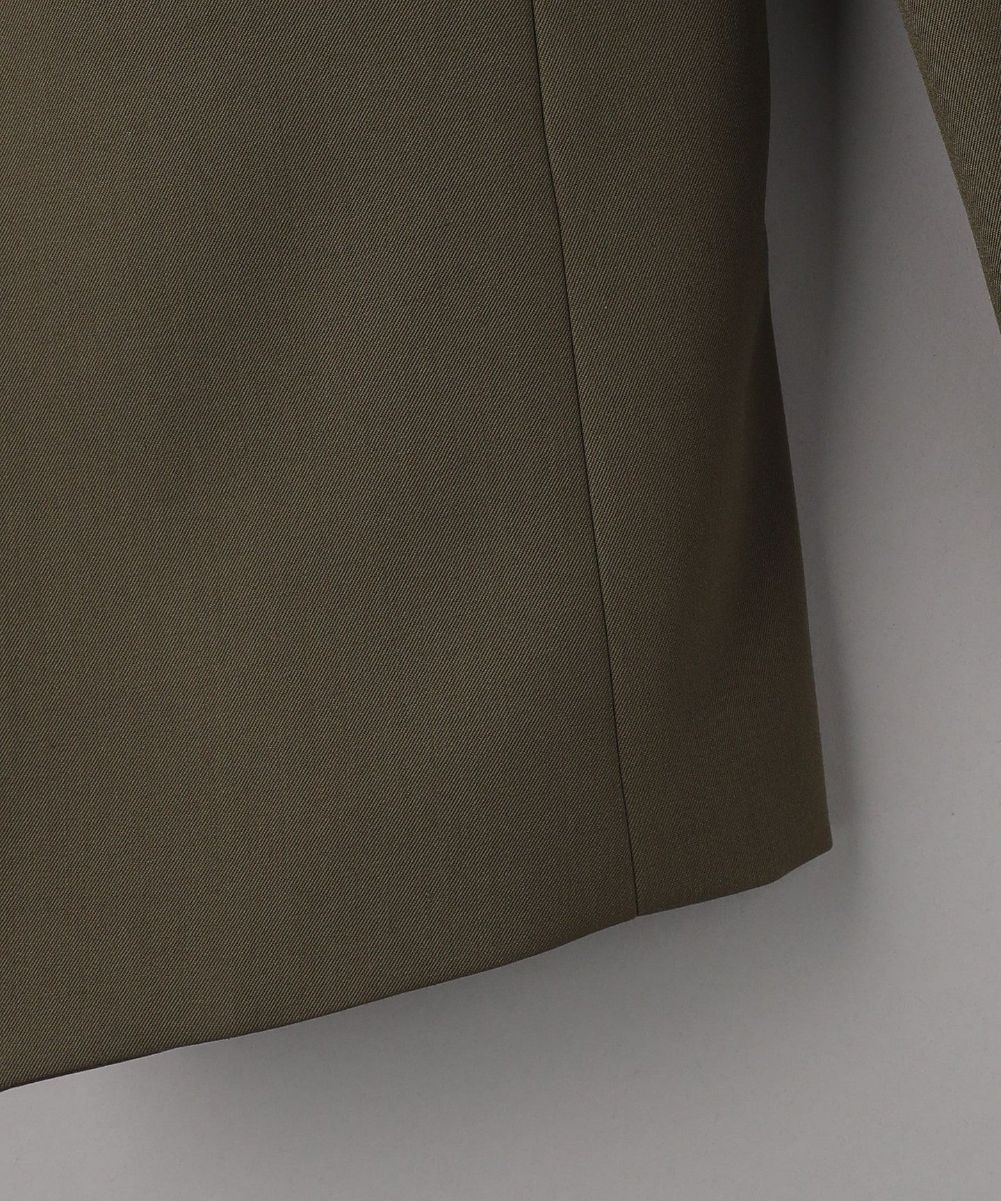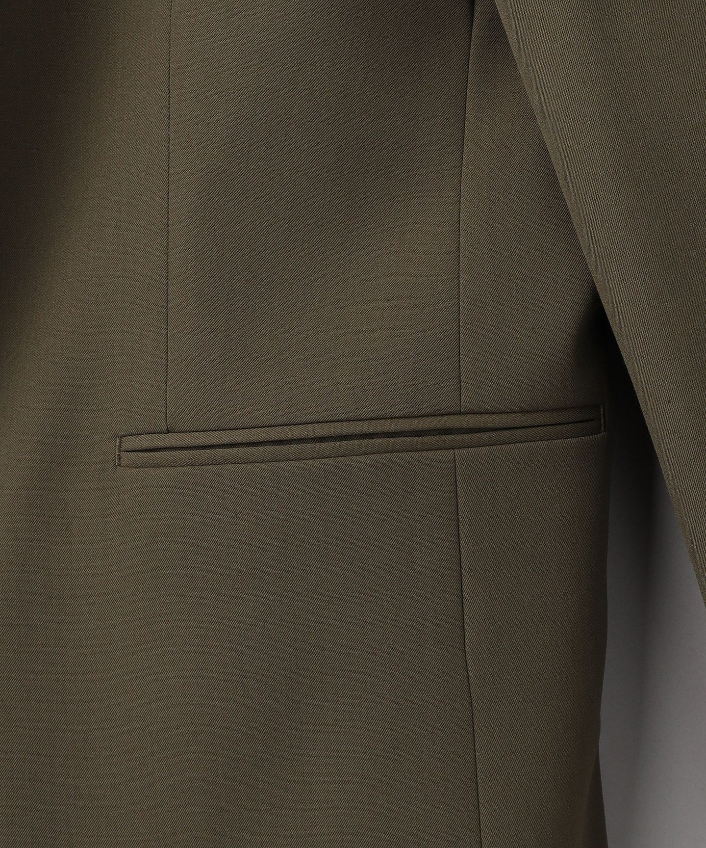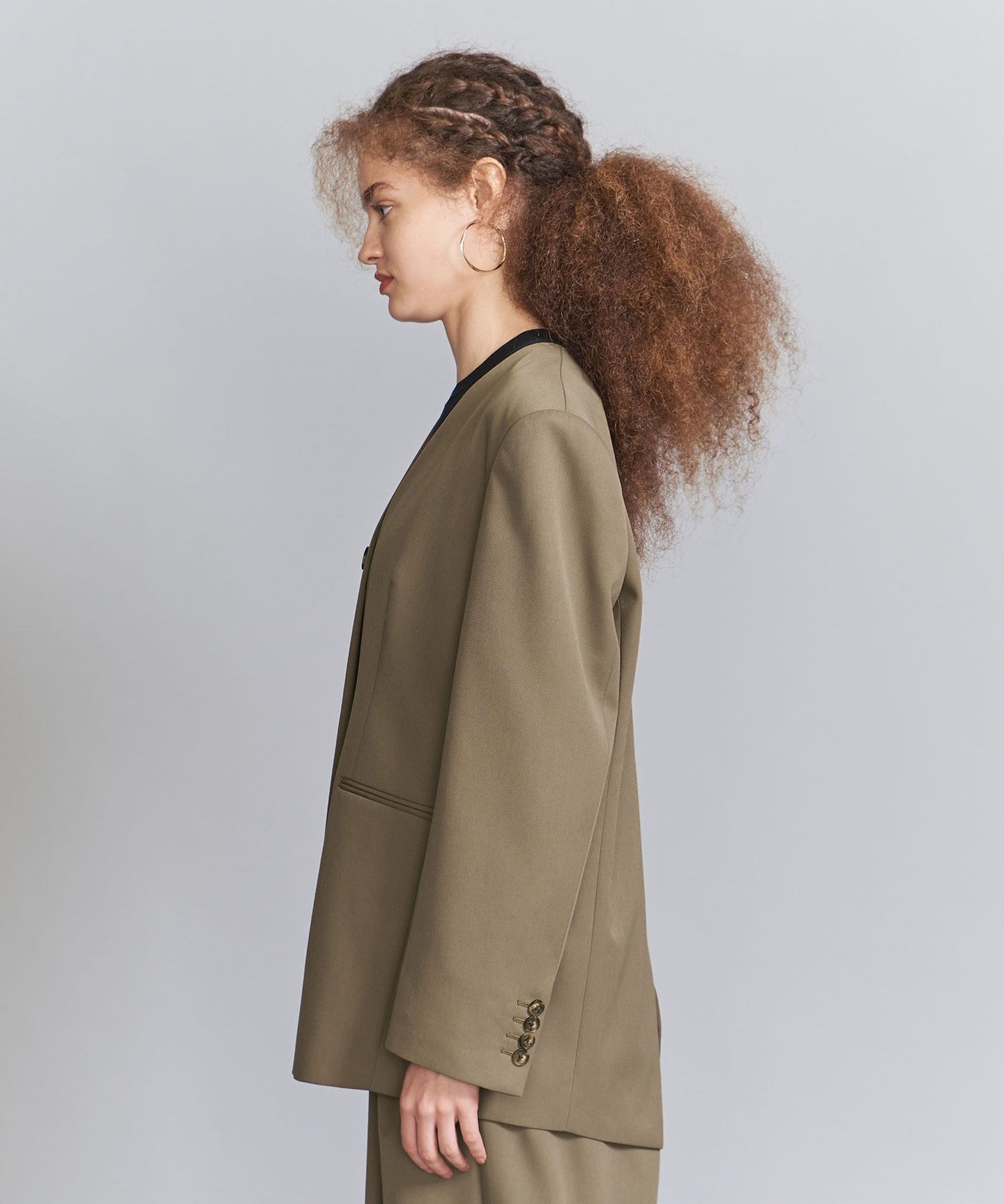 When paired with pants made of the same material, the unique design makes it appear as if the back slit and the tucks of the pants are connected.