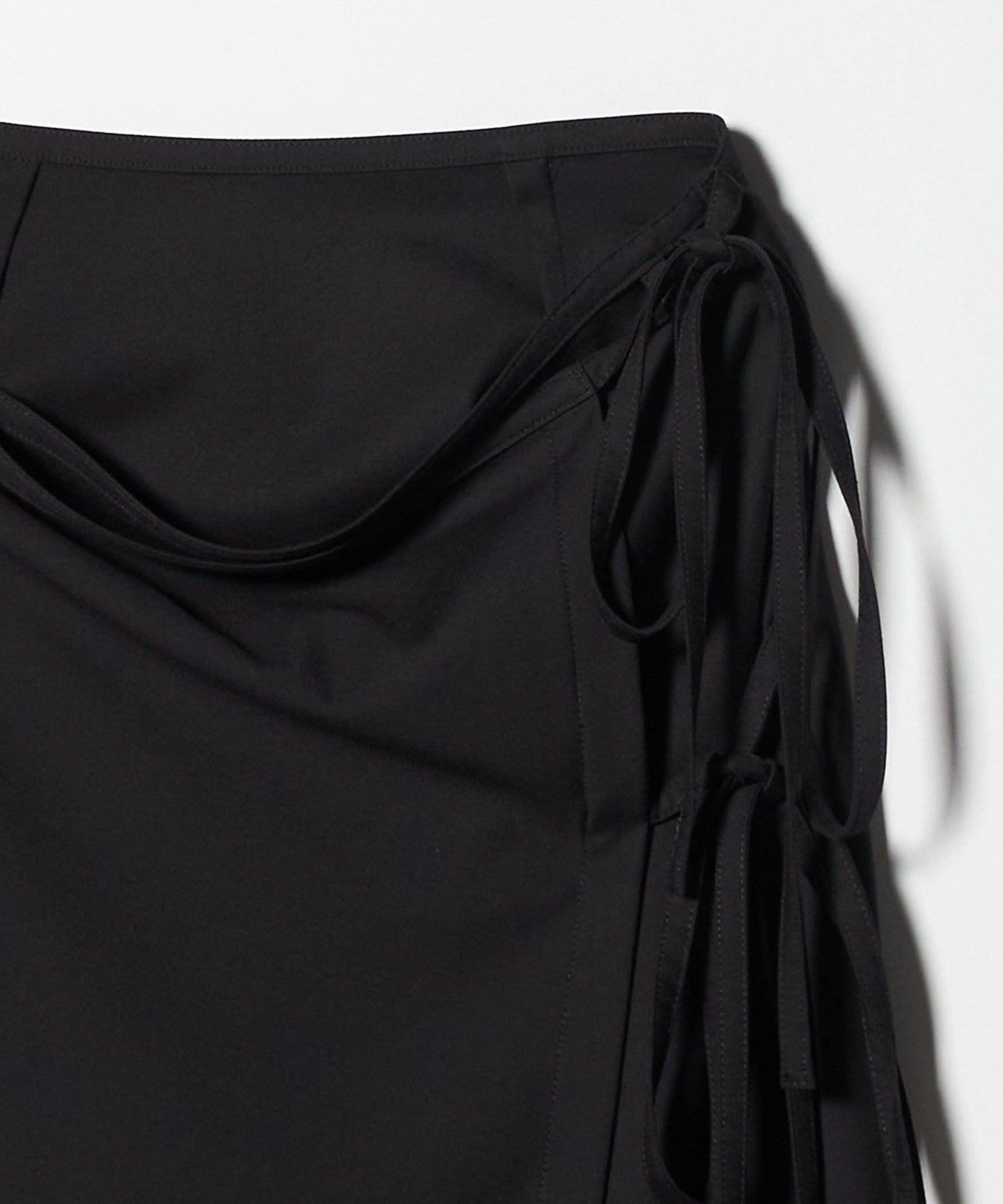 共布の華奢なリボンで着こなしのアクセントになりながらもスマートな印象もあり、オンオフ問わず幅広いシーンで活躍する一着。