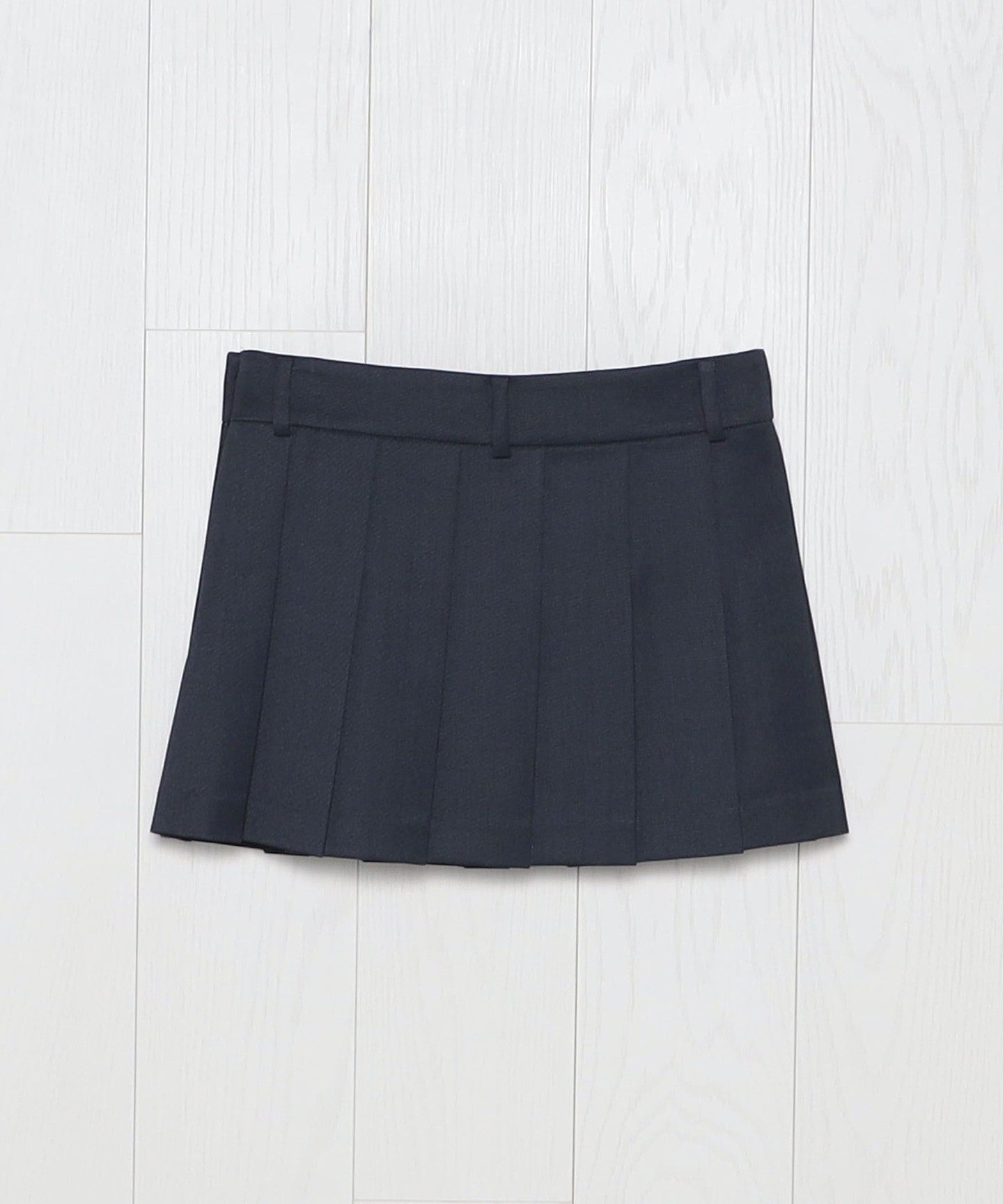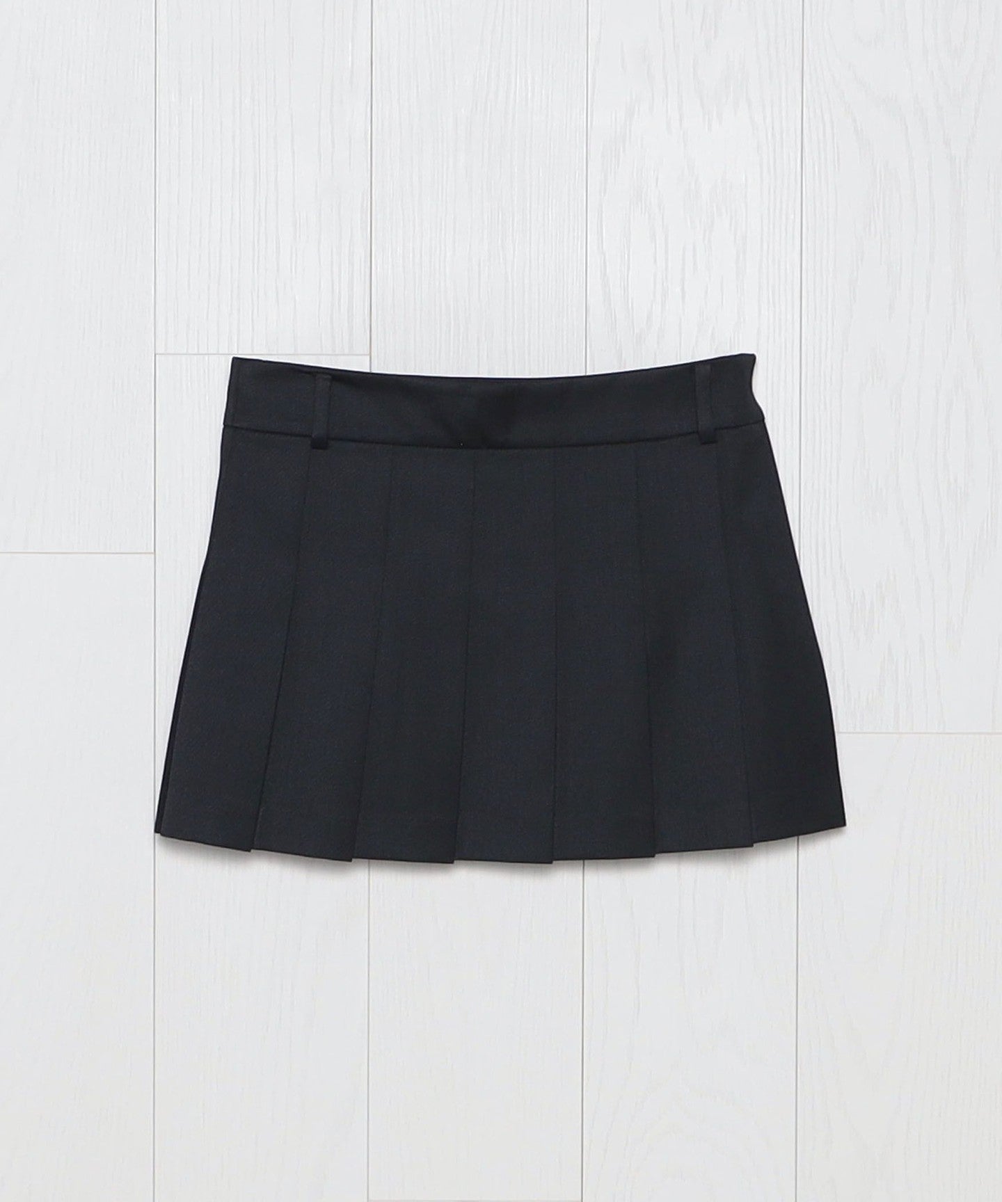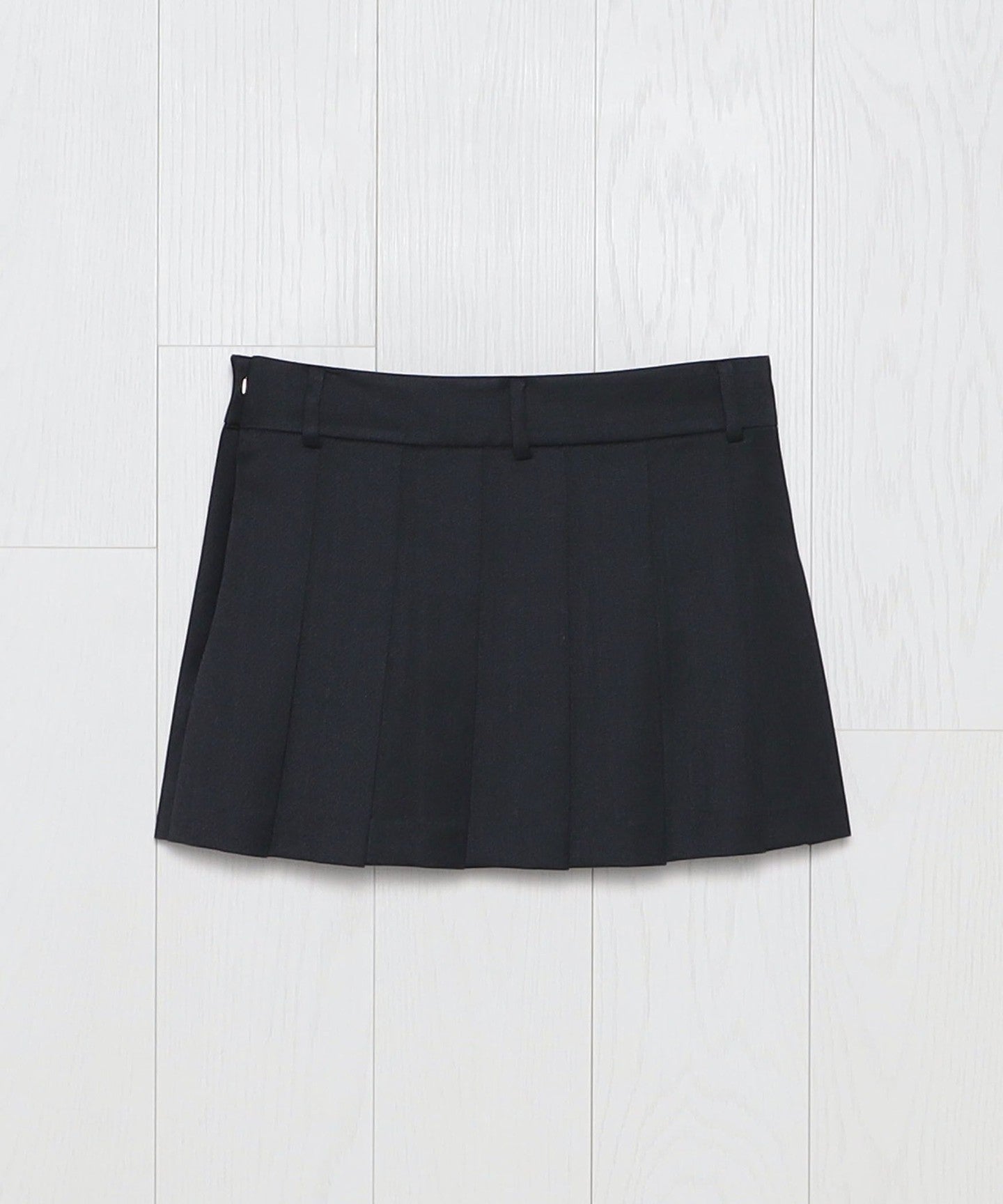 This pleated skirt is crafted from a firm, firm twill fabric. It sits low at the waist and can also be styled with a belt. The balance of the neat pleats and the mini length creates a fresh look. It pairs well with heavier winter pieces like mid-gauge knitwear and leather. This playful skirt exudes a classic mood while also achieving an edgy style.