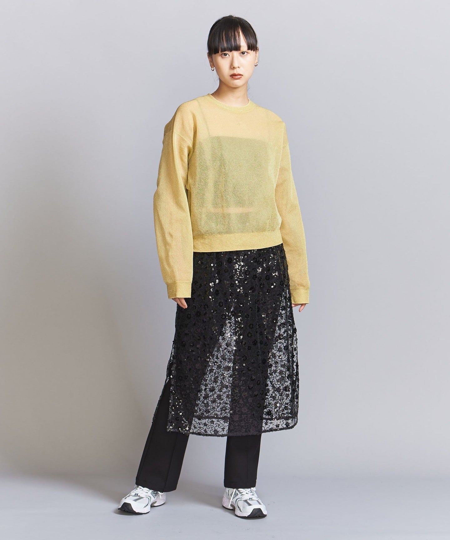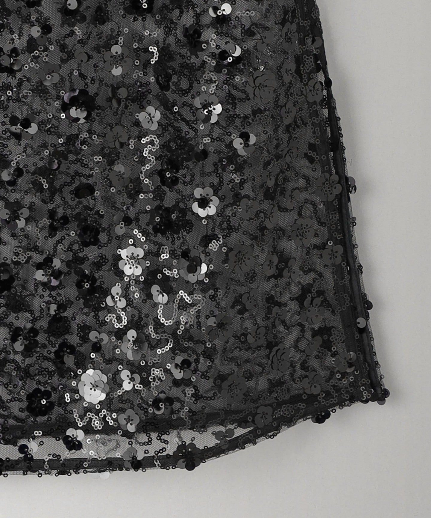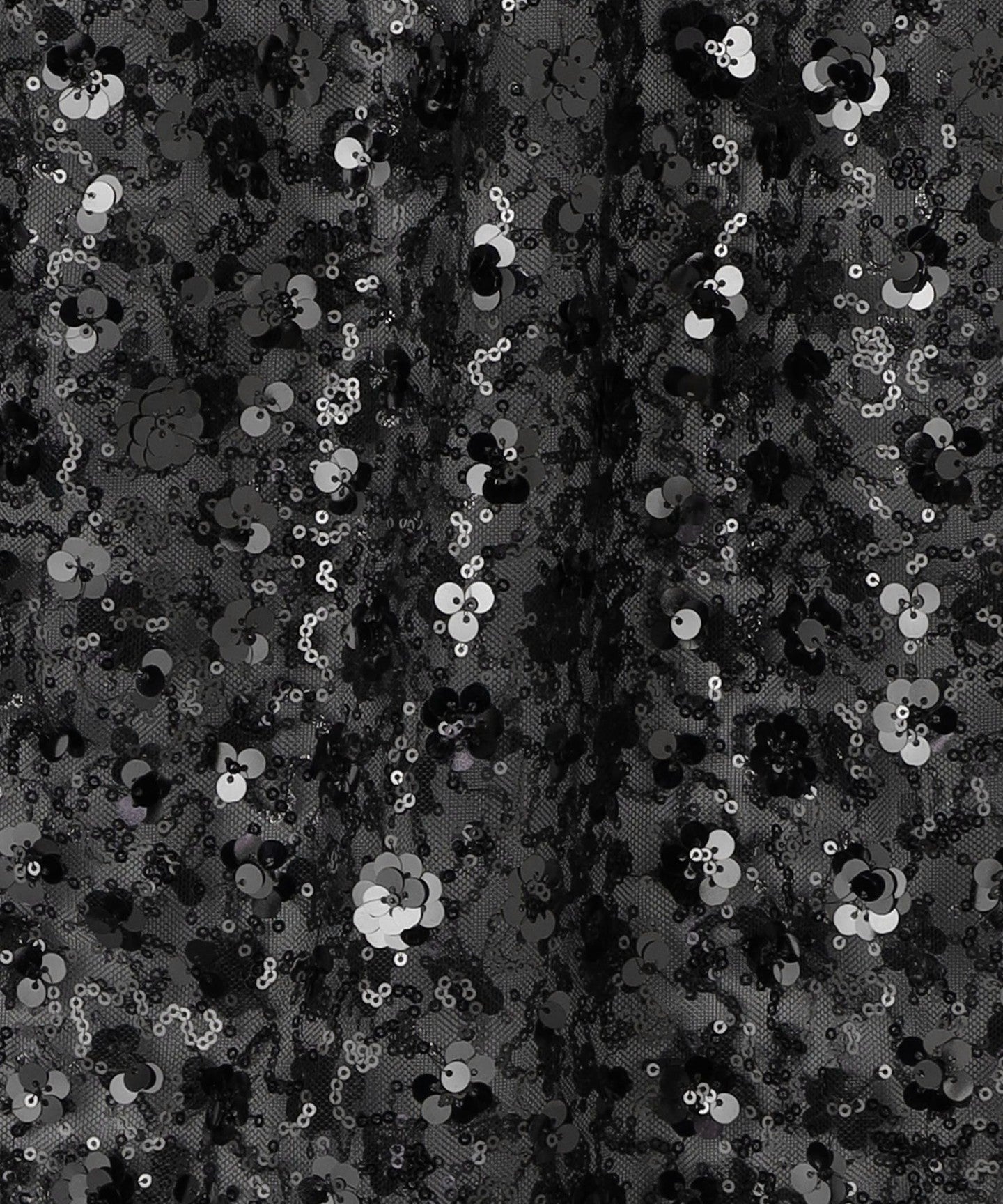 A gorgeous material based on delicate polyester tulle, embroidered with mirror-like sequins all over.