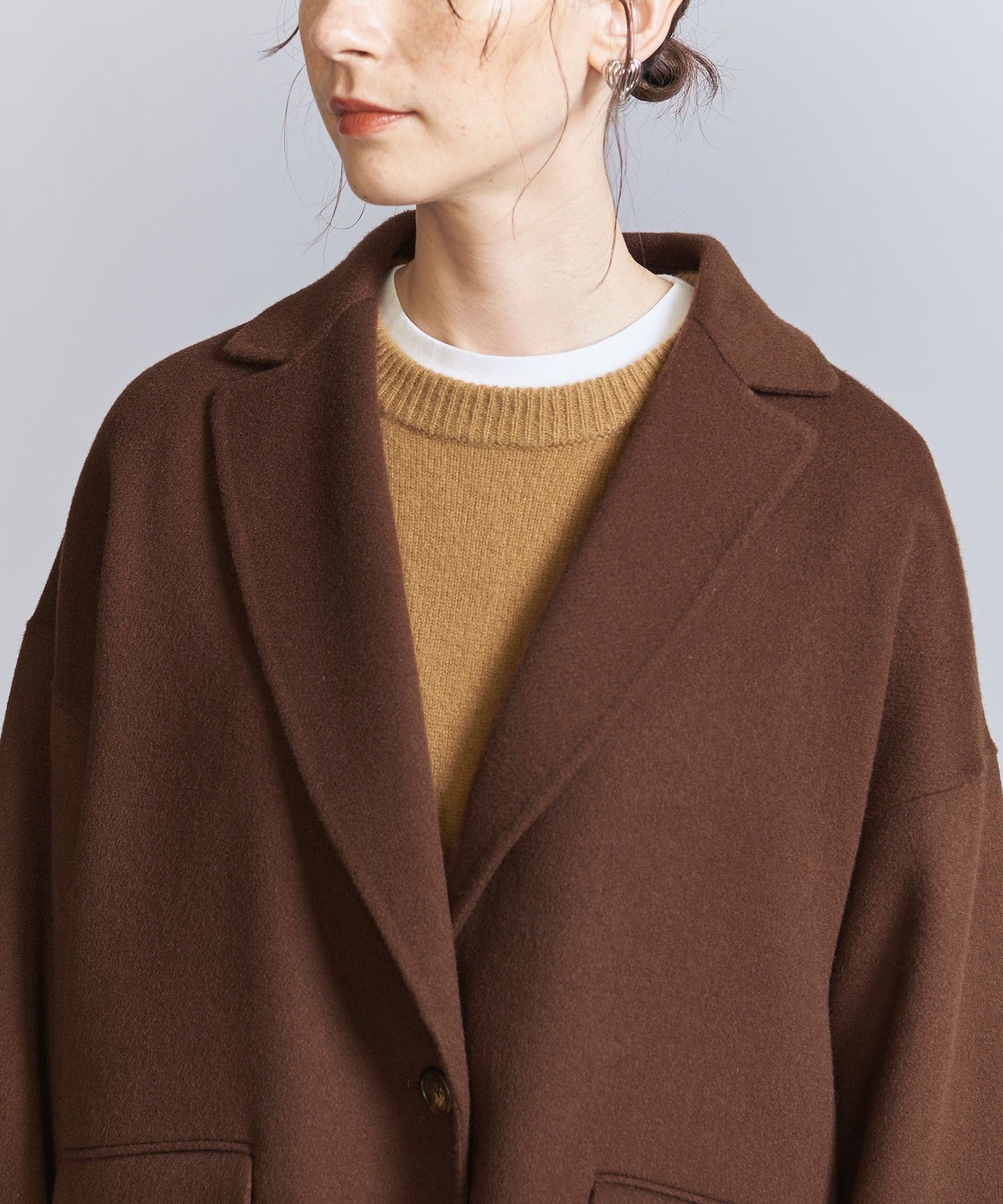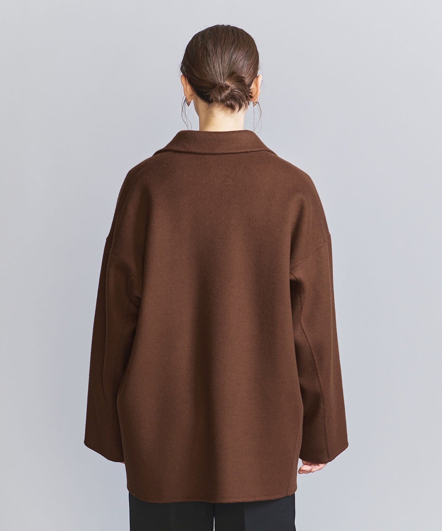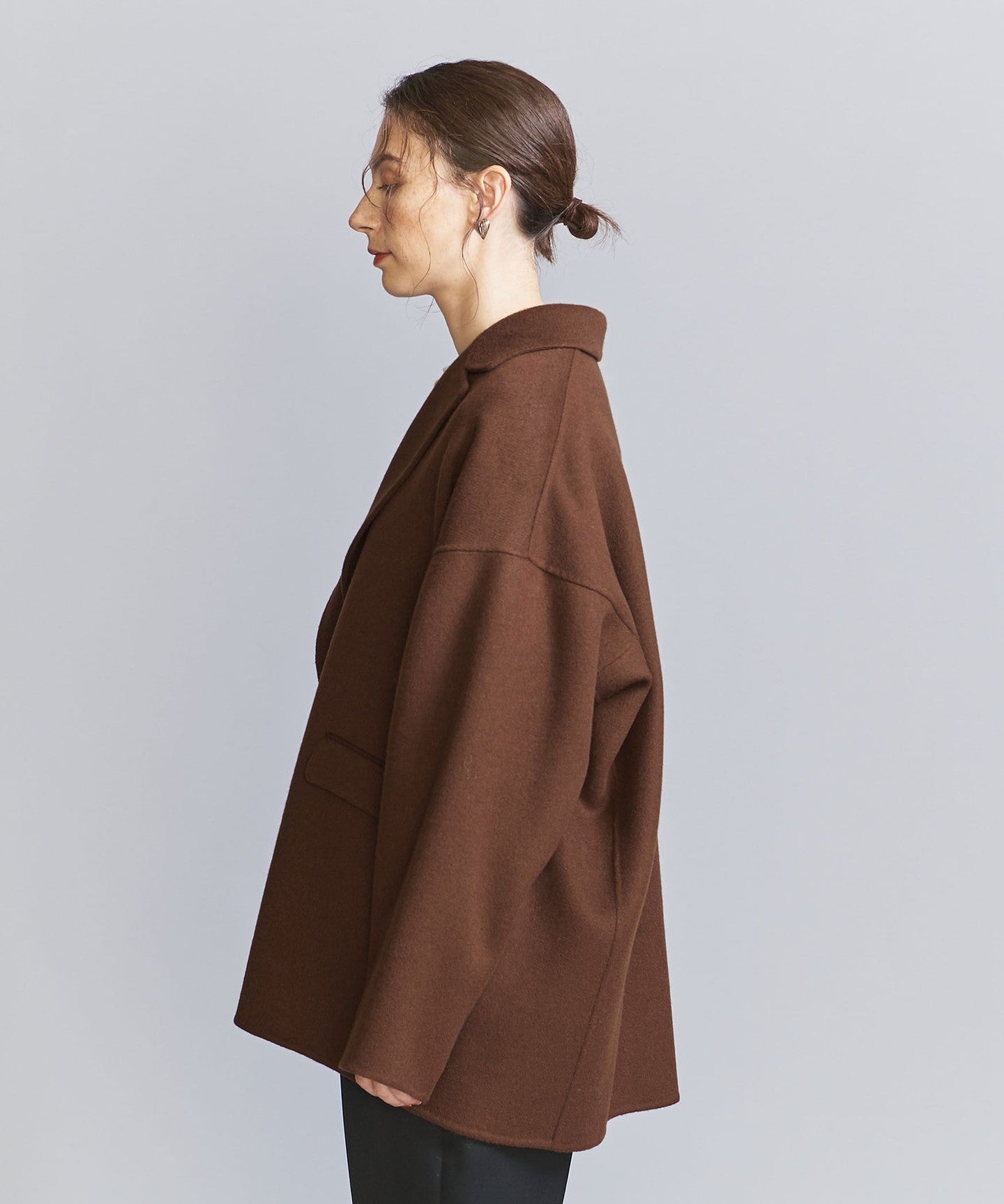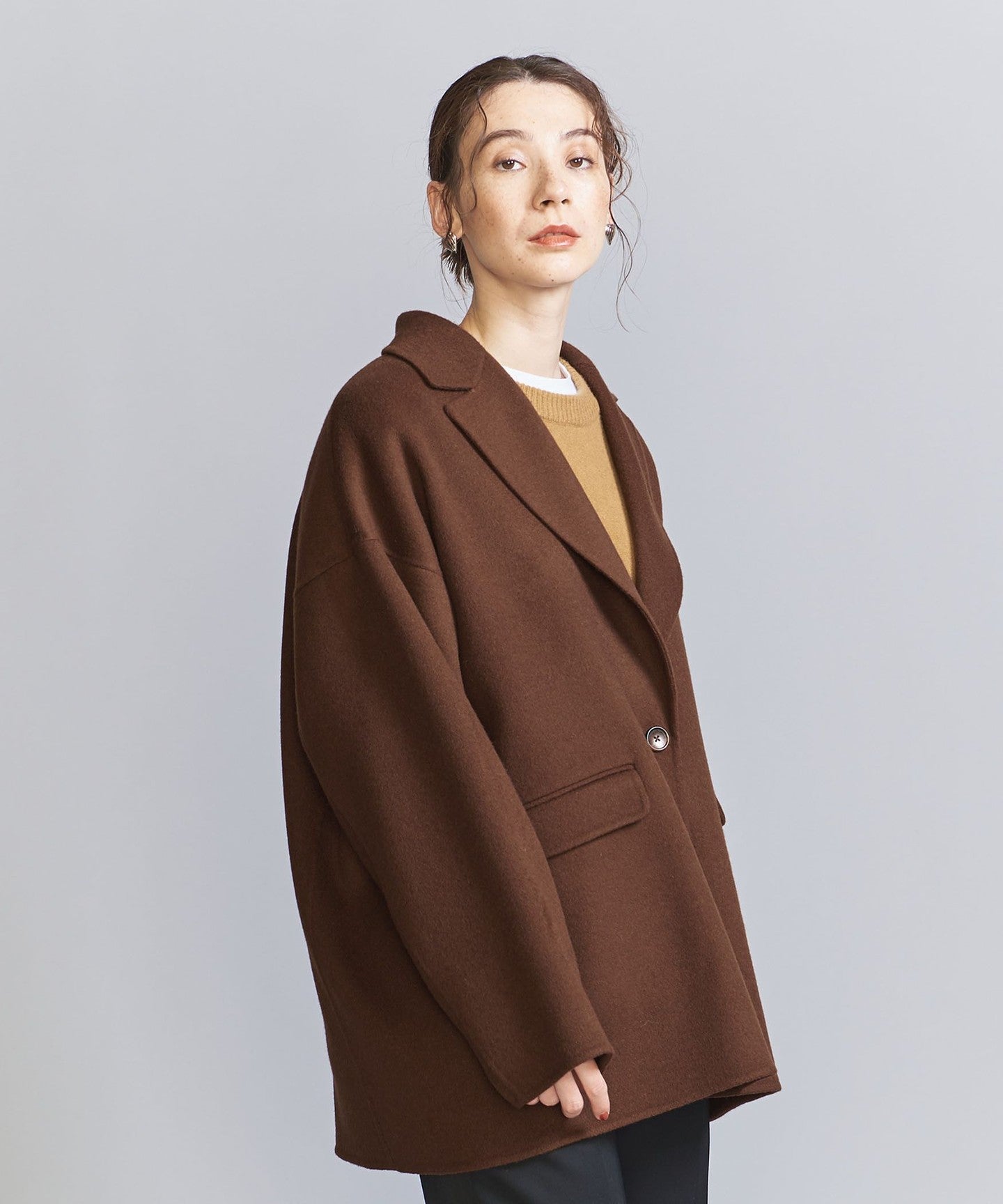 Despite the wide silhouette, the length covers the buttocks and is tucked in at the back.