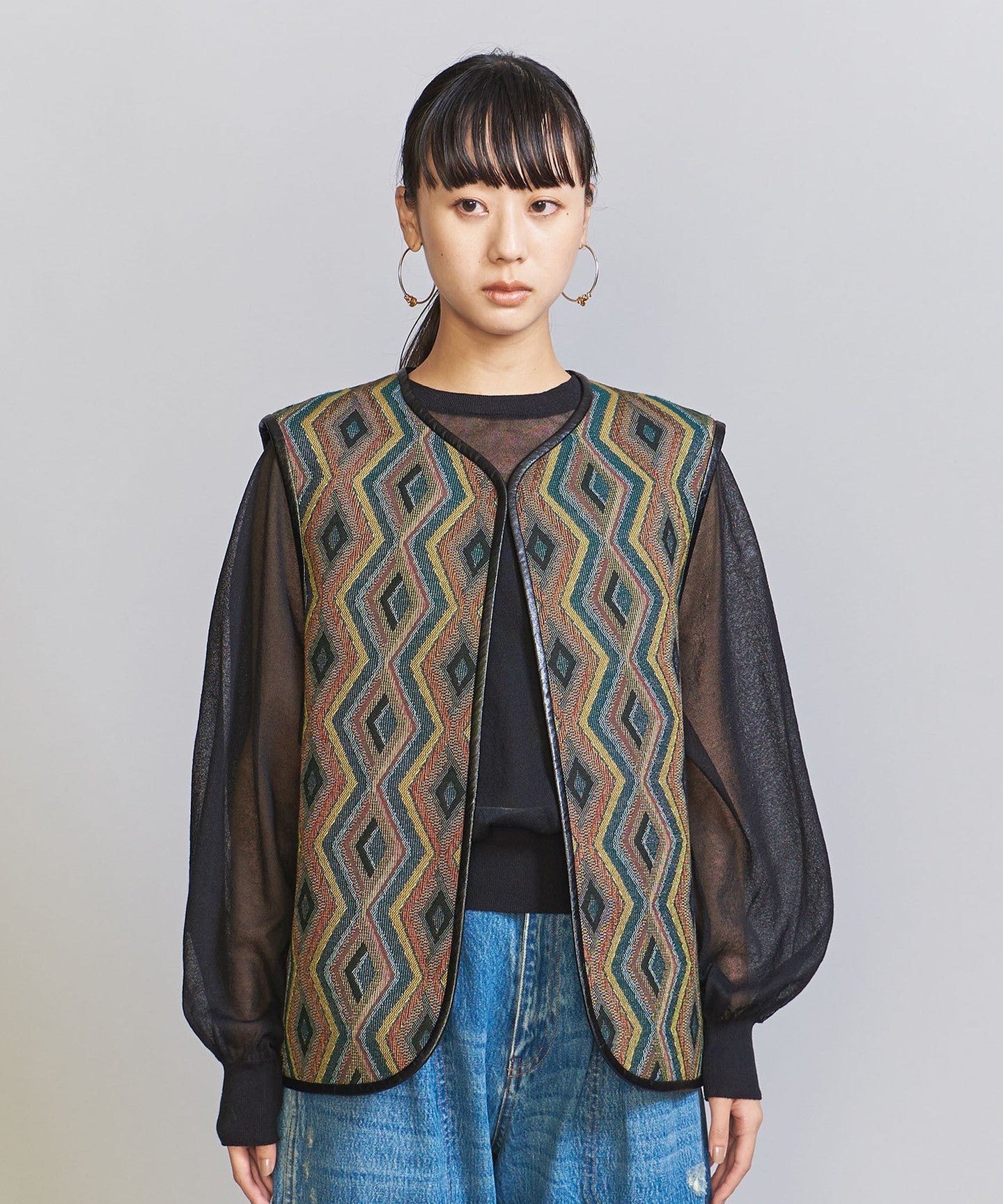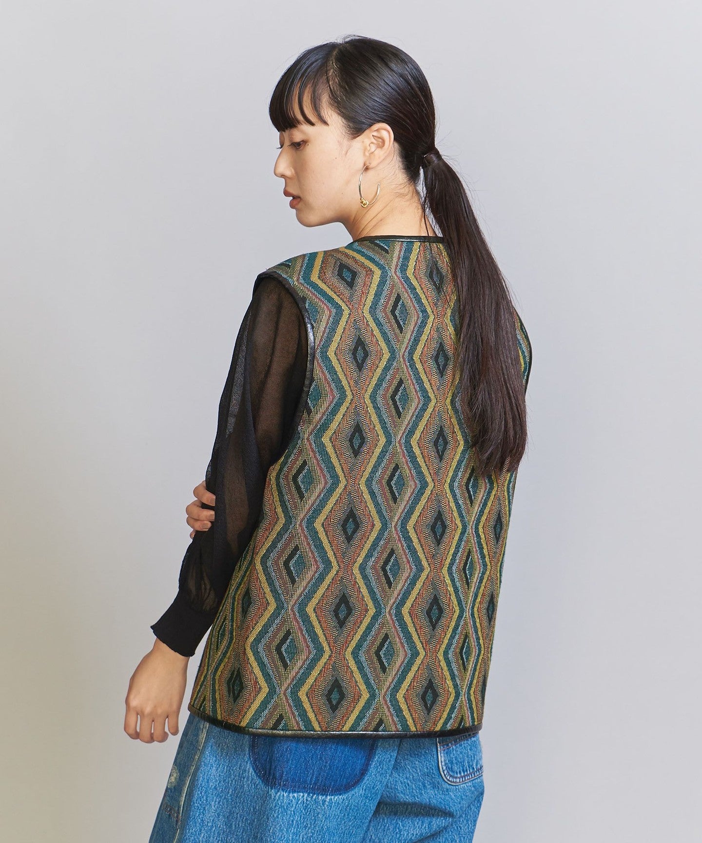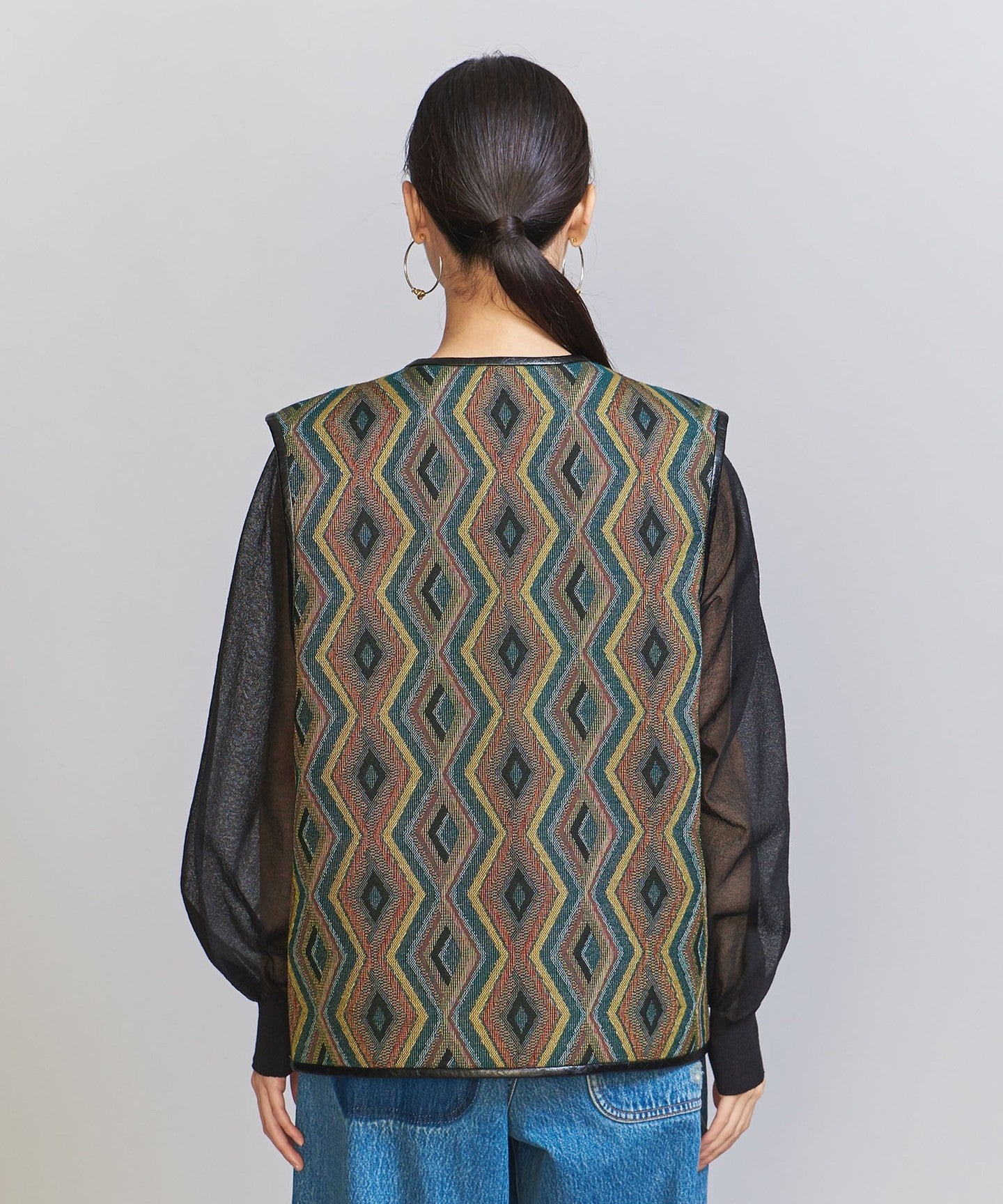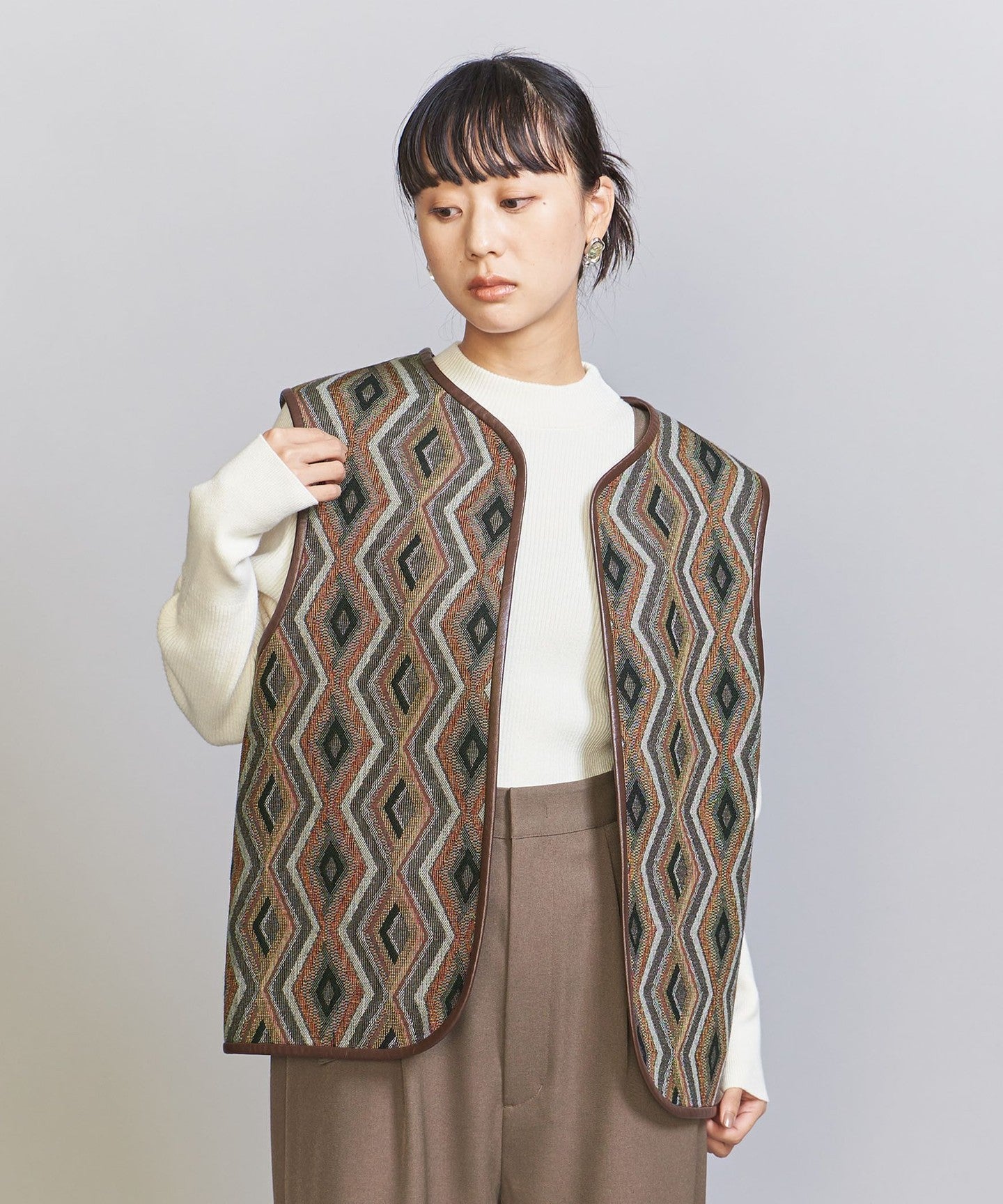 The chic color jacquard pattern is perfect for the season.TIE A 2-way vest that's perfect for everyday wear.