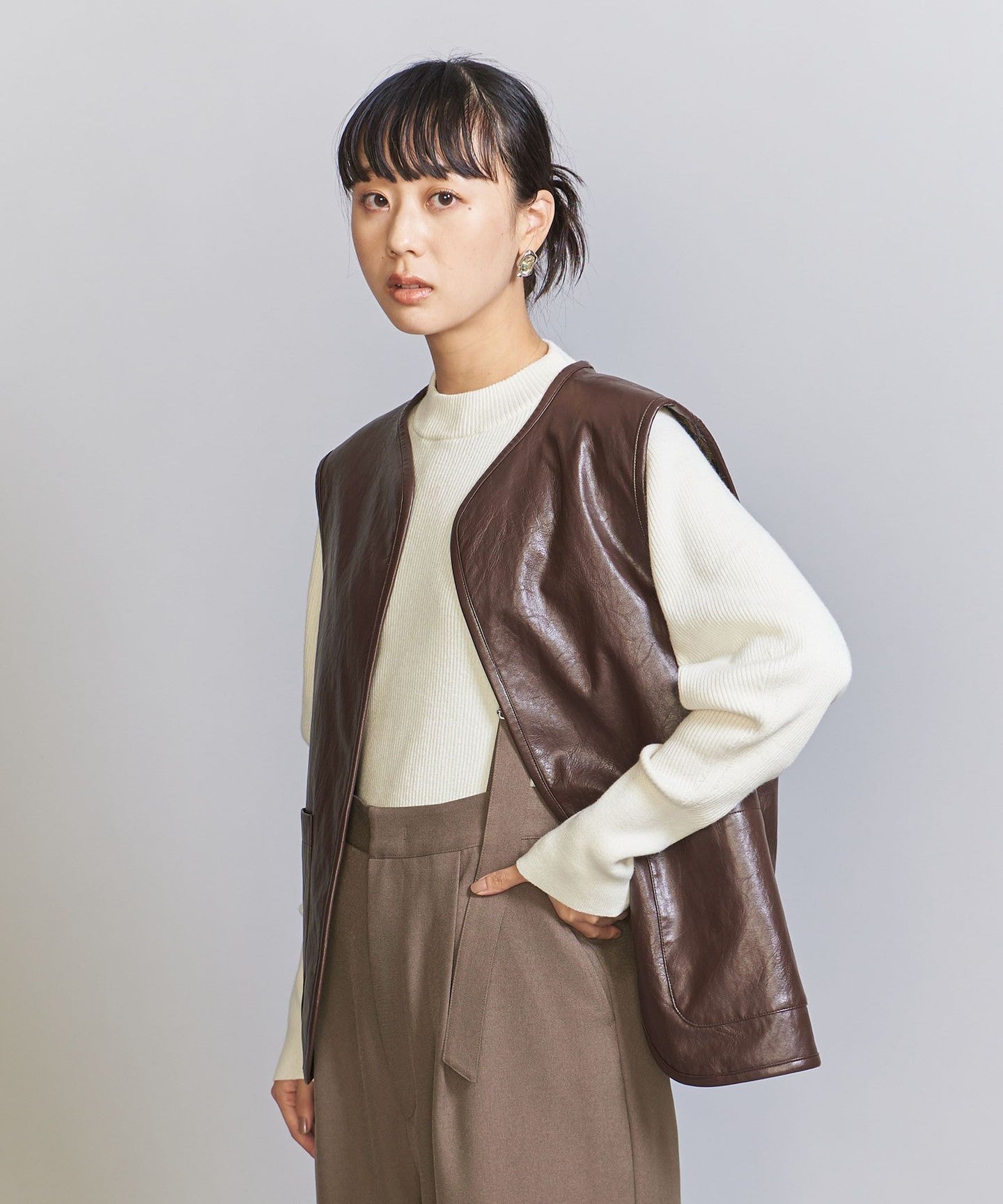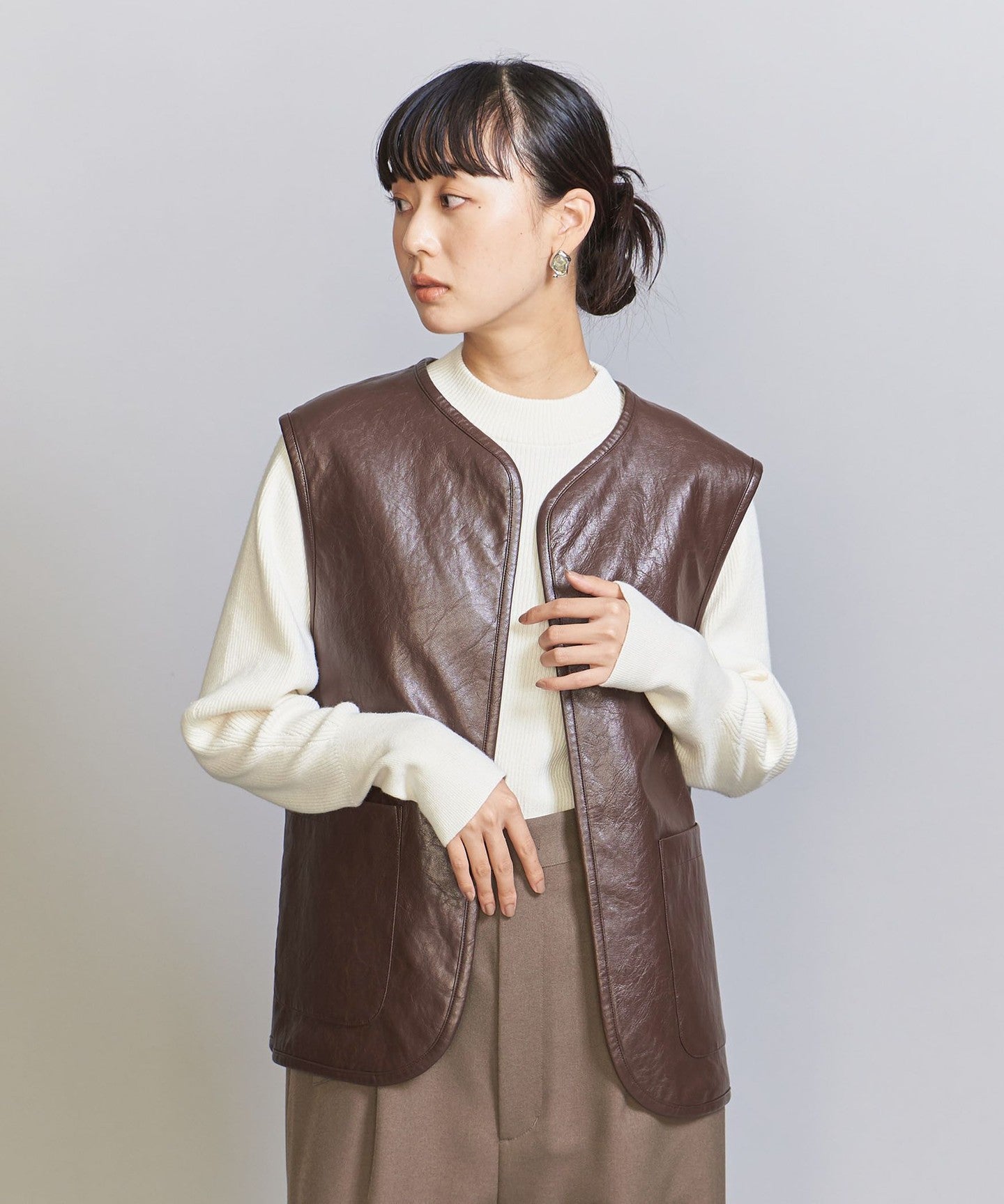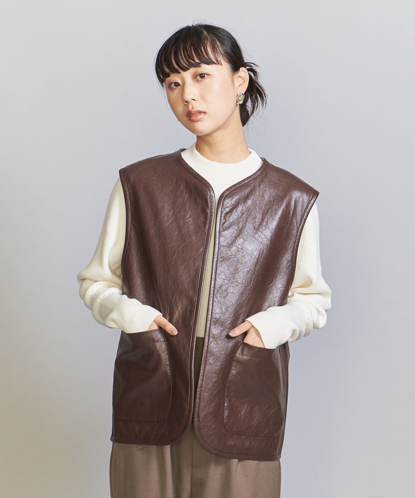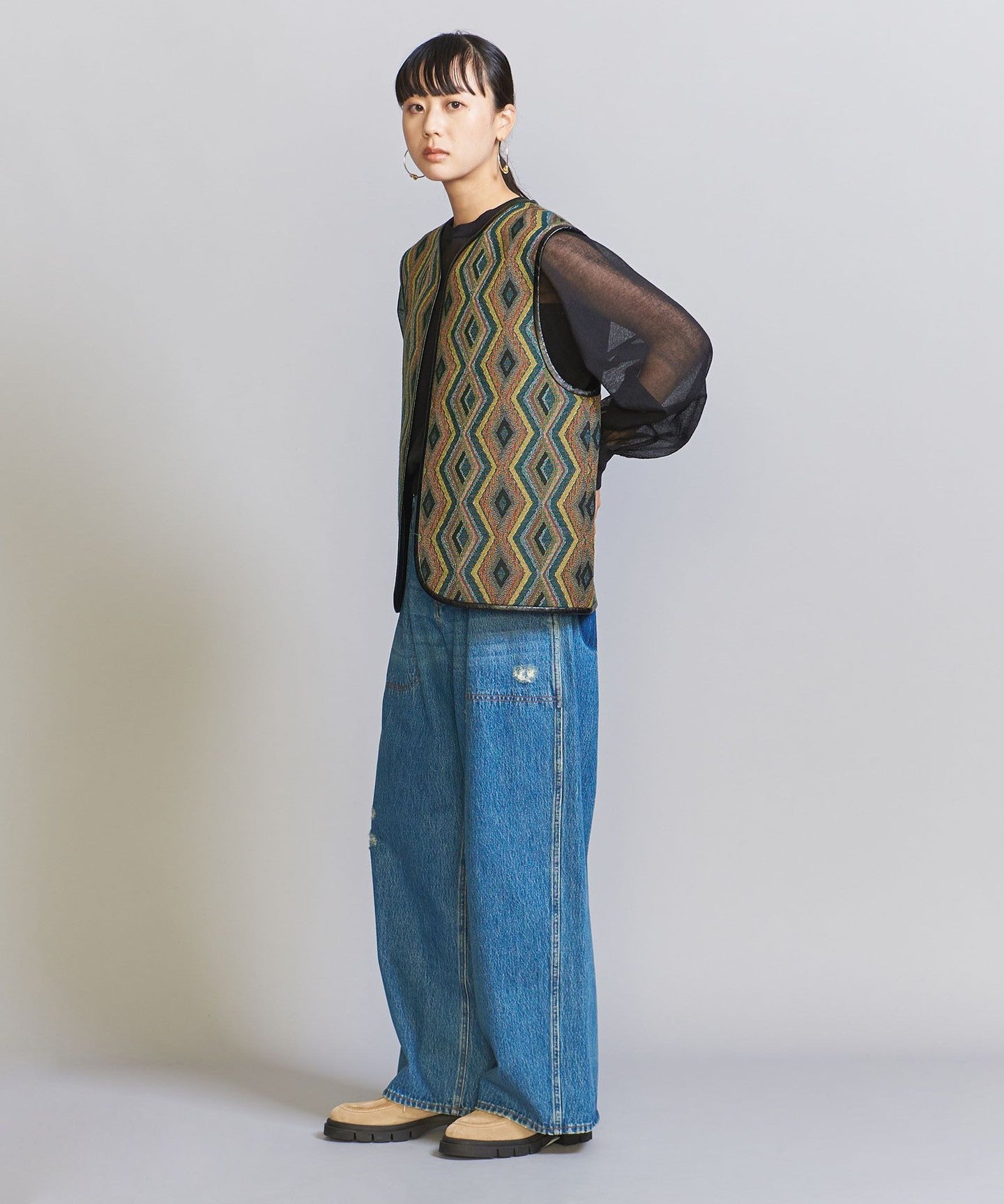 The chic color jacquard pattern is perfect for the season.TIE A 2-way vest that's perfect for everyday wear.