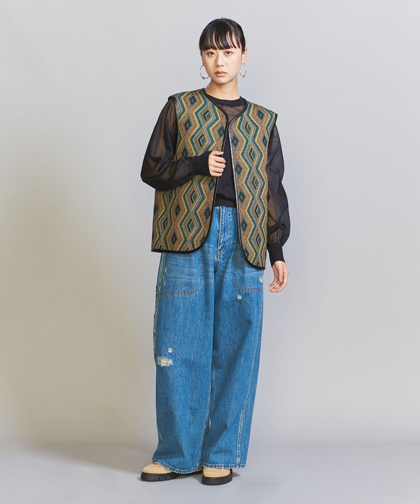 Sheer is trendingKNIT We recommend pairing it with denim bottoms for a casual look.
