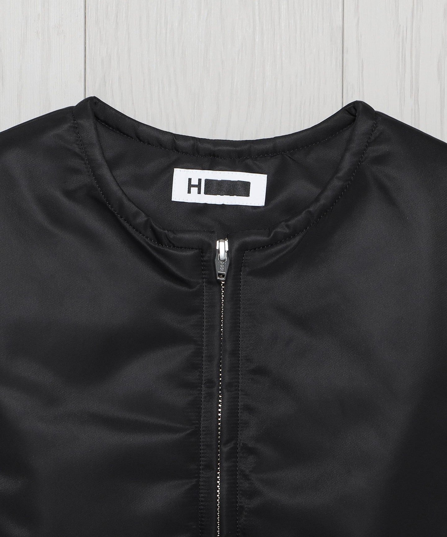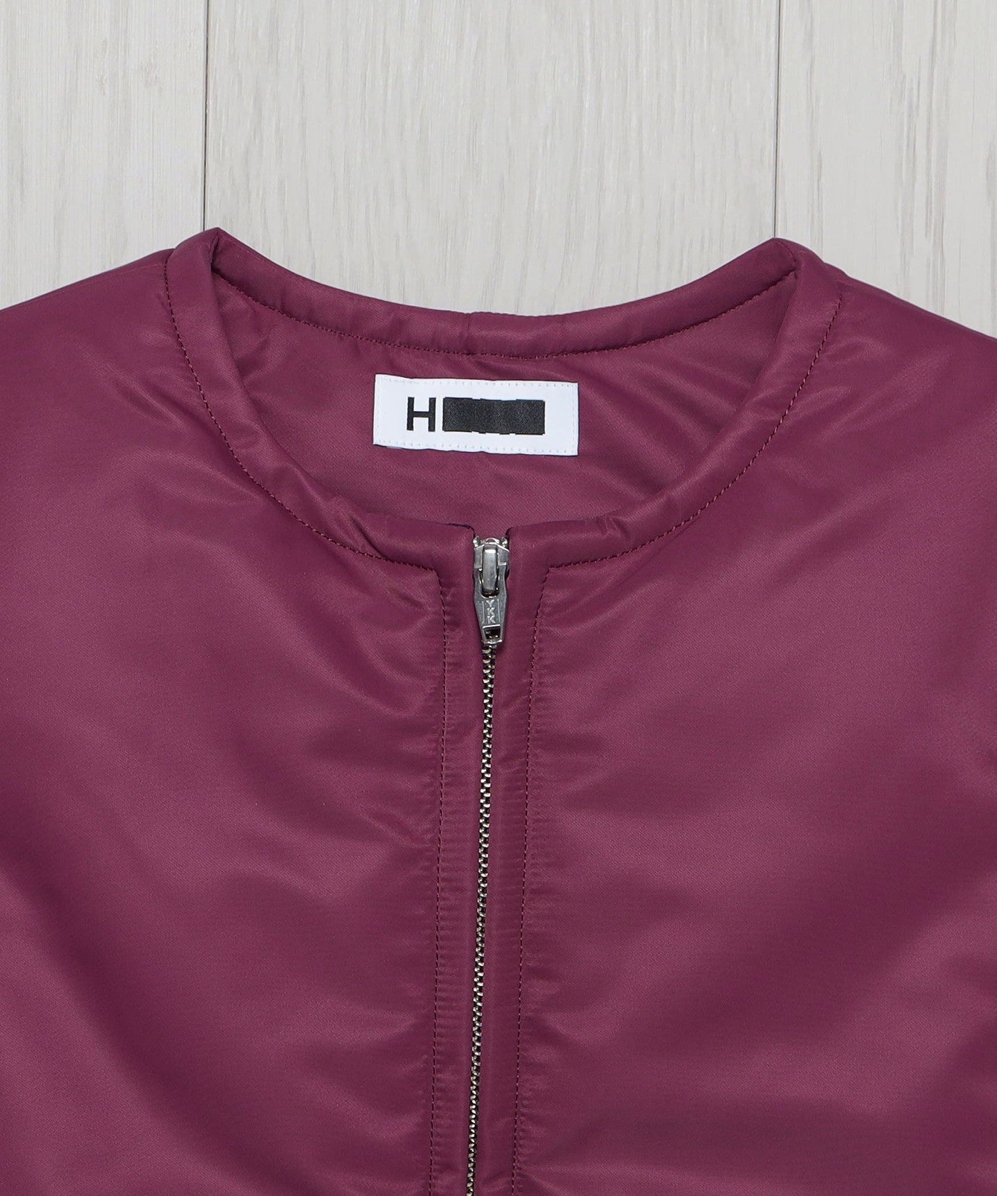 This thick, sturdy nylon twill vest is filled with padding for warmth and an MA1-like look. The reverse zipper allows for versatile styling, and the compact sizing creates a modern look with a casual feel.