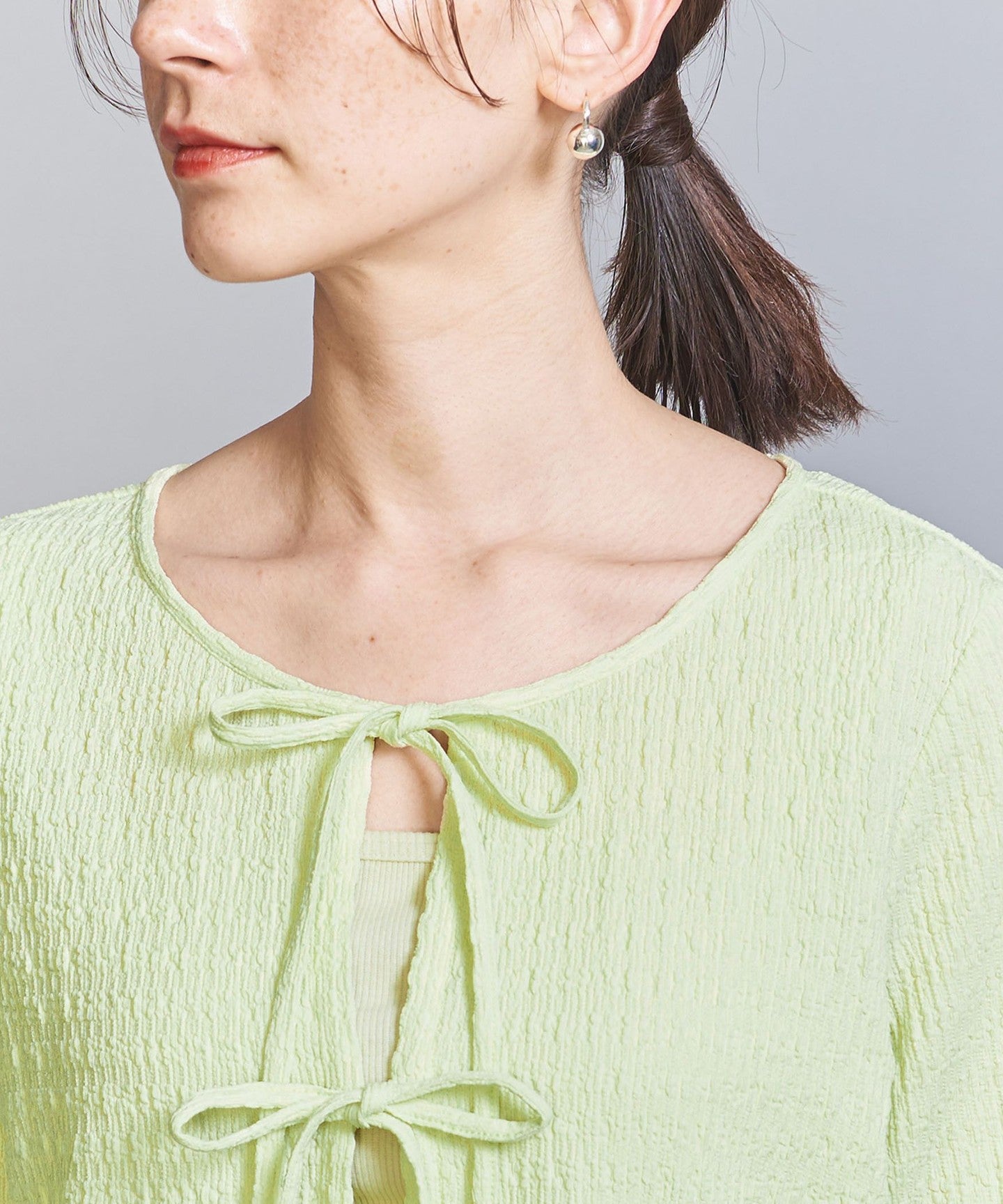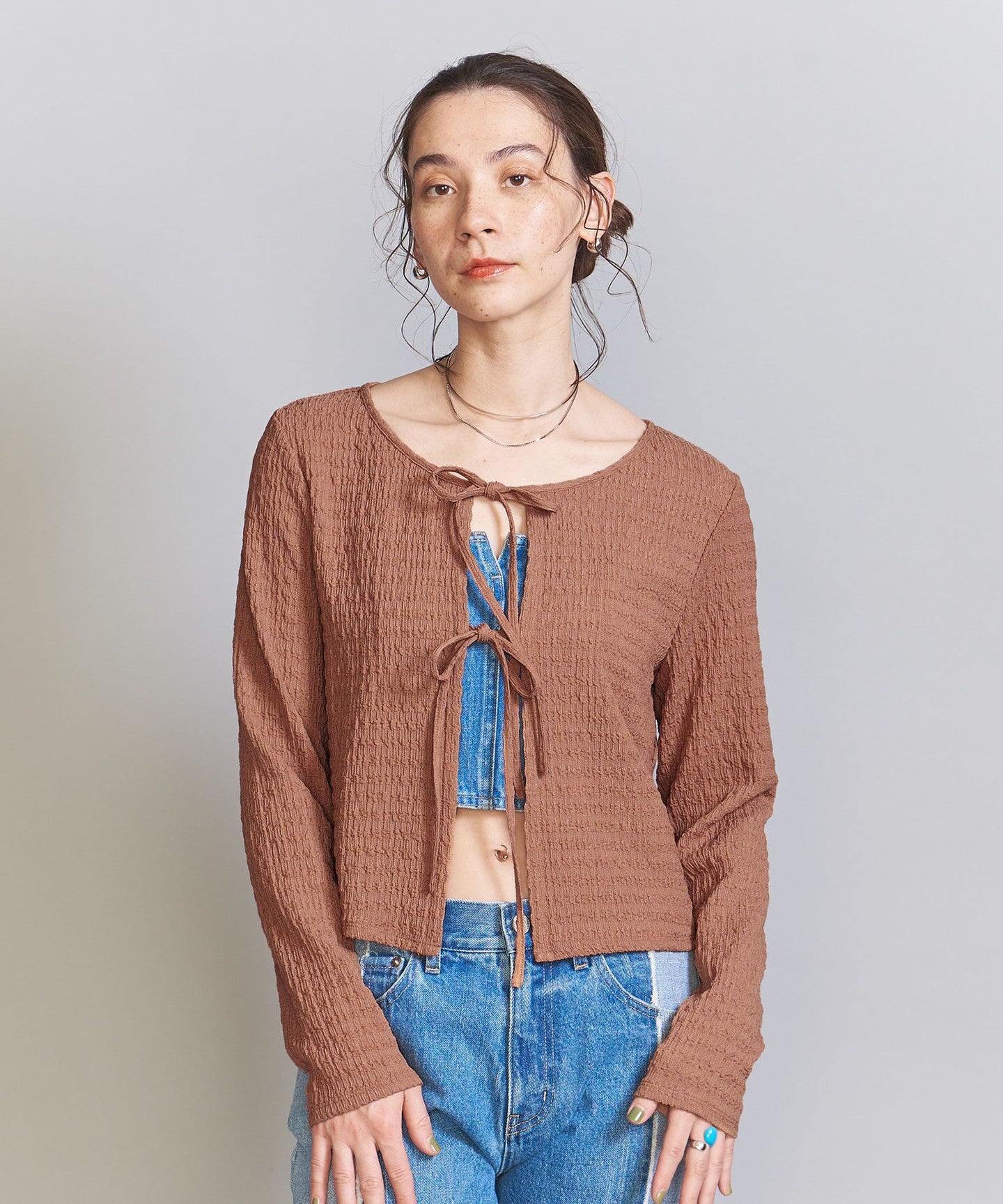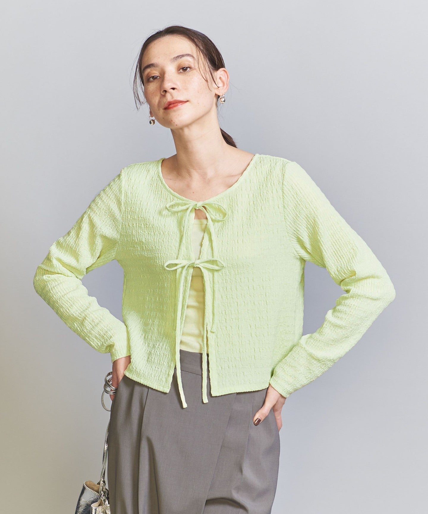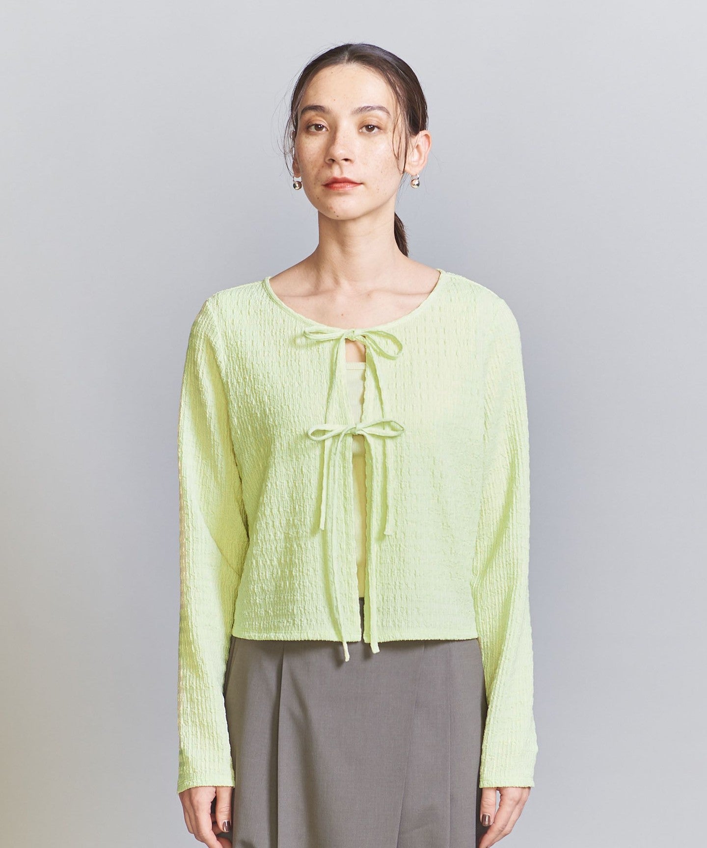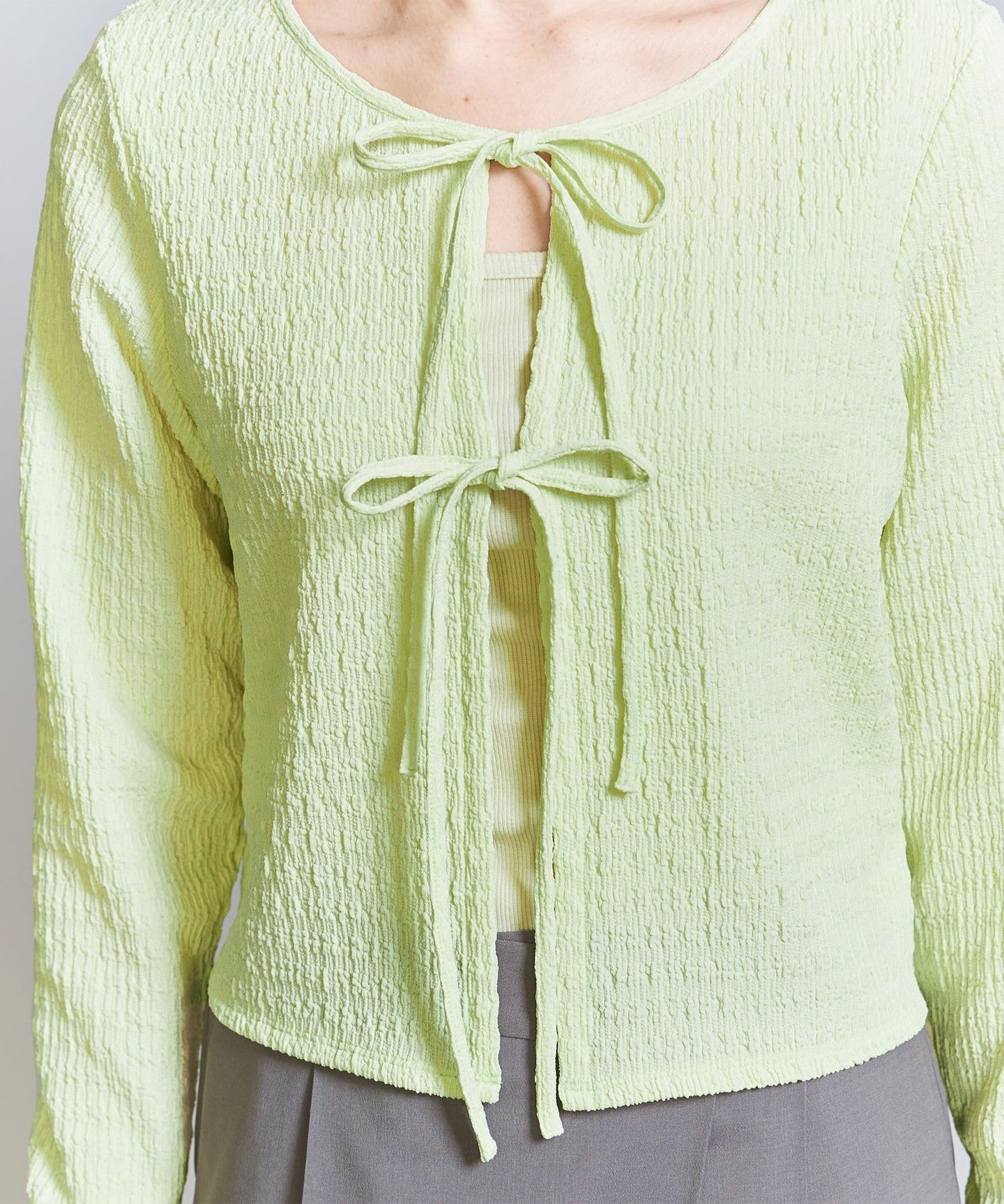 RIBBON Don't tie it up and wear it loosely CARDIGAN It is also recommended as a light jacket.