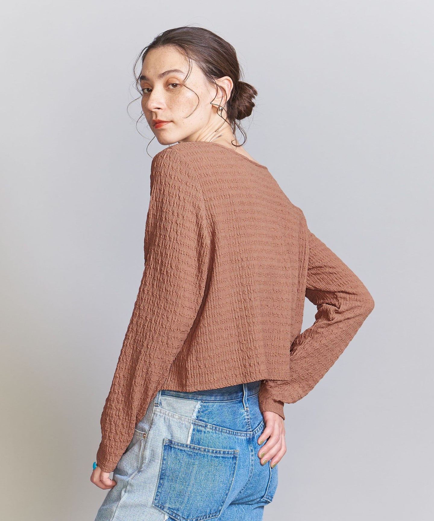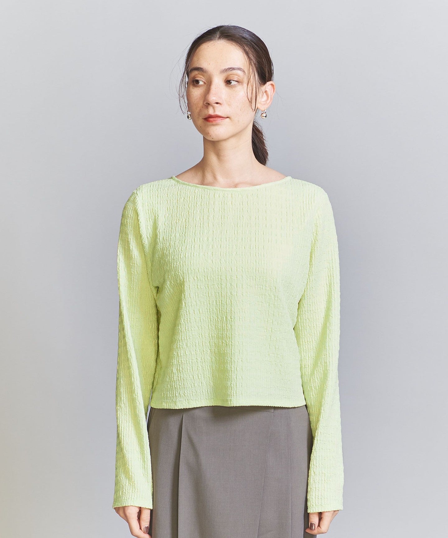 FRONT SIDE The uneven texture does not accentuate the body lines, and the compact form enhances a feminine mood.