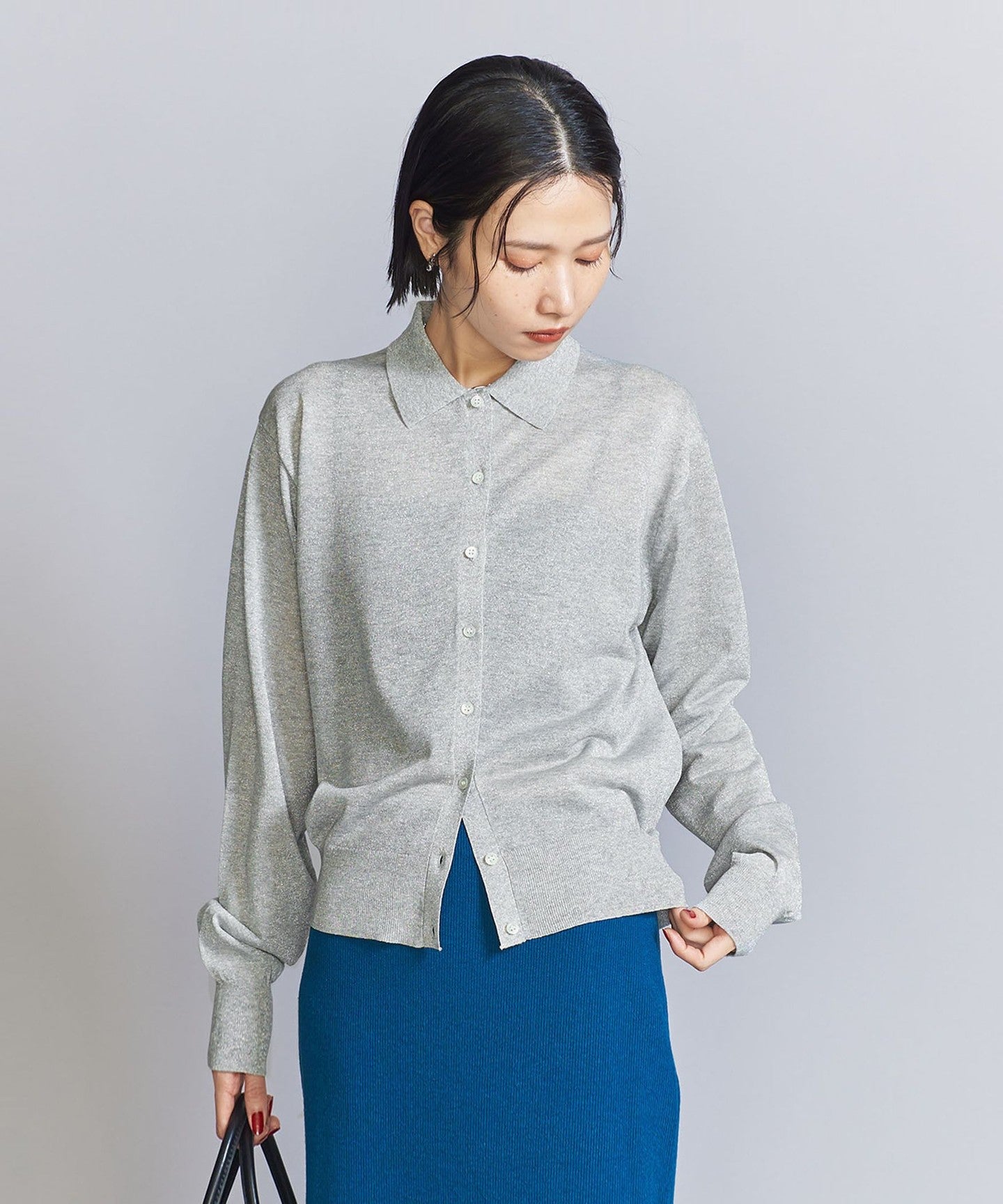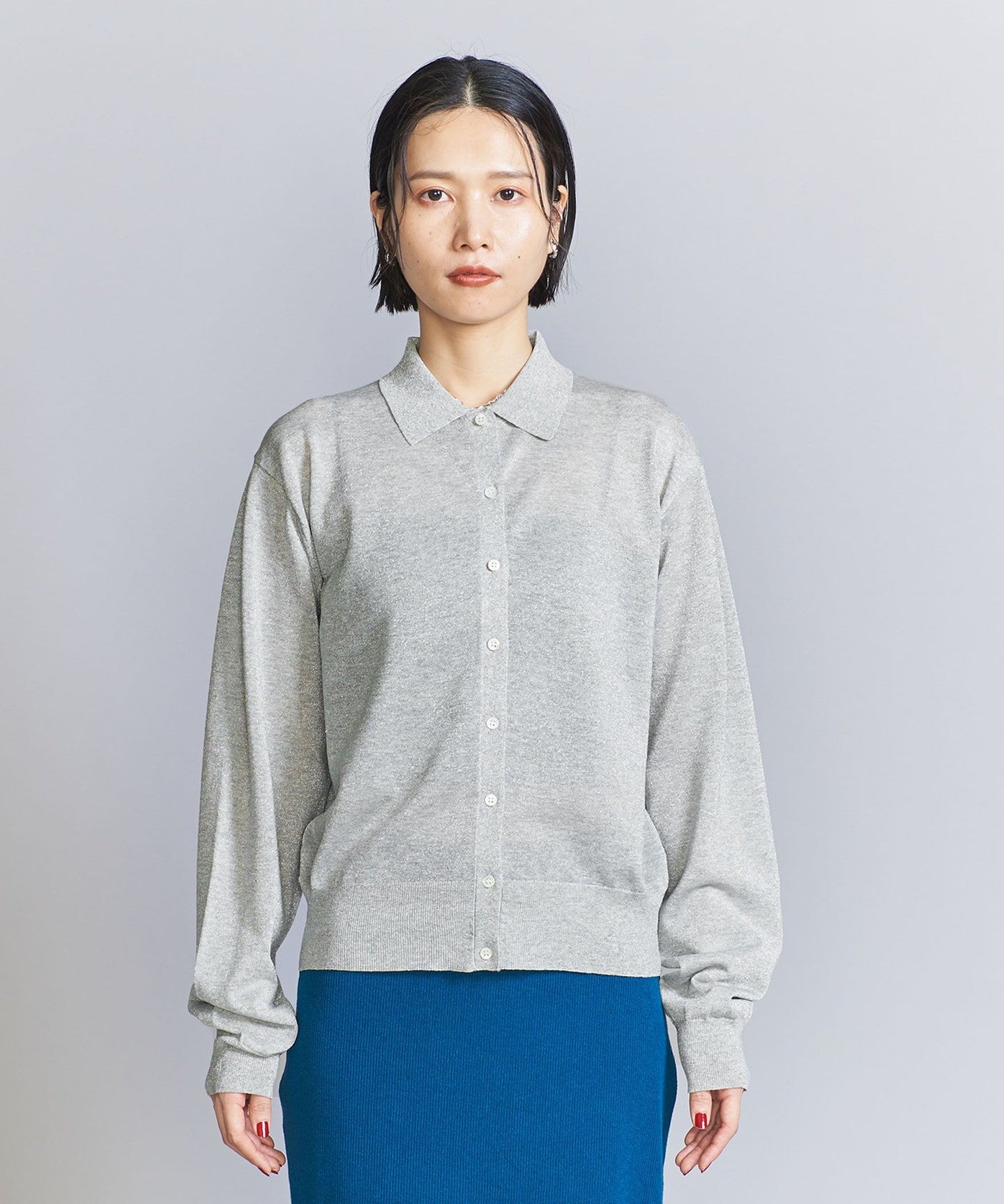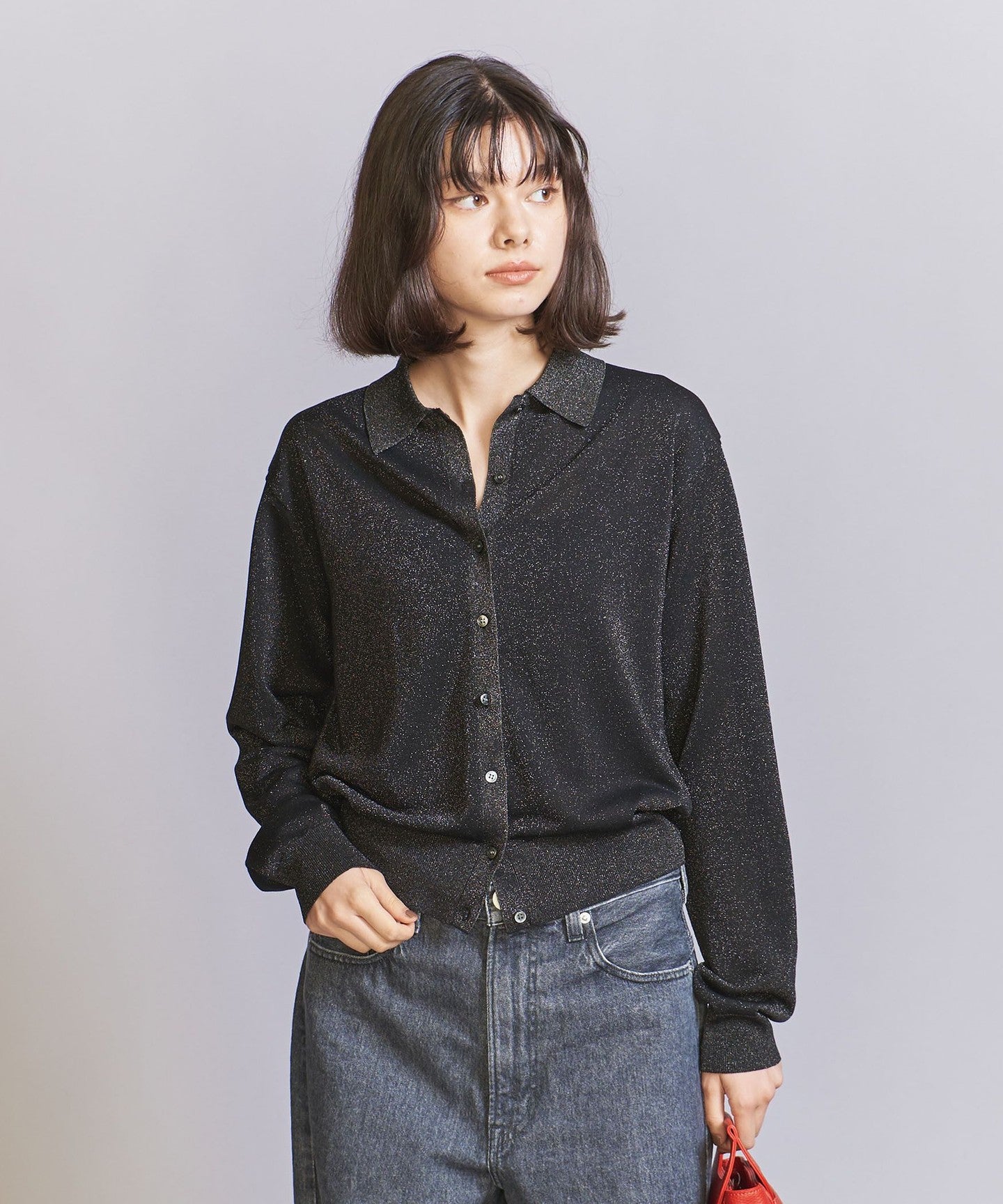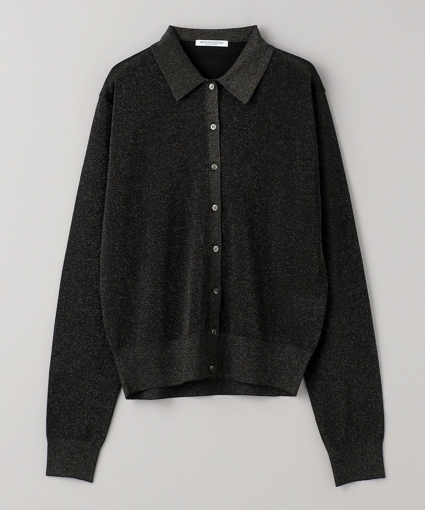 A fresh, elegantly sparkling glitter cardigan with a collar.