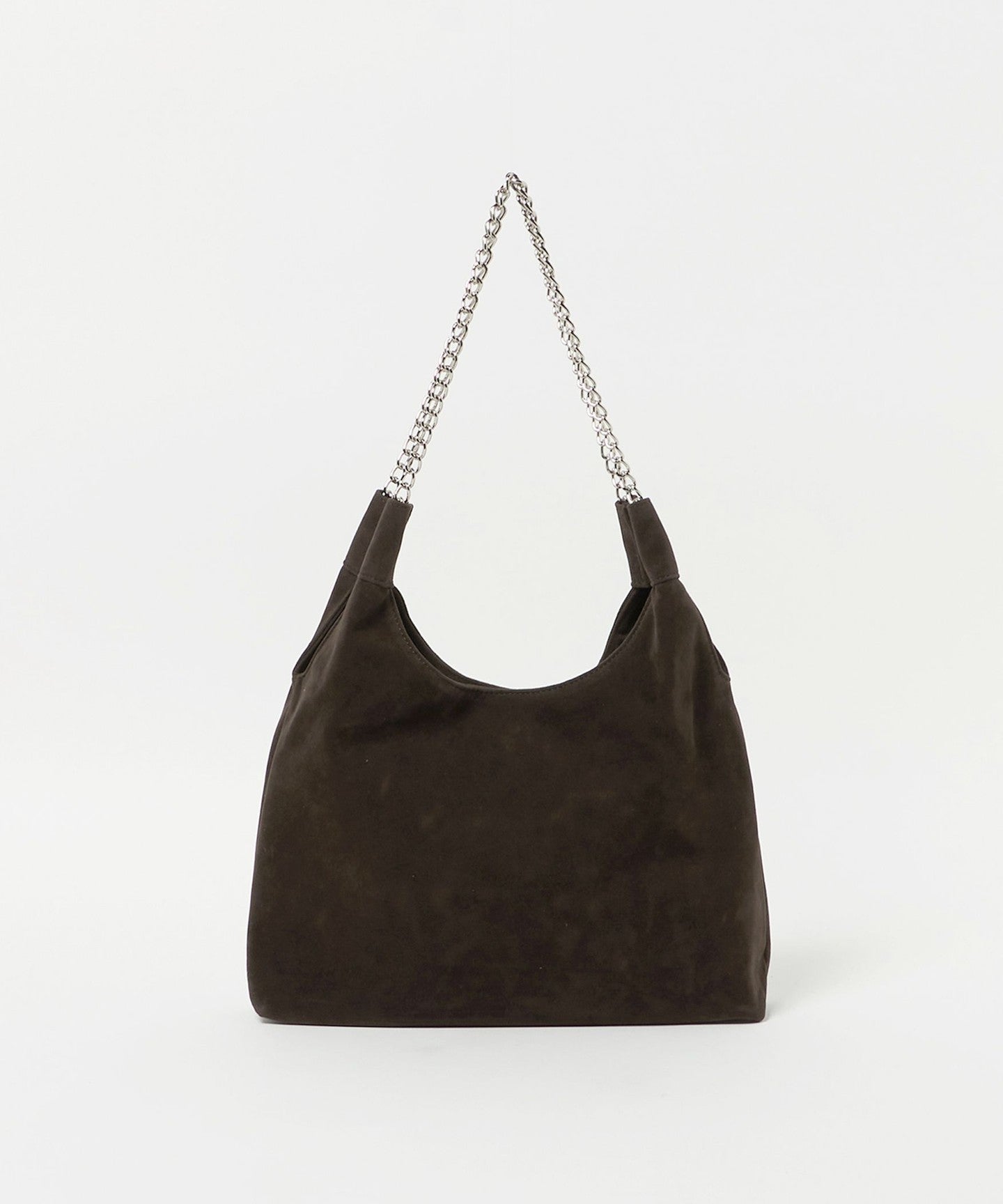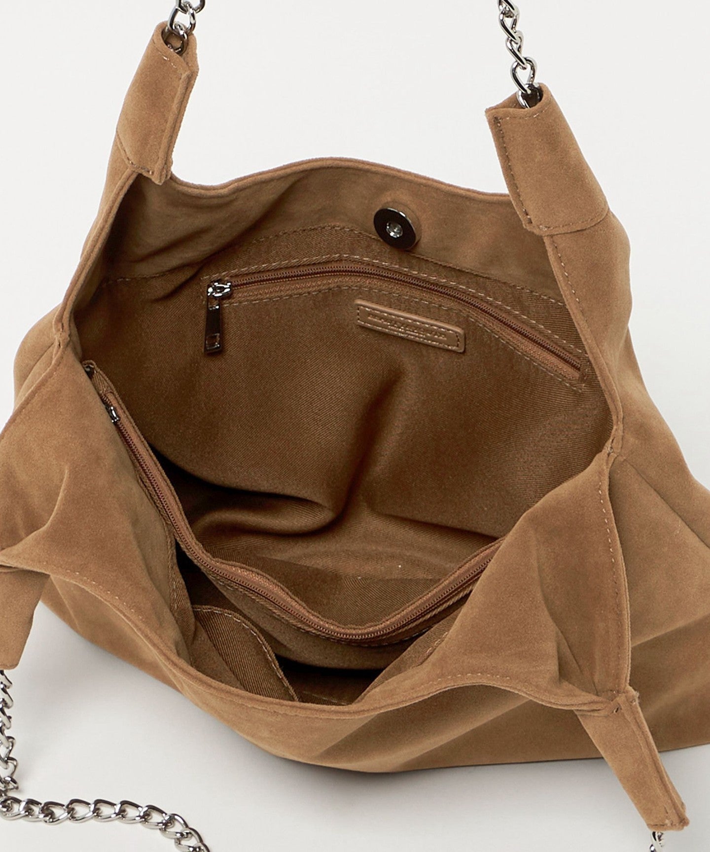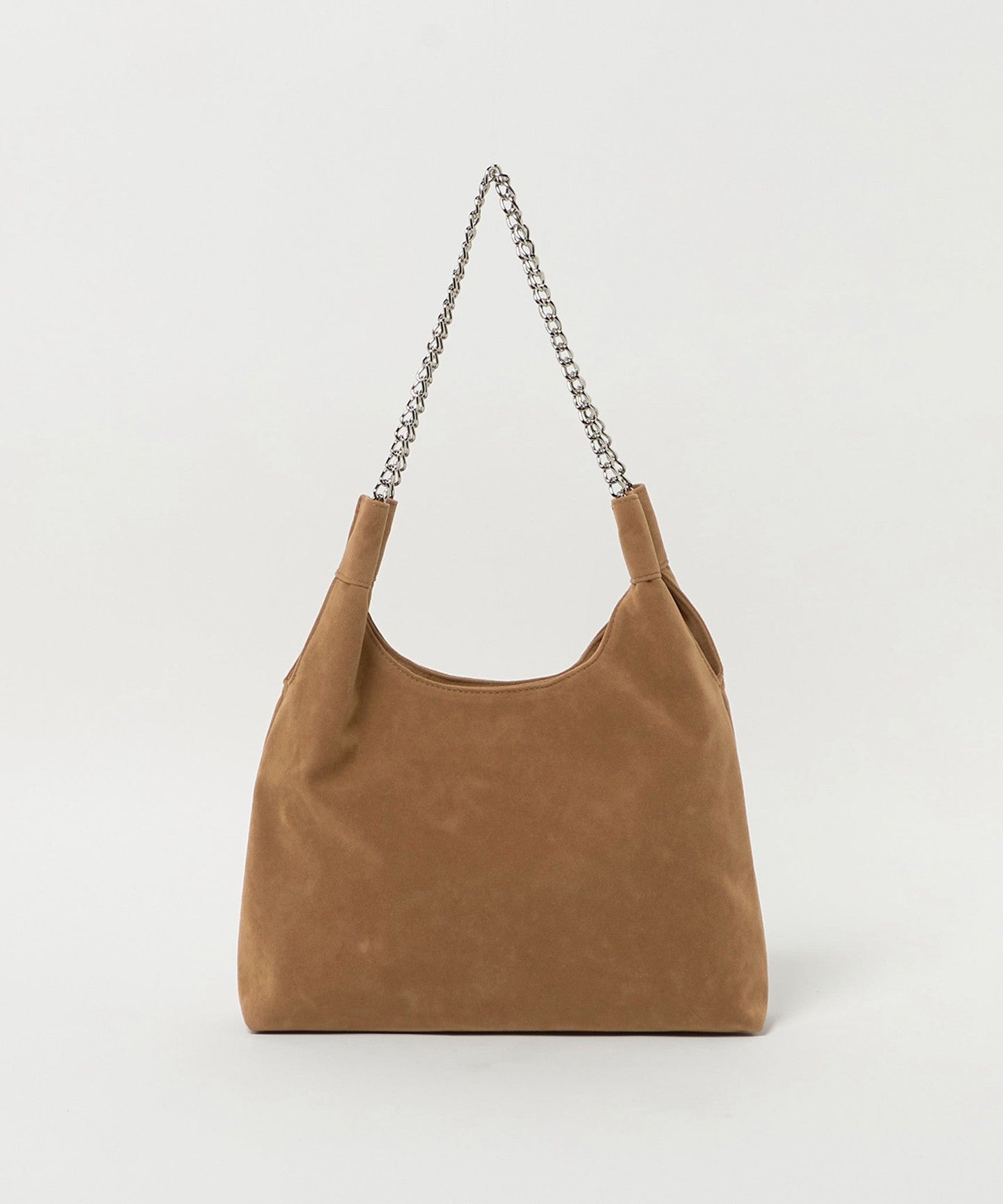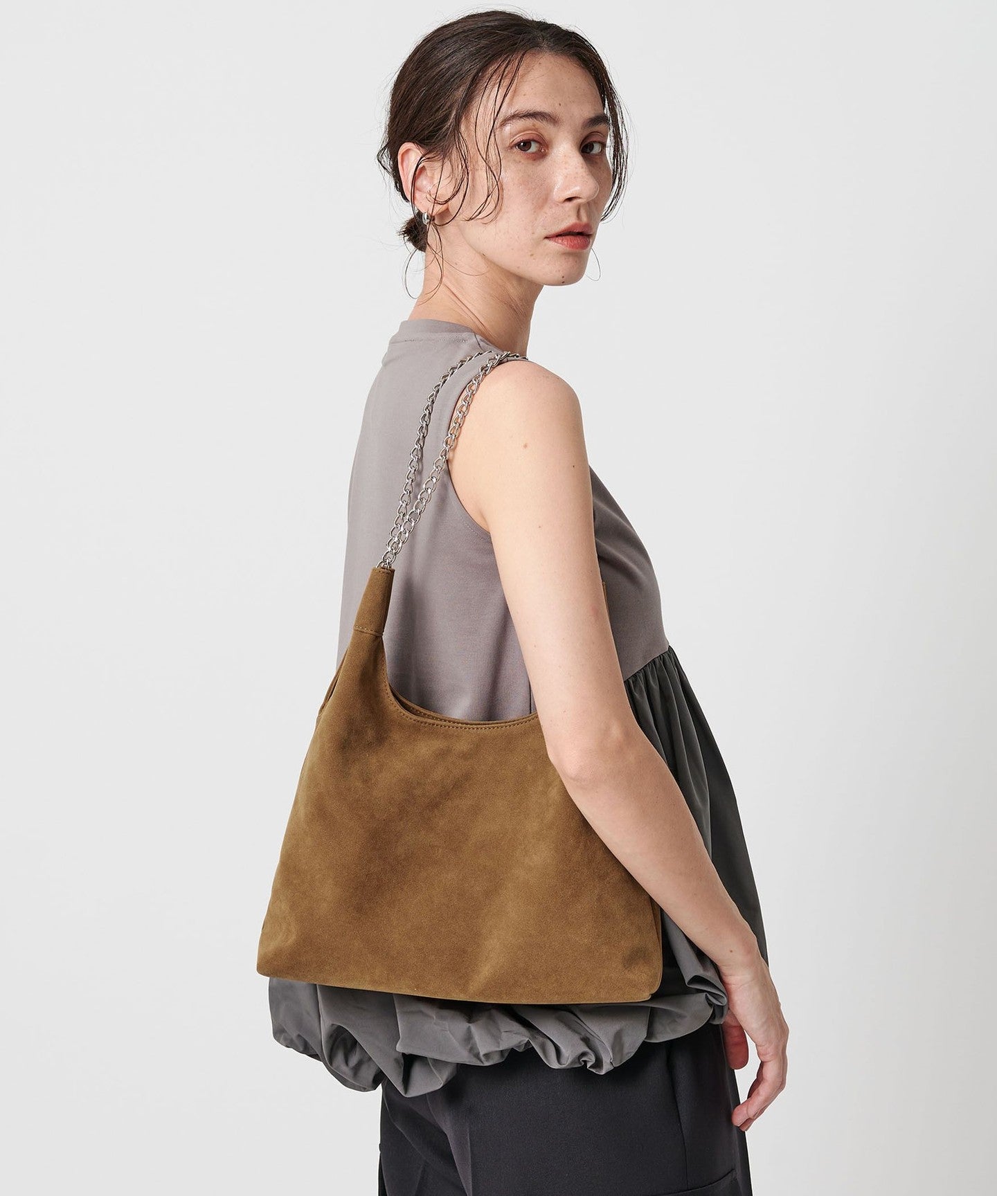 A shoulder bag made of suede-like material that exudes a seasonal mood.