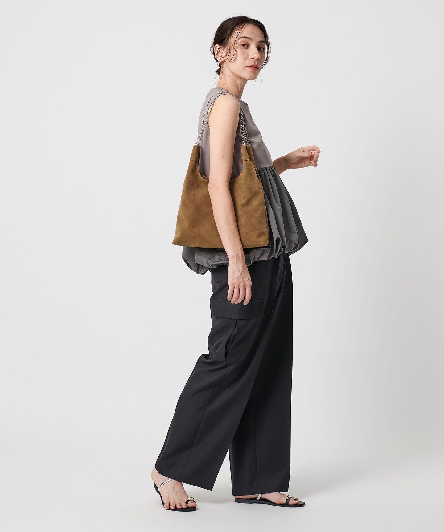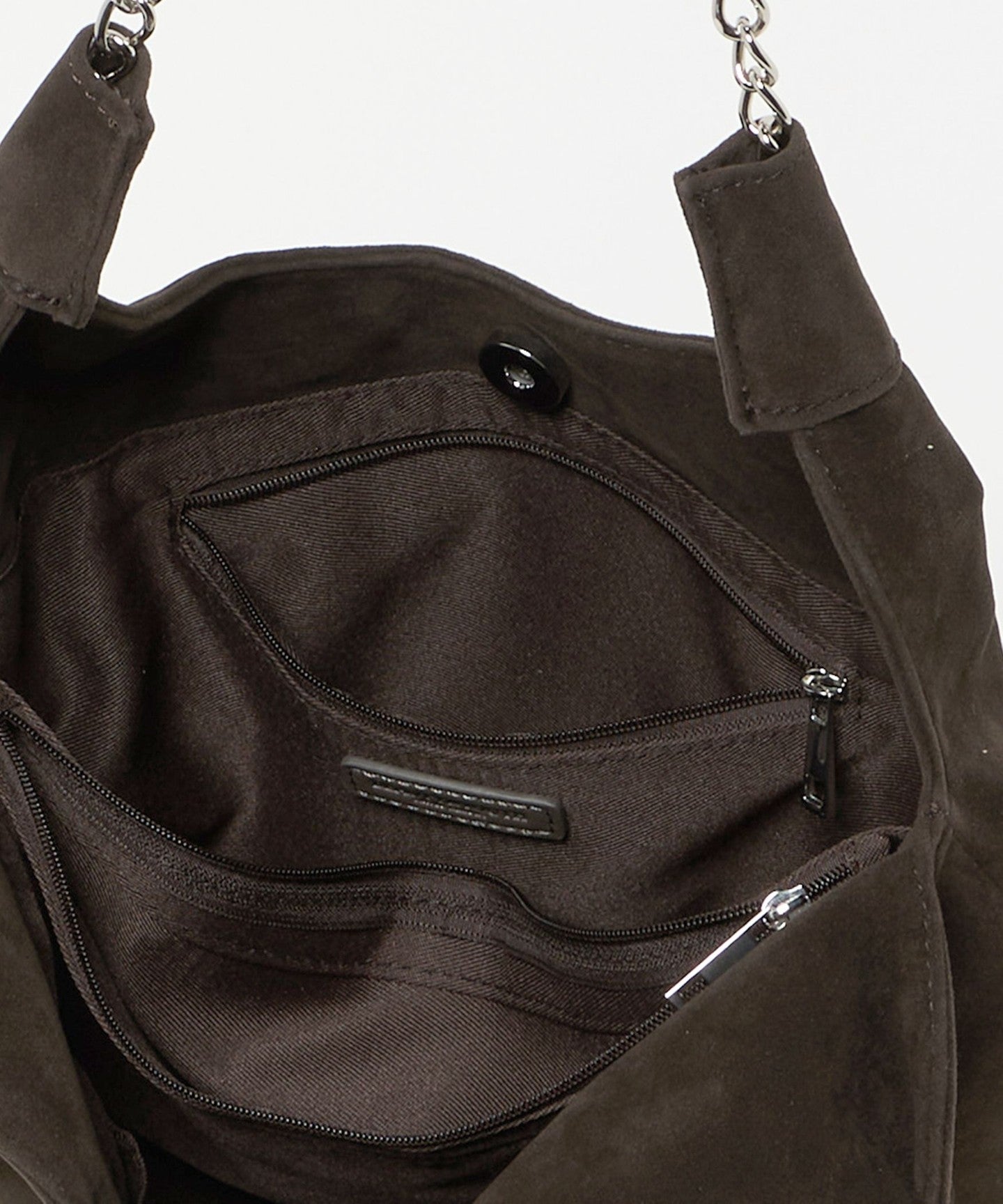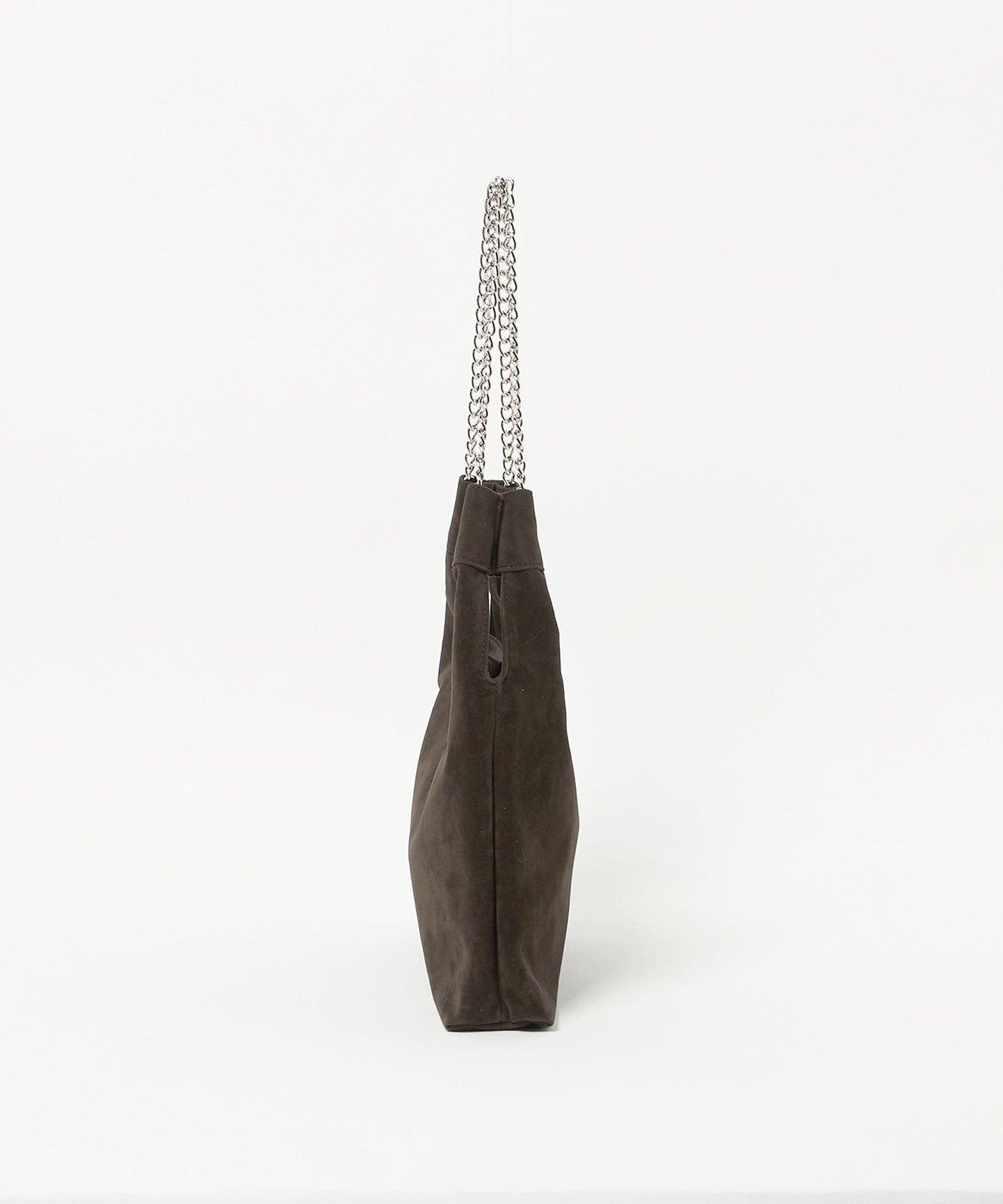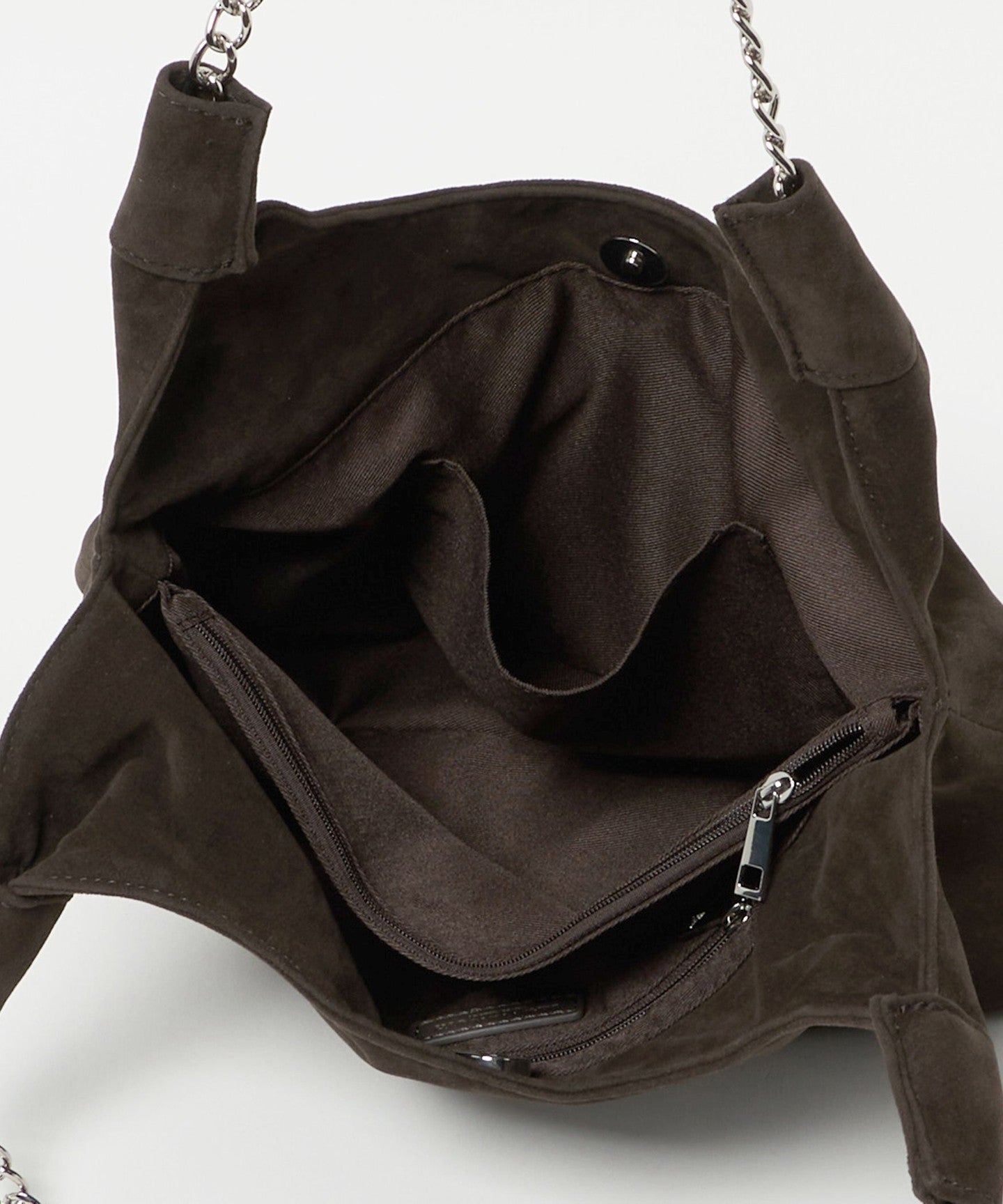 A shoulder bag made of suede-like material that exudes a seasonal mood.