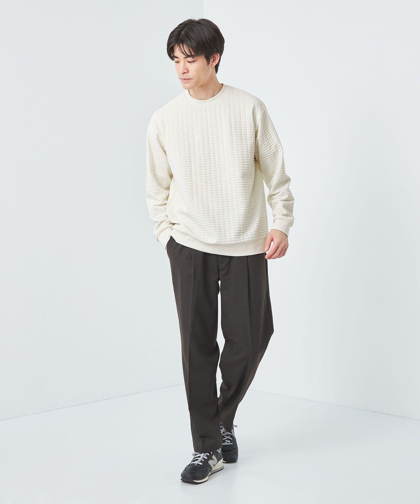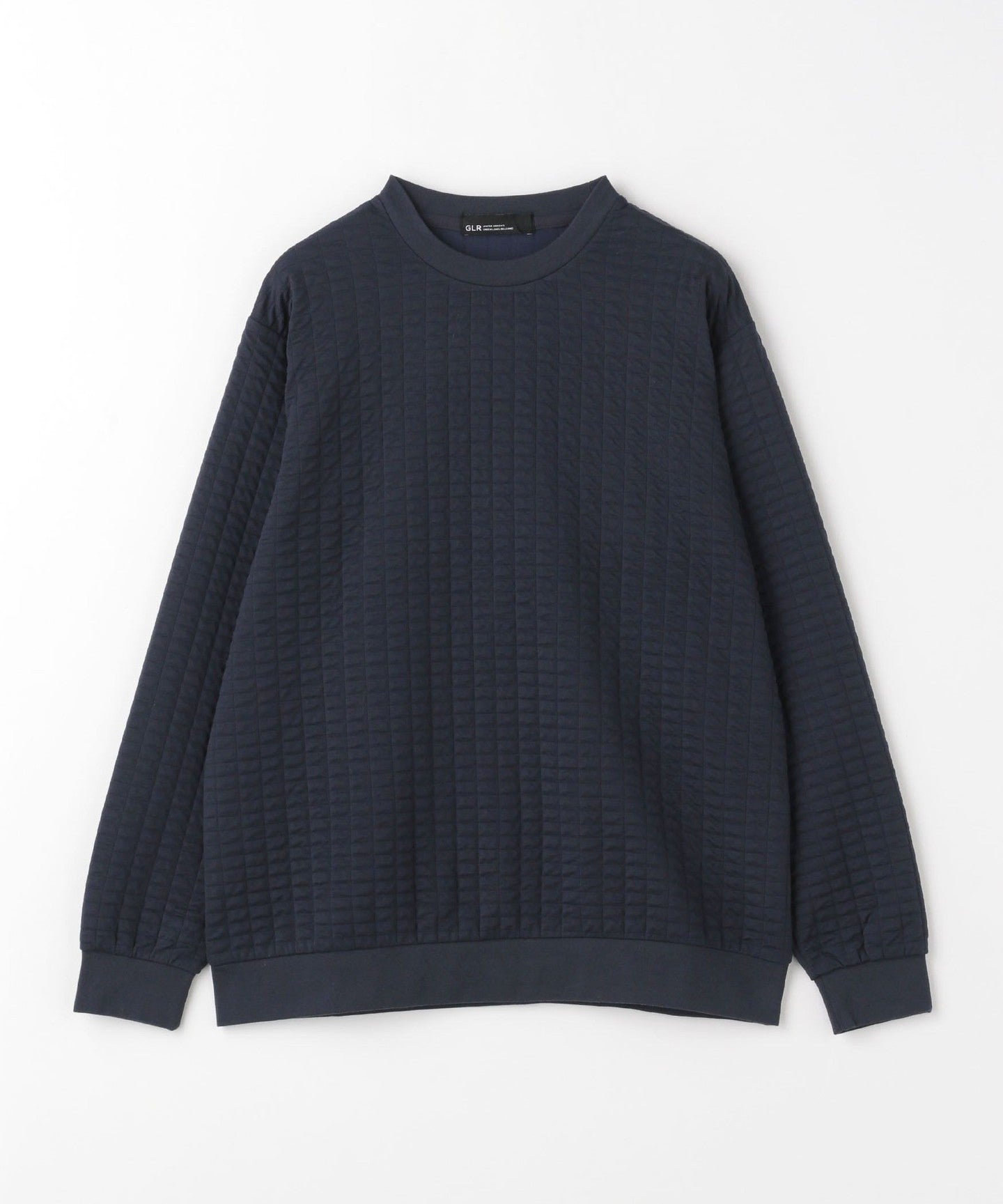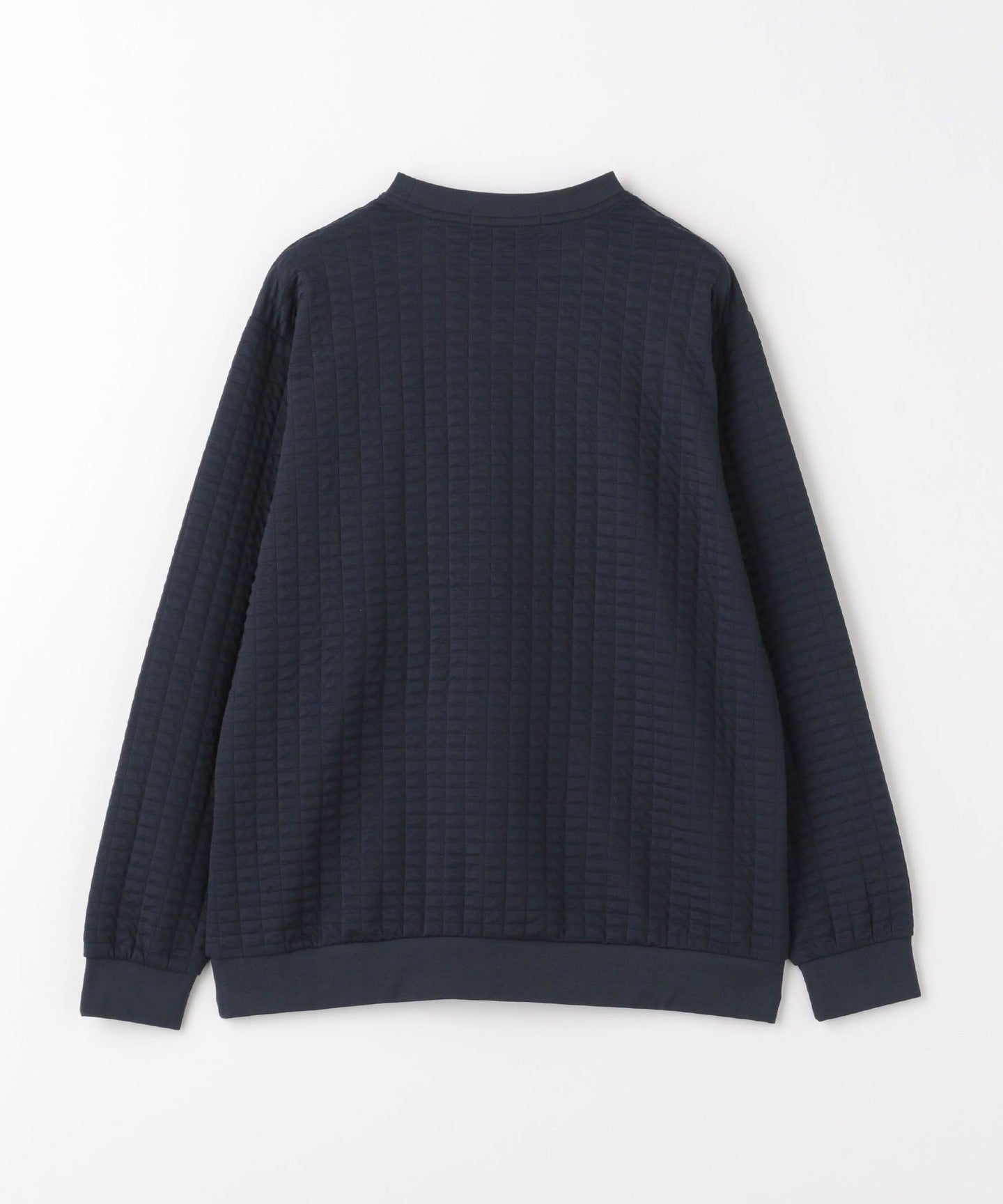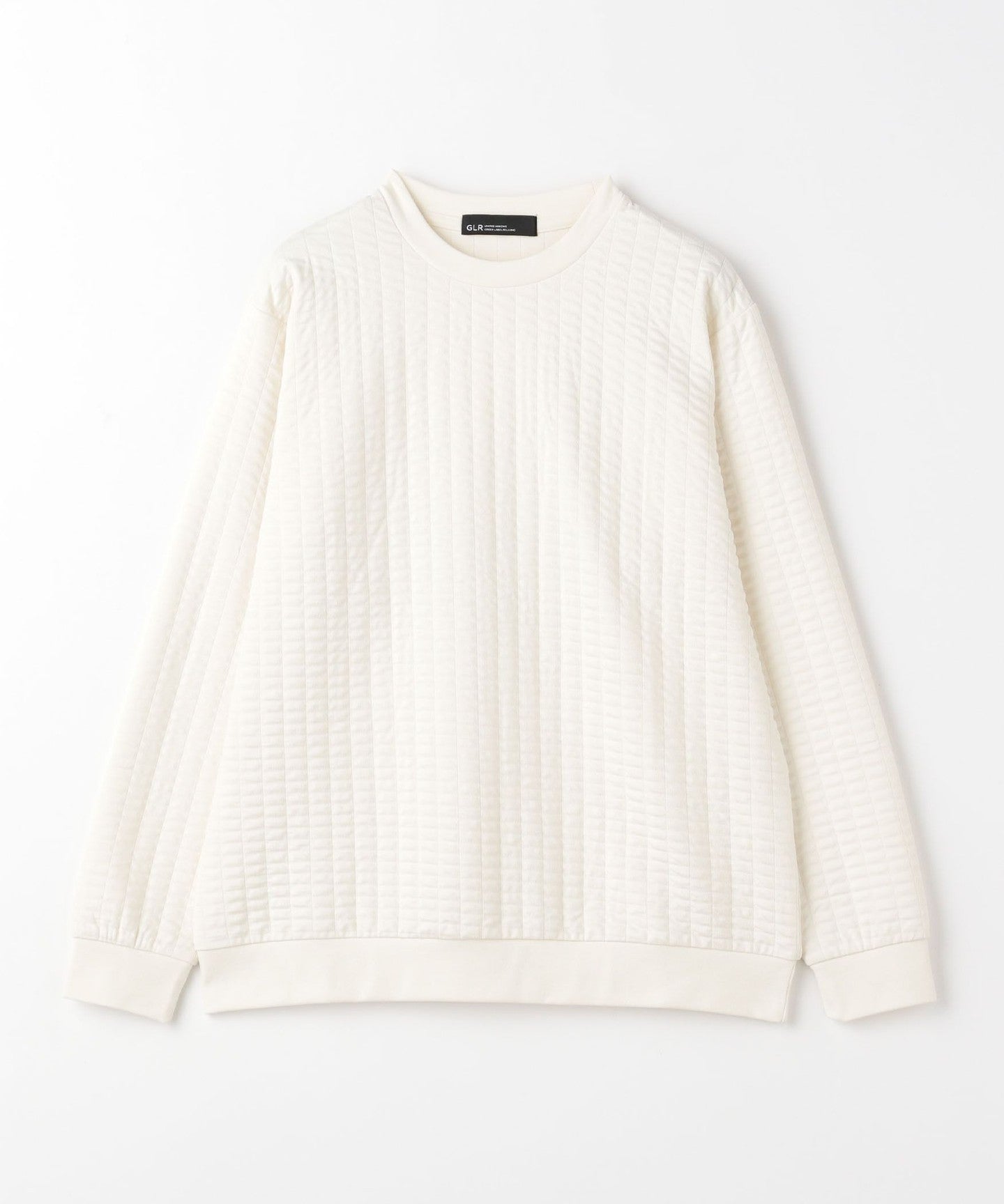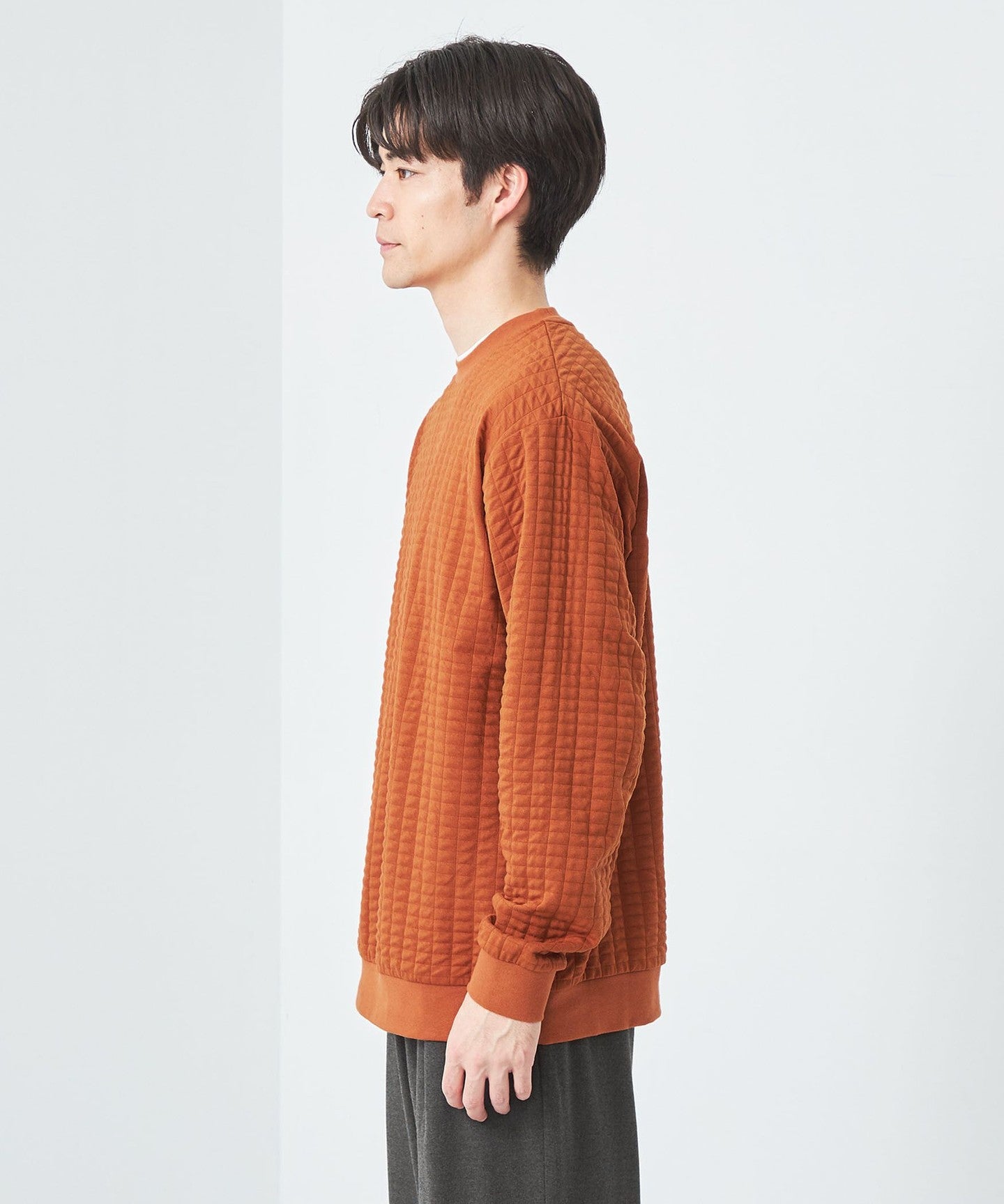 This is a crew neck cut-and-sew with a moderately loose silhouette.