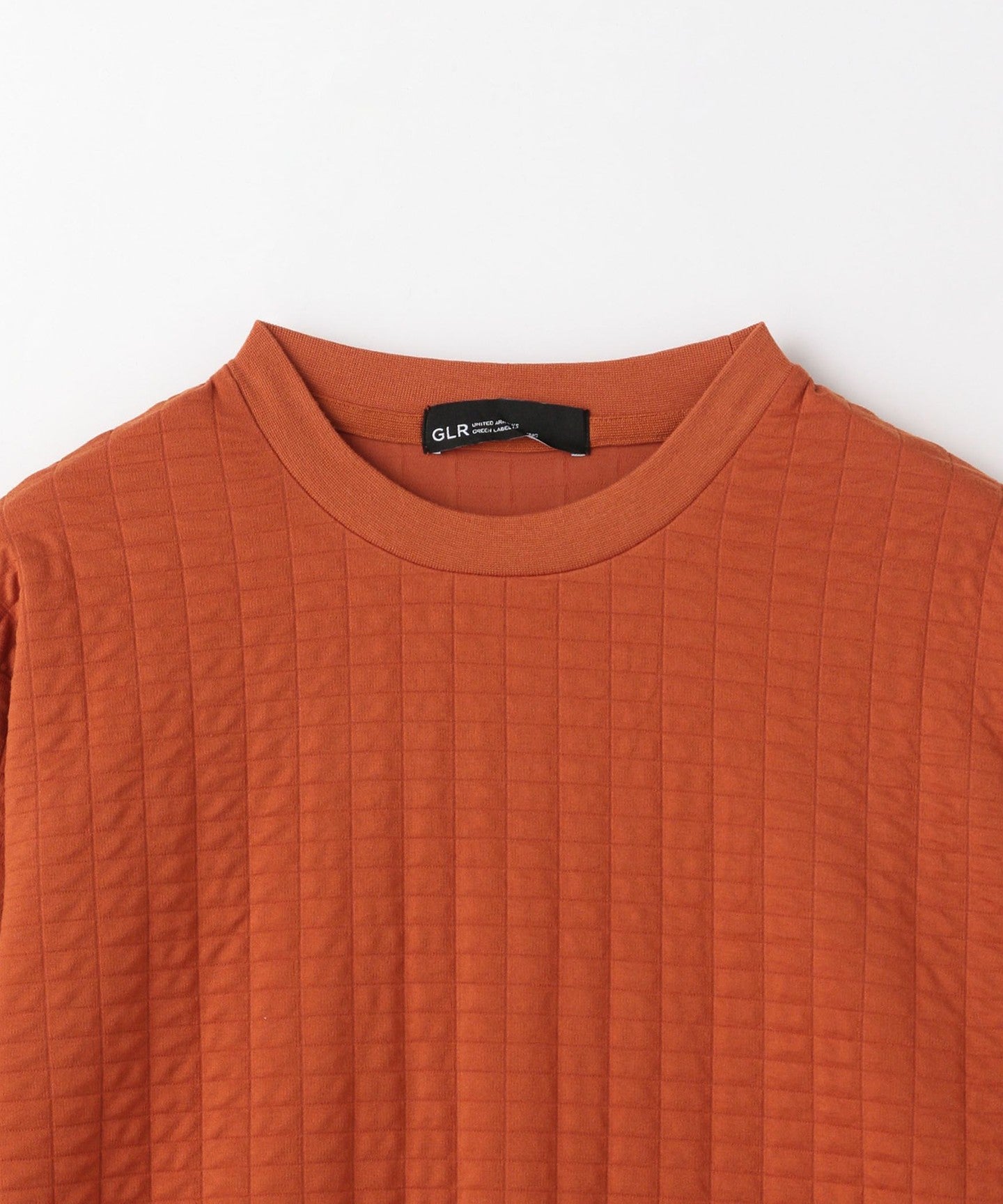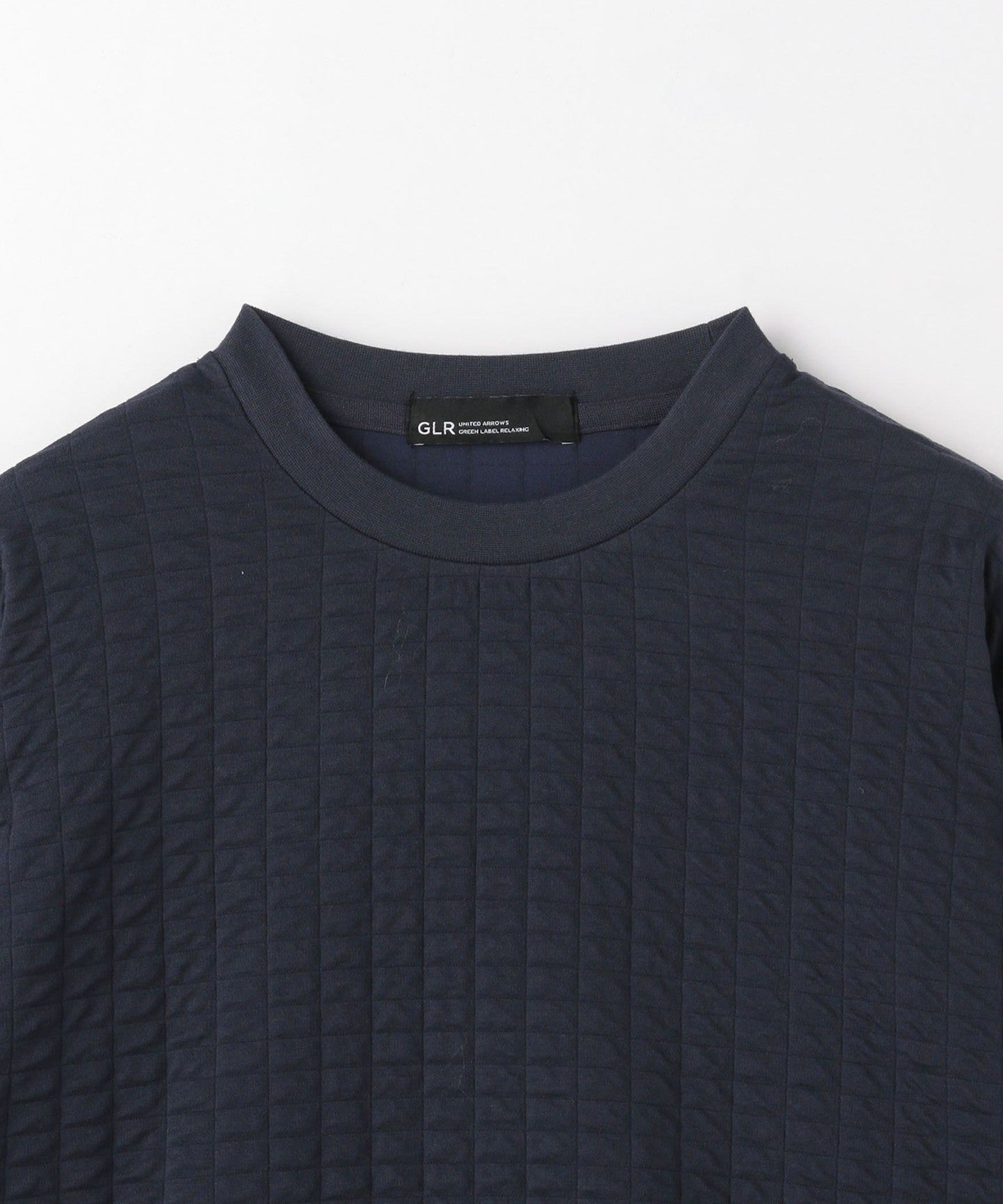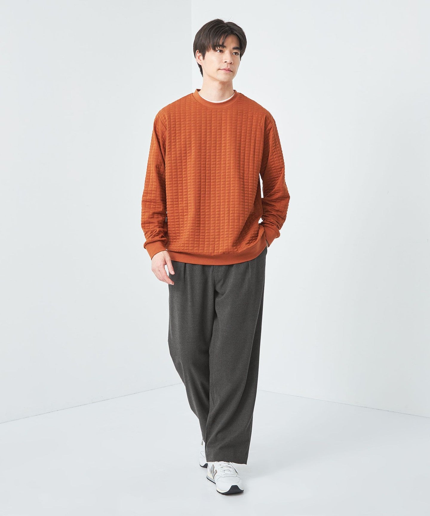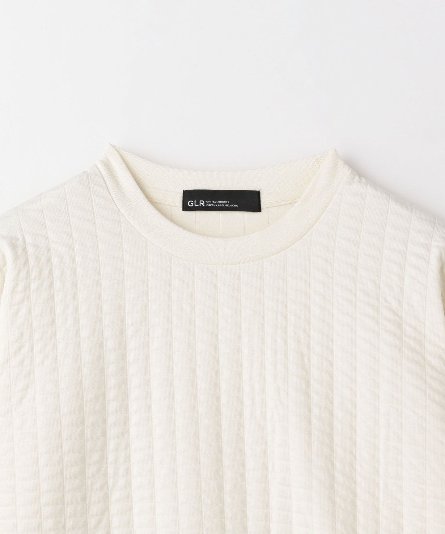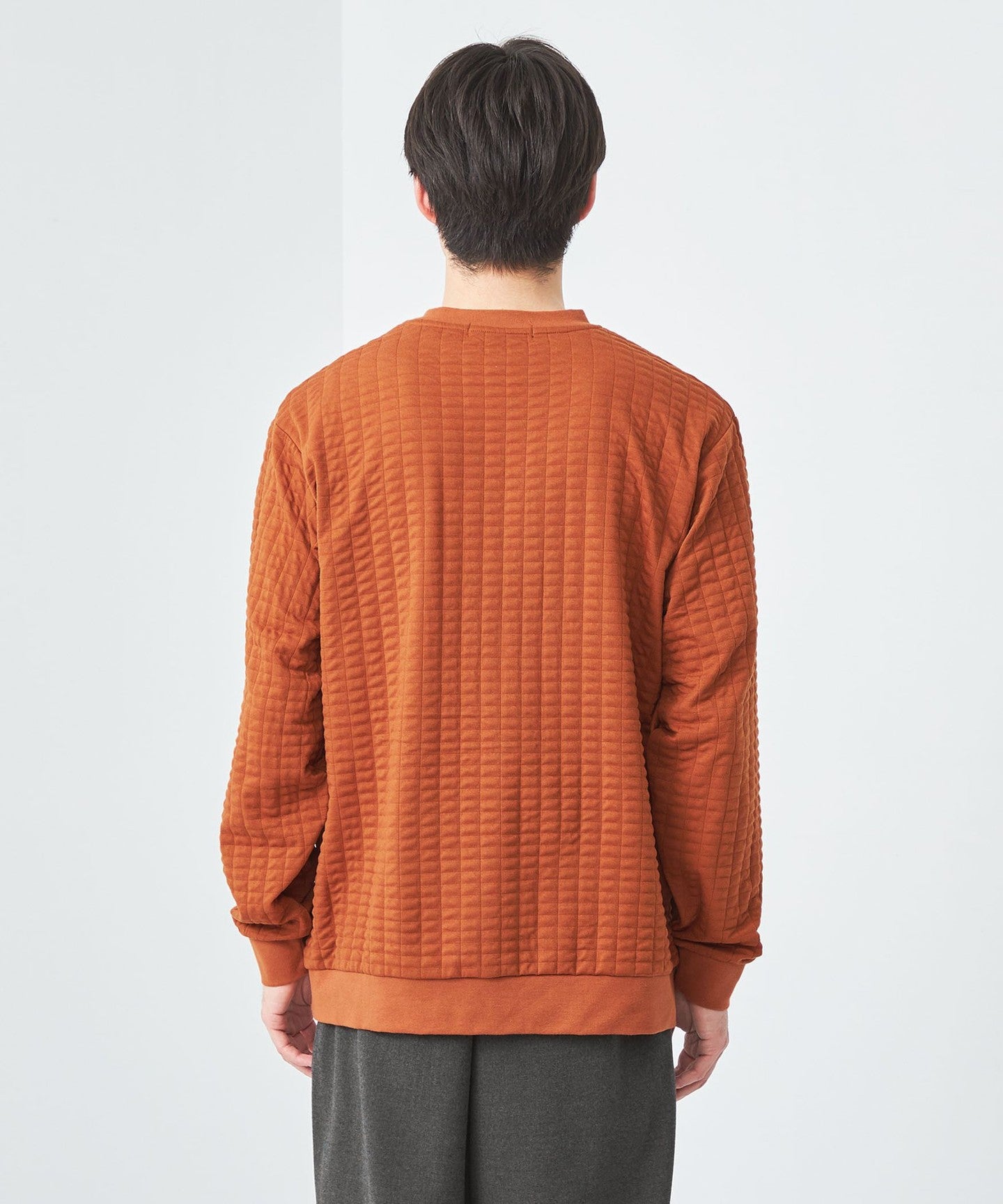 This is a crew neck cut-and-sew with a moderately loose silhouette.