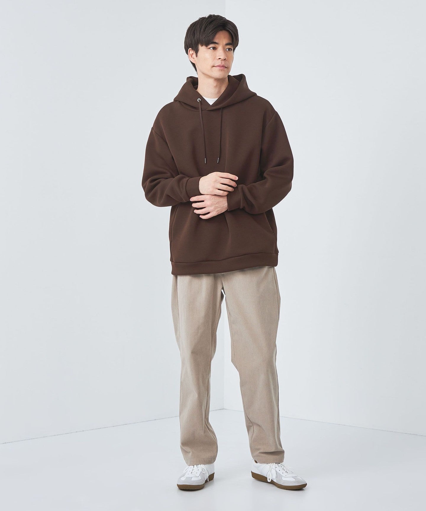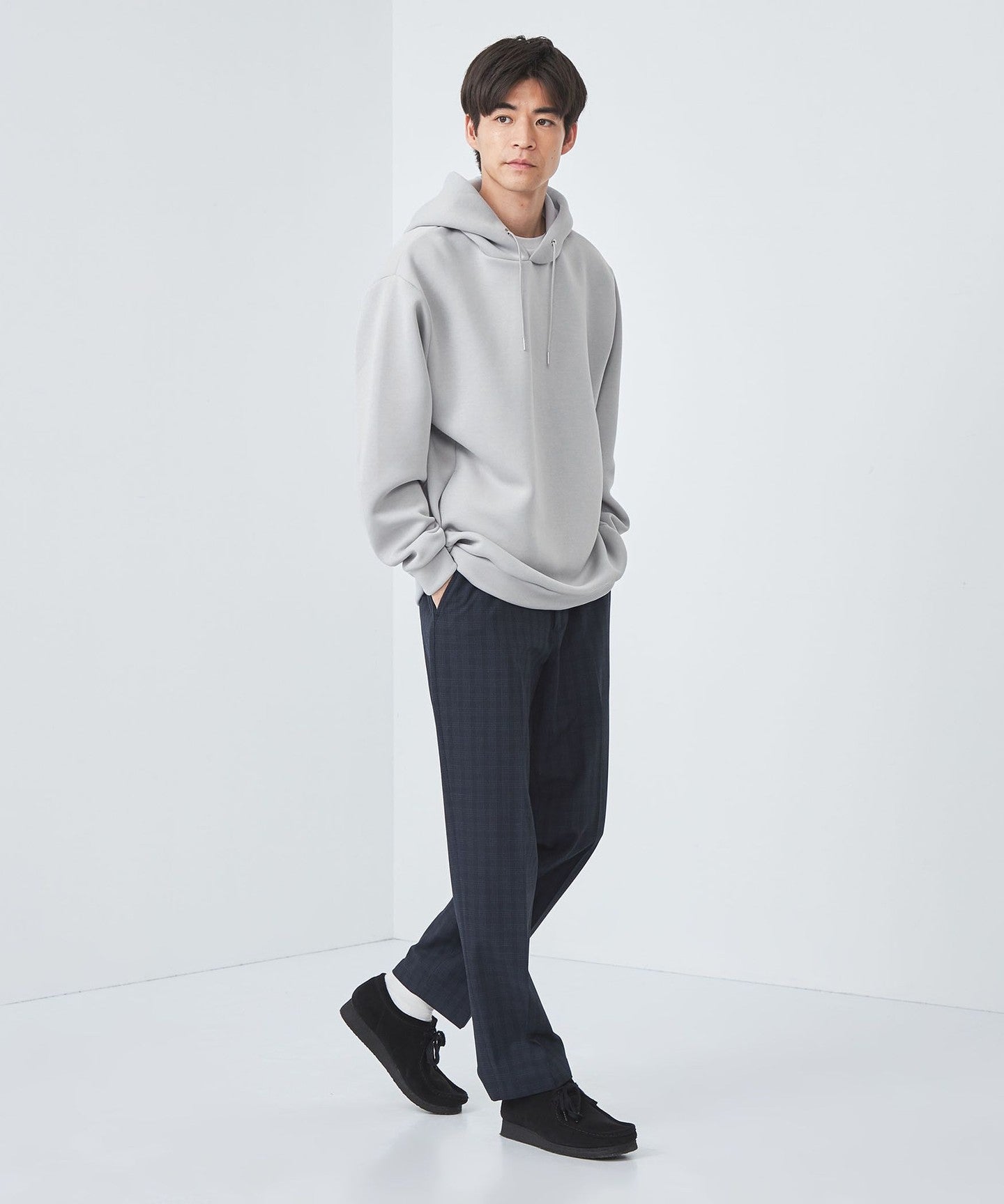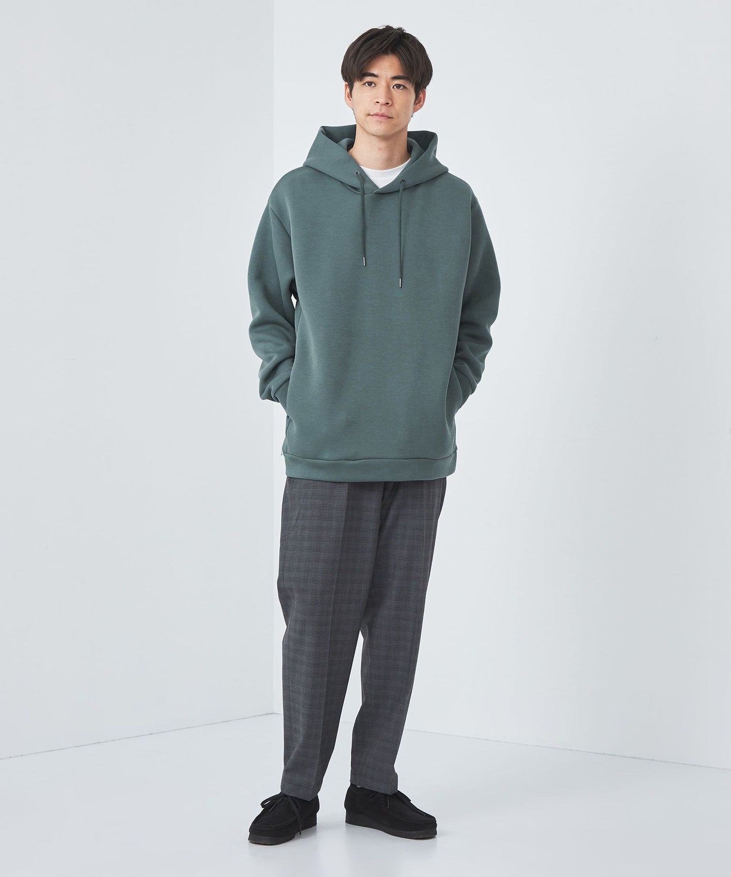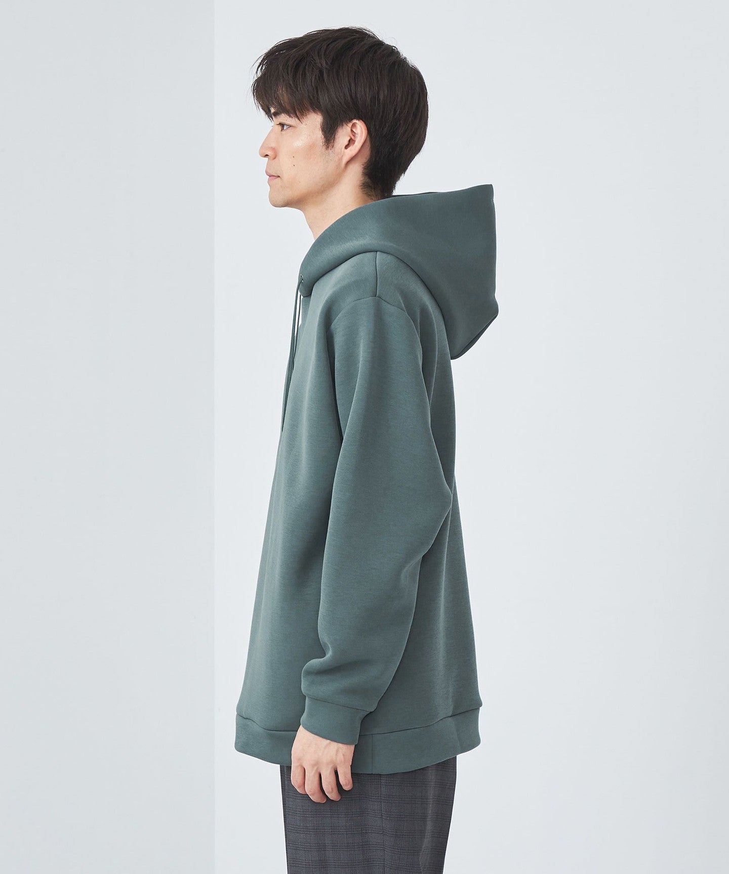 The fabric has a clean surface, so when paired with wool pants or tapered pants, it creates a minimalist, clean look.