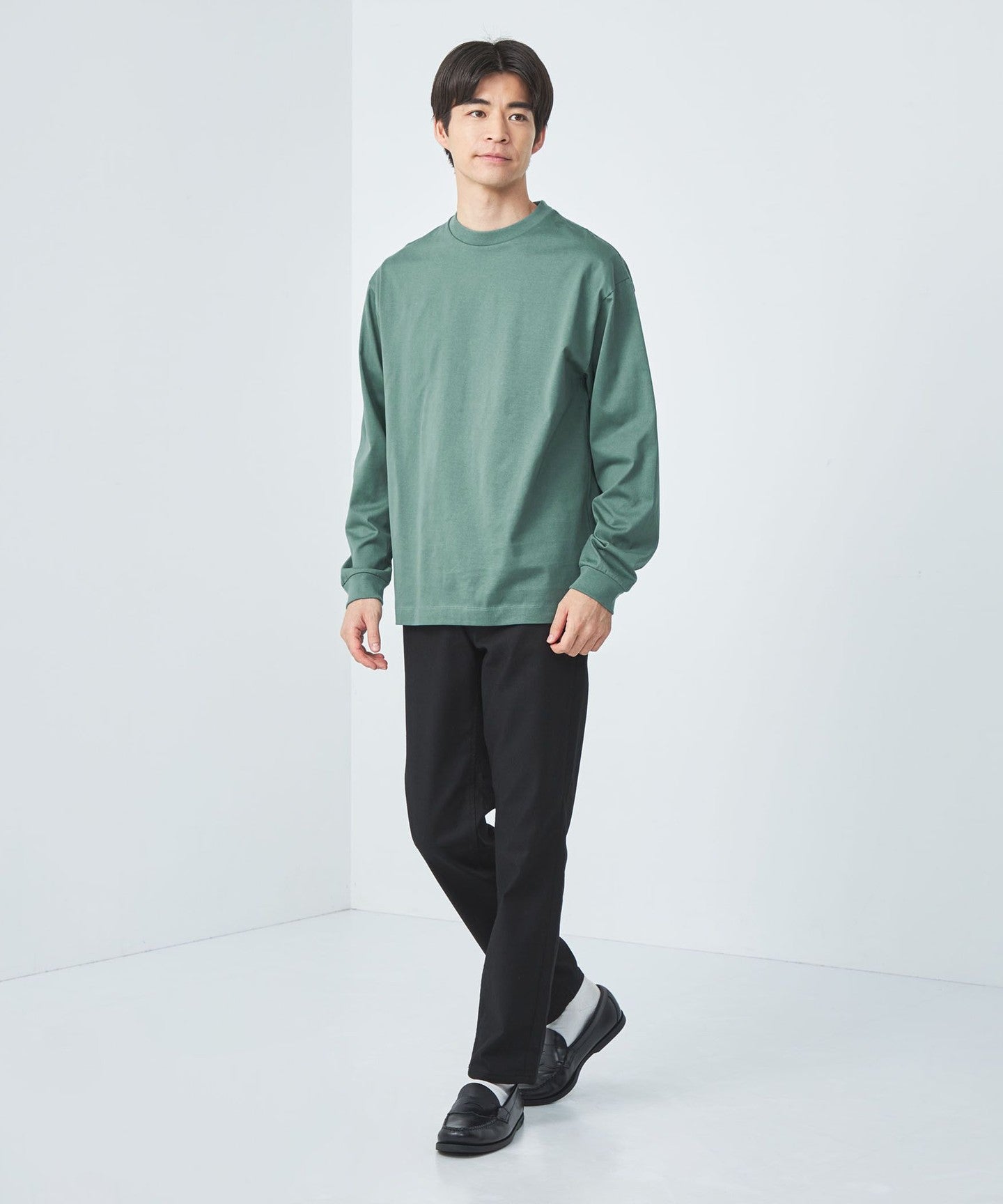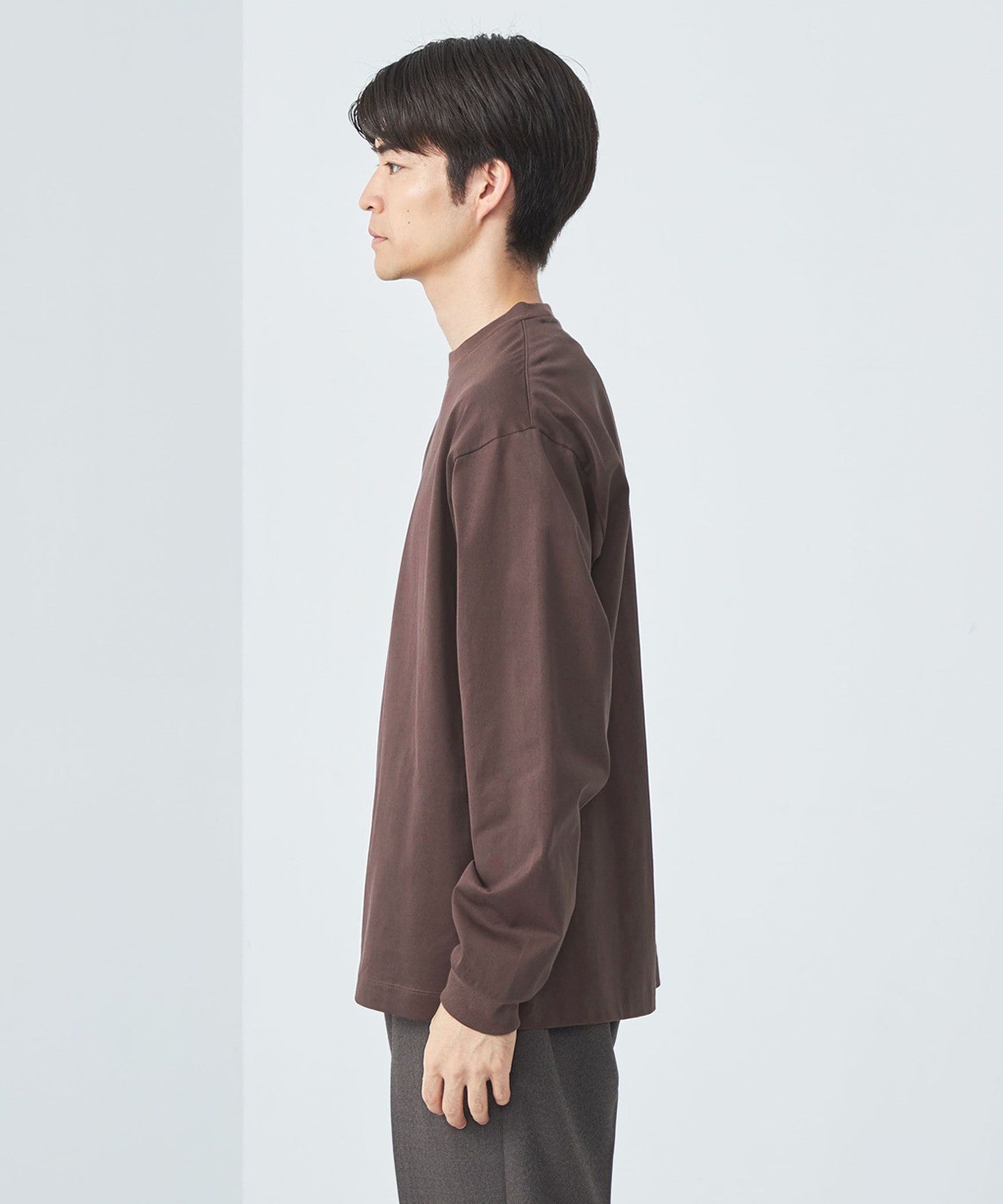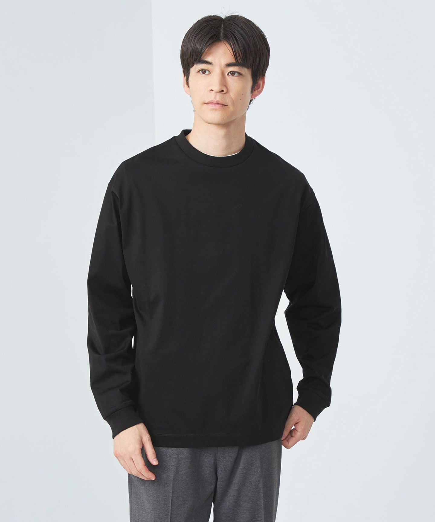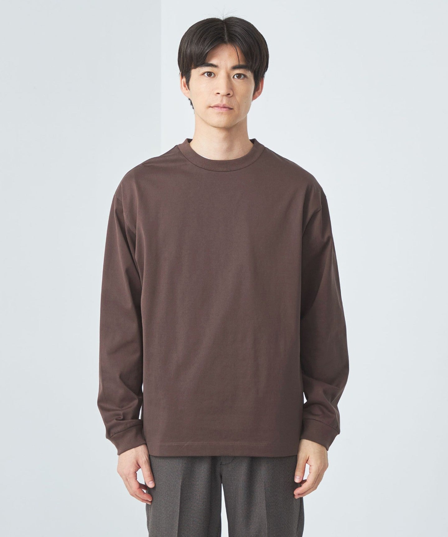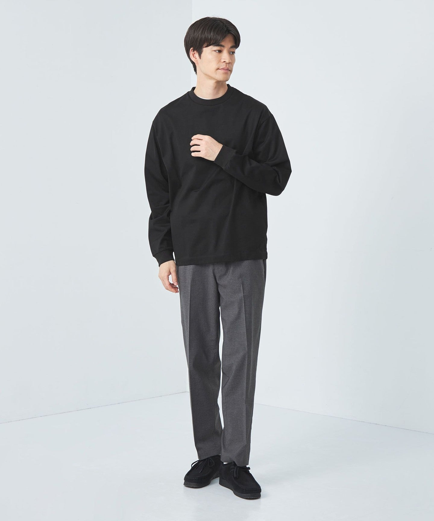 The clean texture of the material makes it a good match for neat bottoms such as slacks and tapered pants.