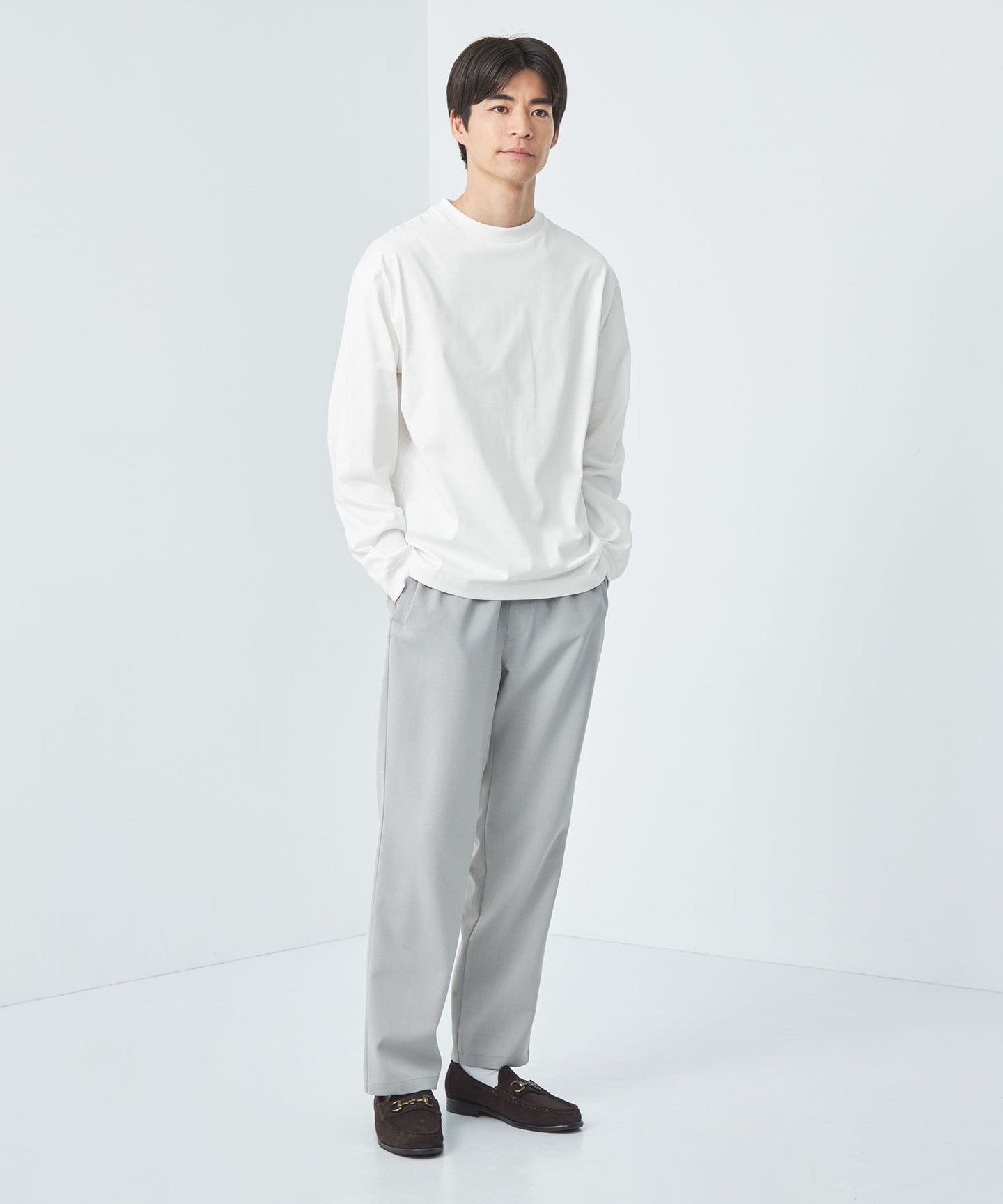 Of course, we also recommend pairing it with classic casual pants such as denim or chinos.