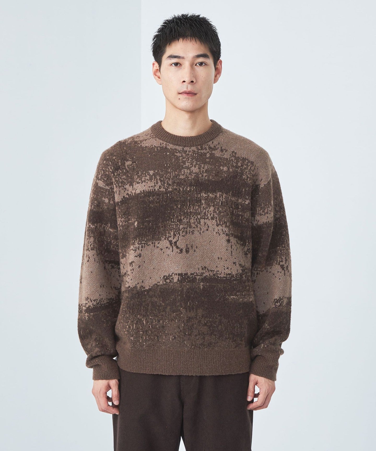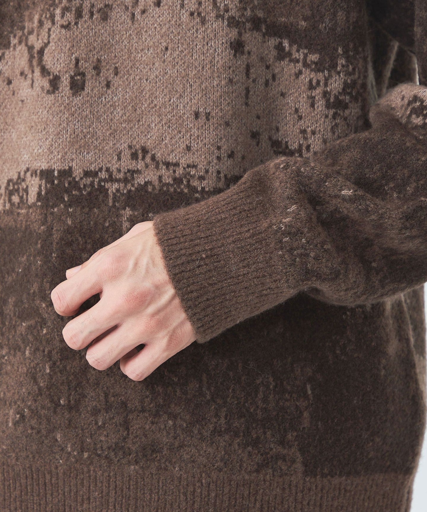 This is a piece that is full of attention to detail, such as using brushed yarn to blur the boundaries in order to recreate the gradation of overlapping colors.
