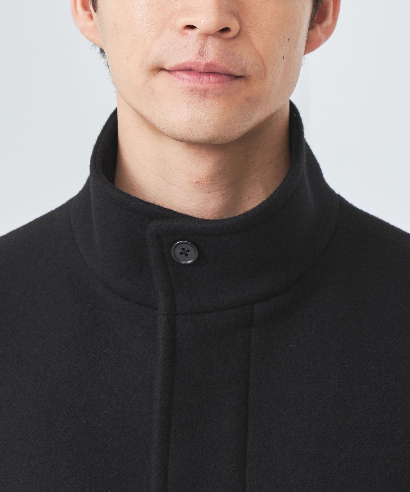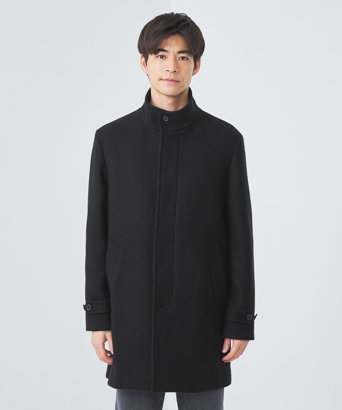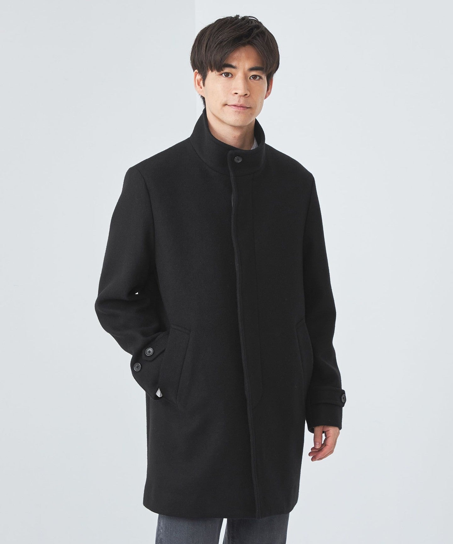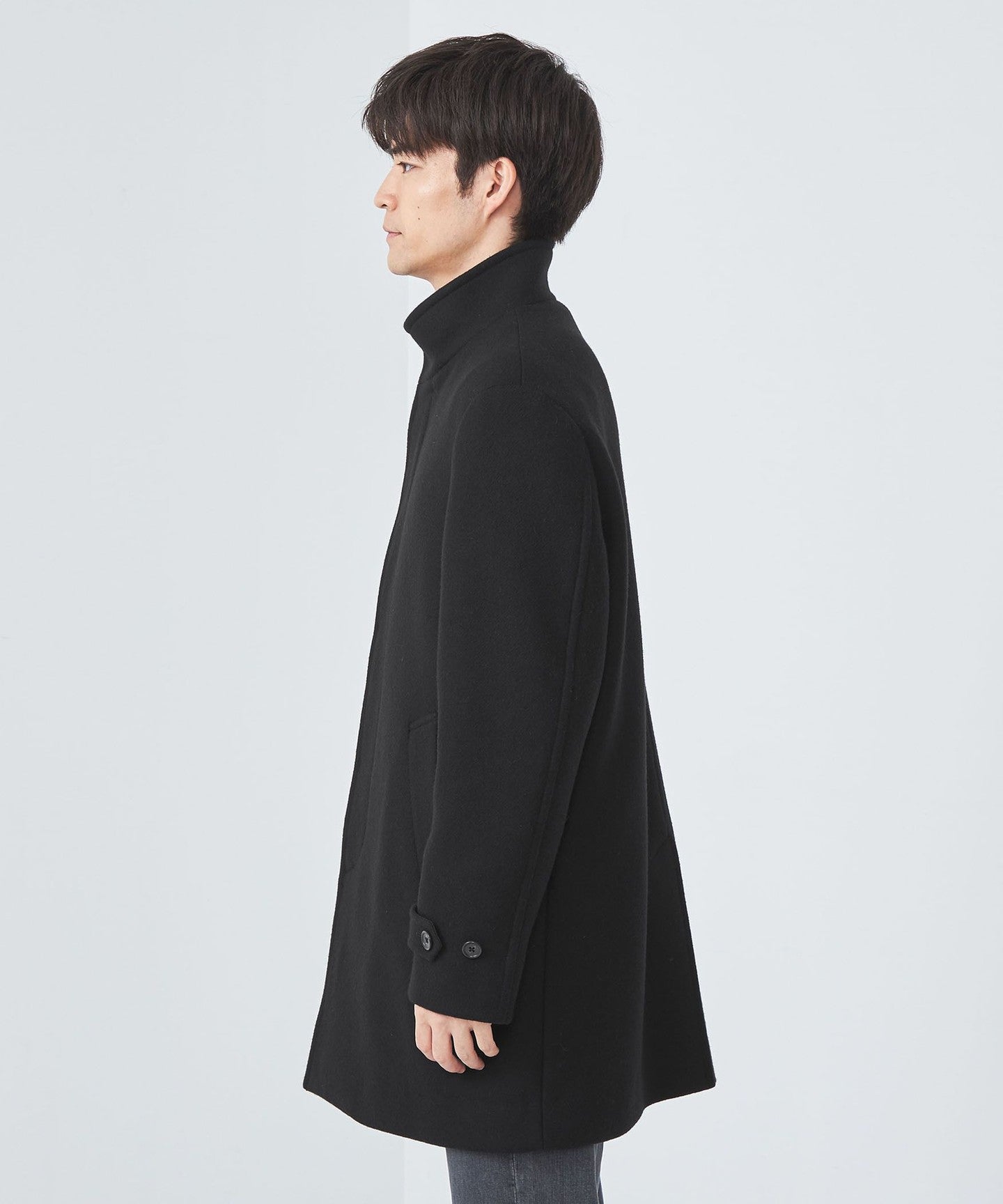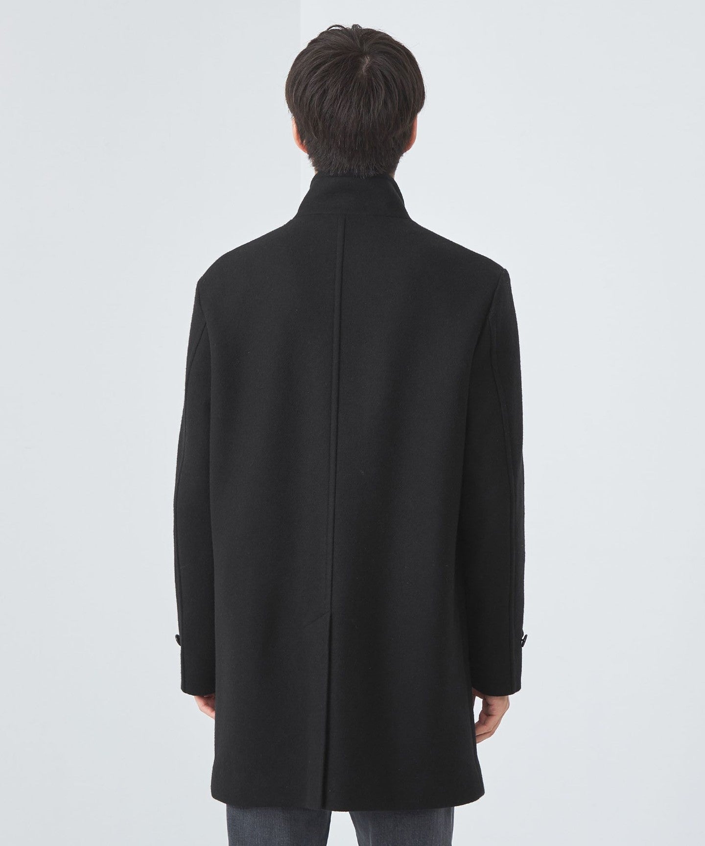 Stand collar half coat.