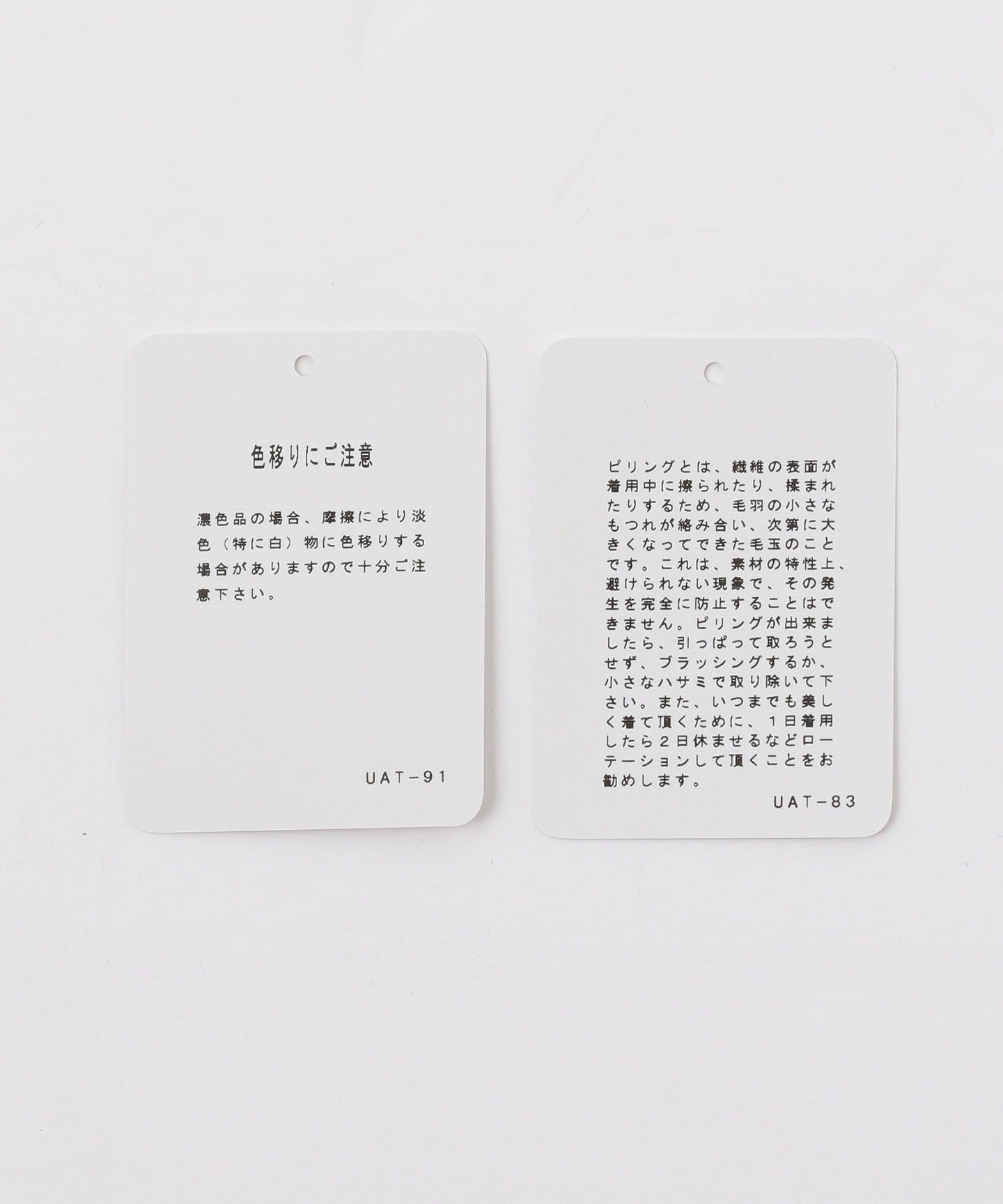 *Before using the product, be sure to check the "Handling Instructions" and "Washing Instructions" listed on the tag, etc.