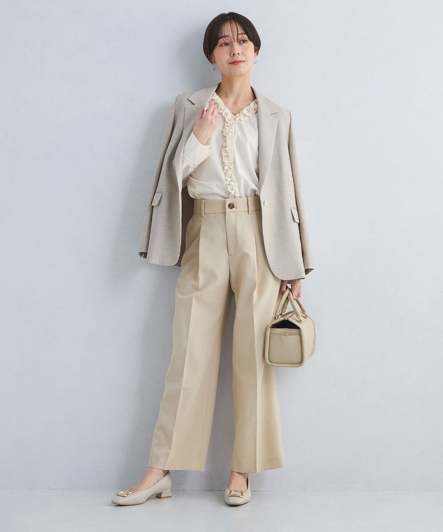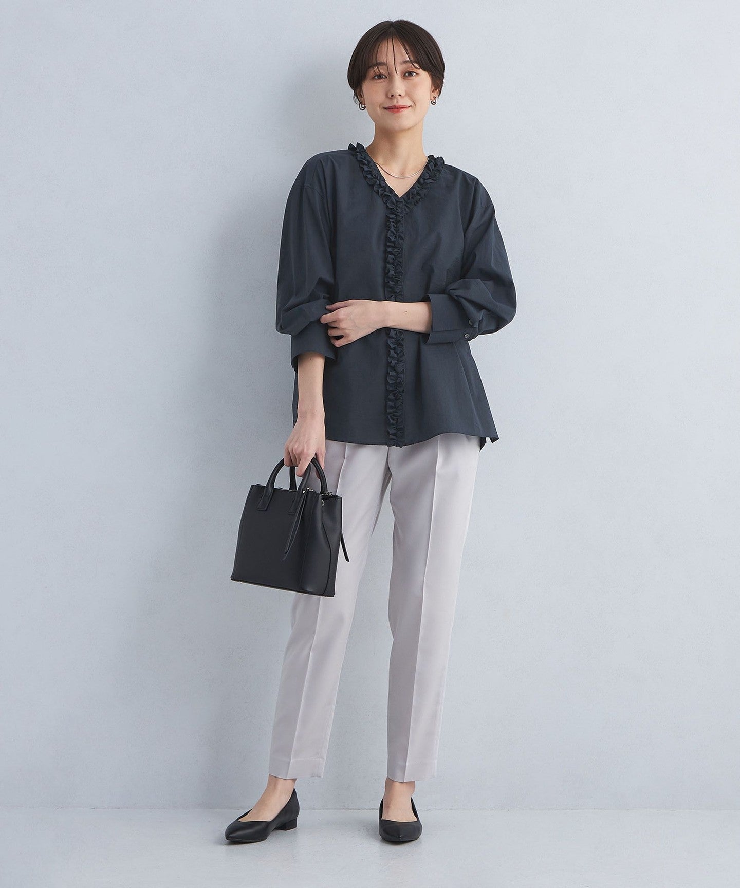 It goes well with a variety of bottoms, from wide pants to tight skirts.