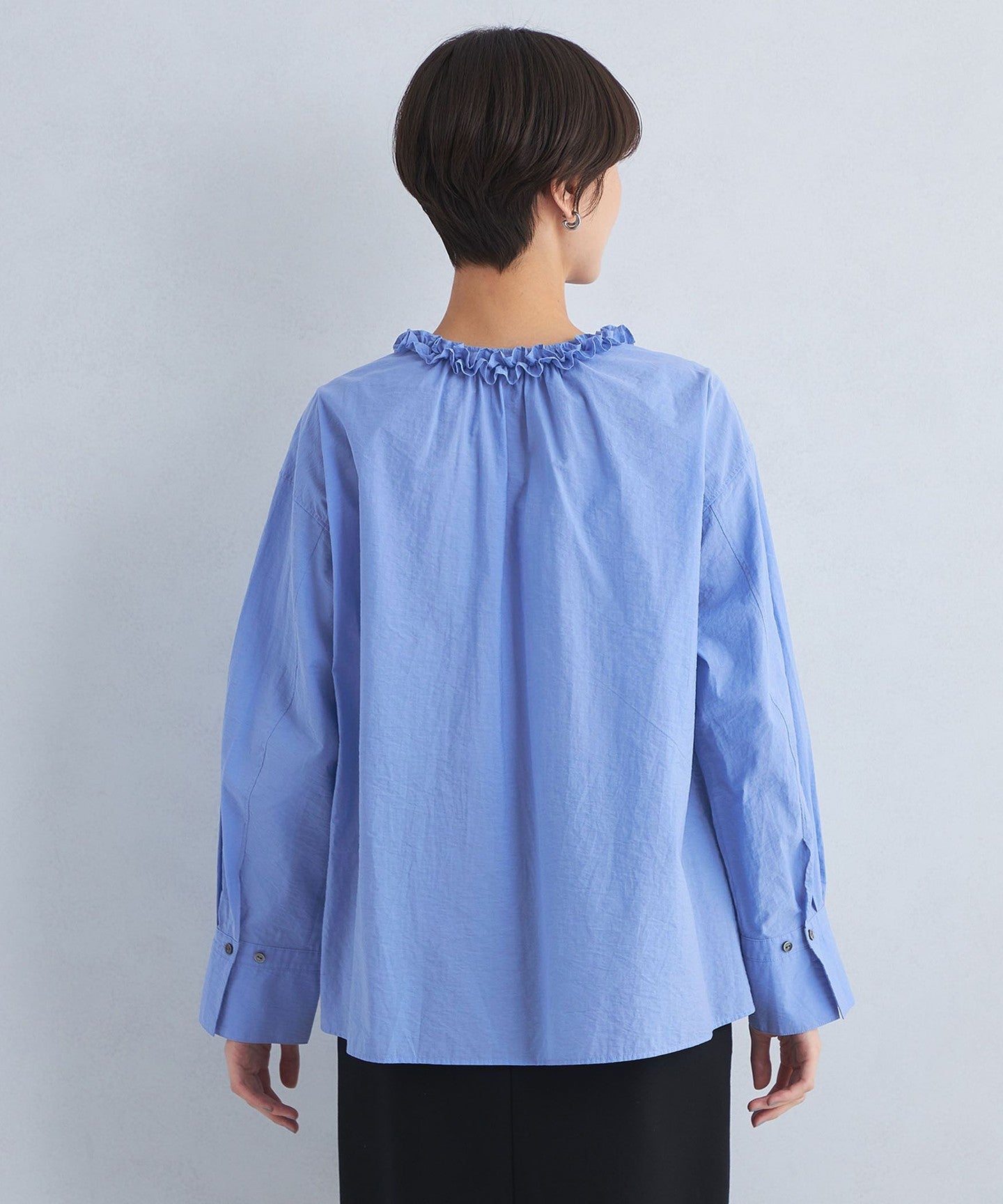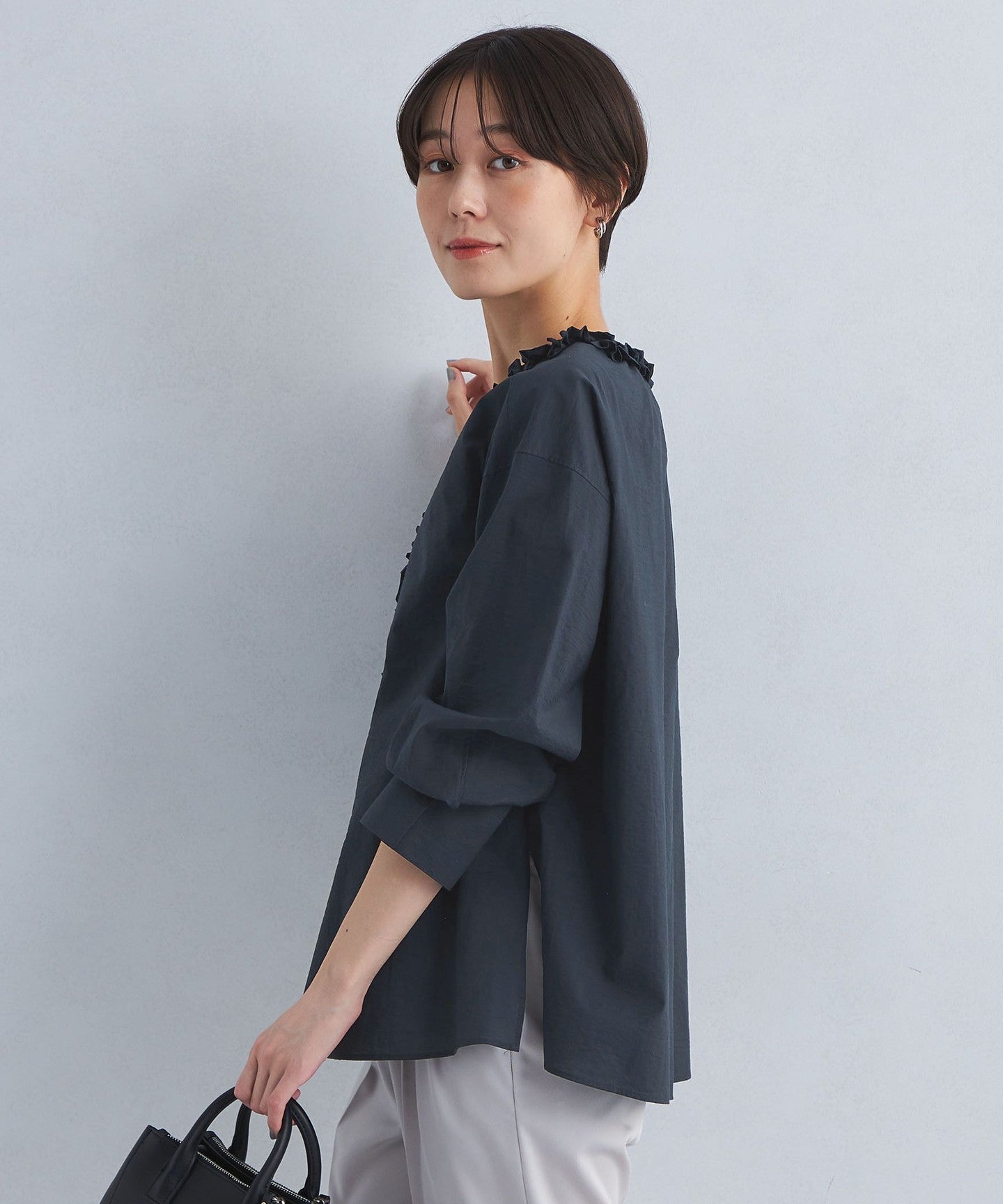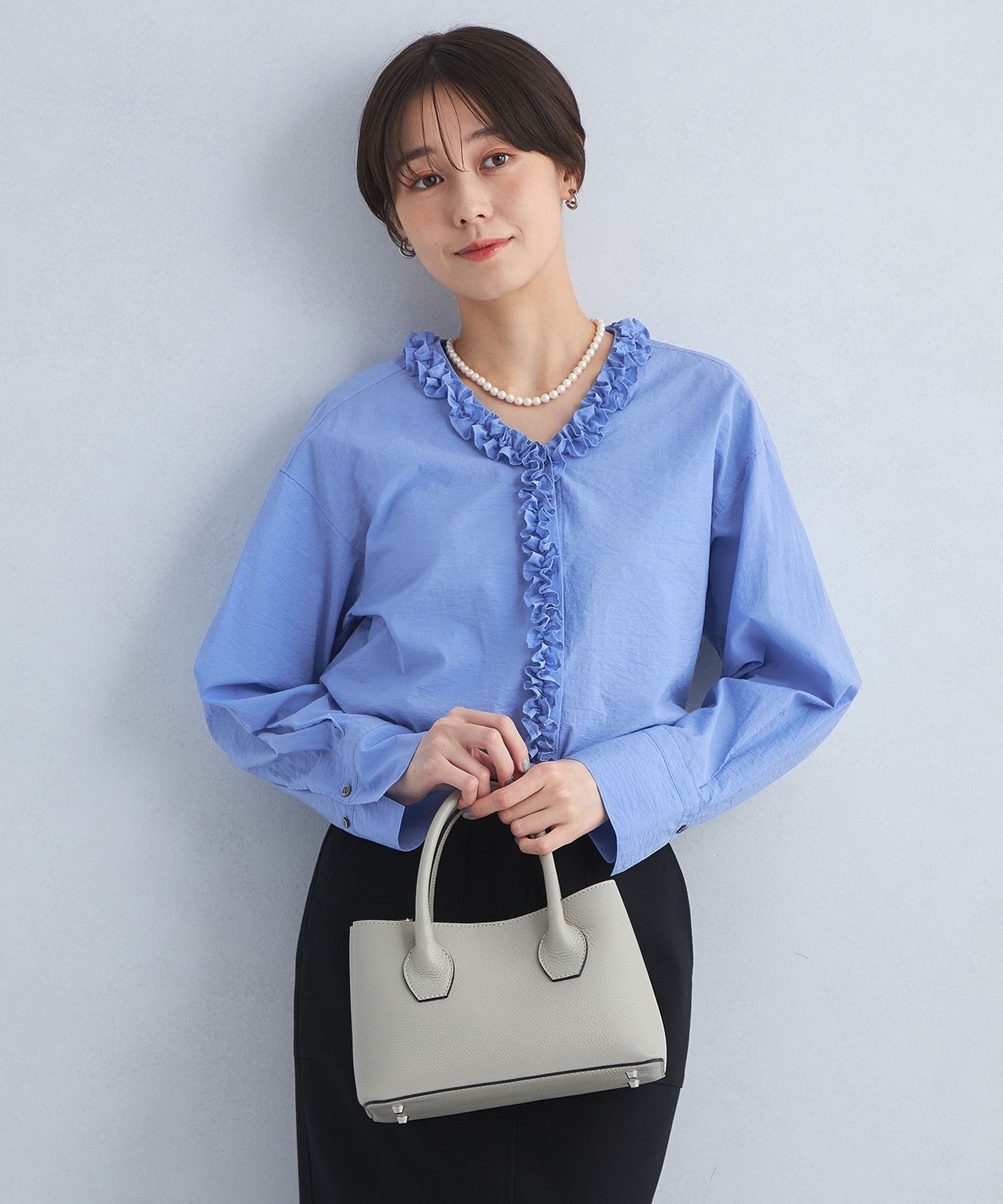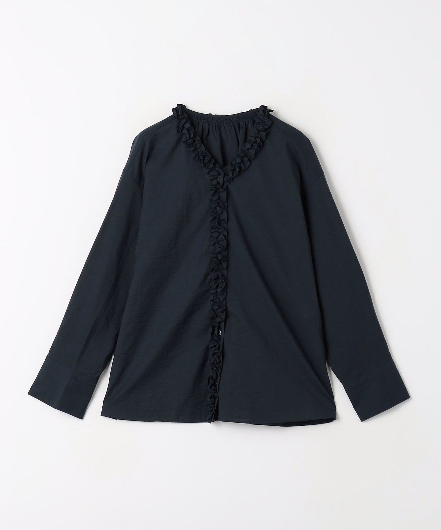 A one-piece blouse with an eye-catching frill design that looks great on its own!