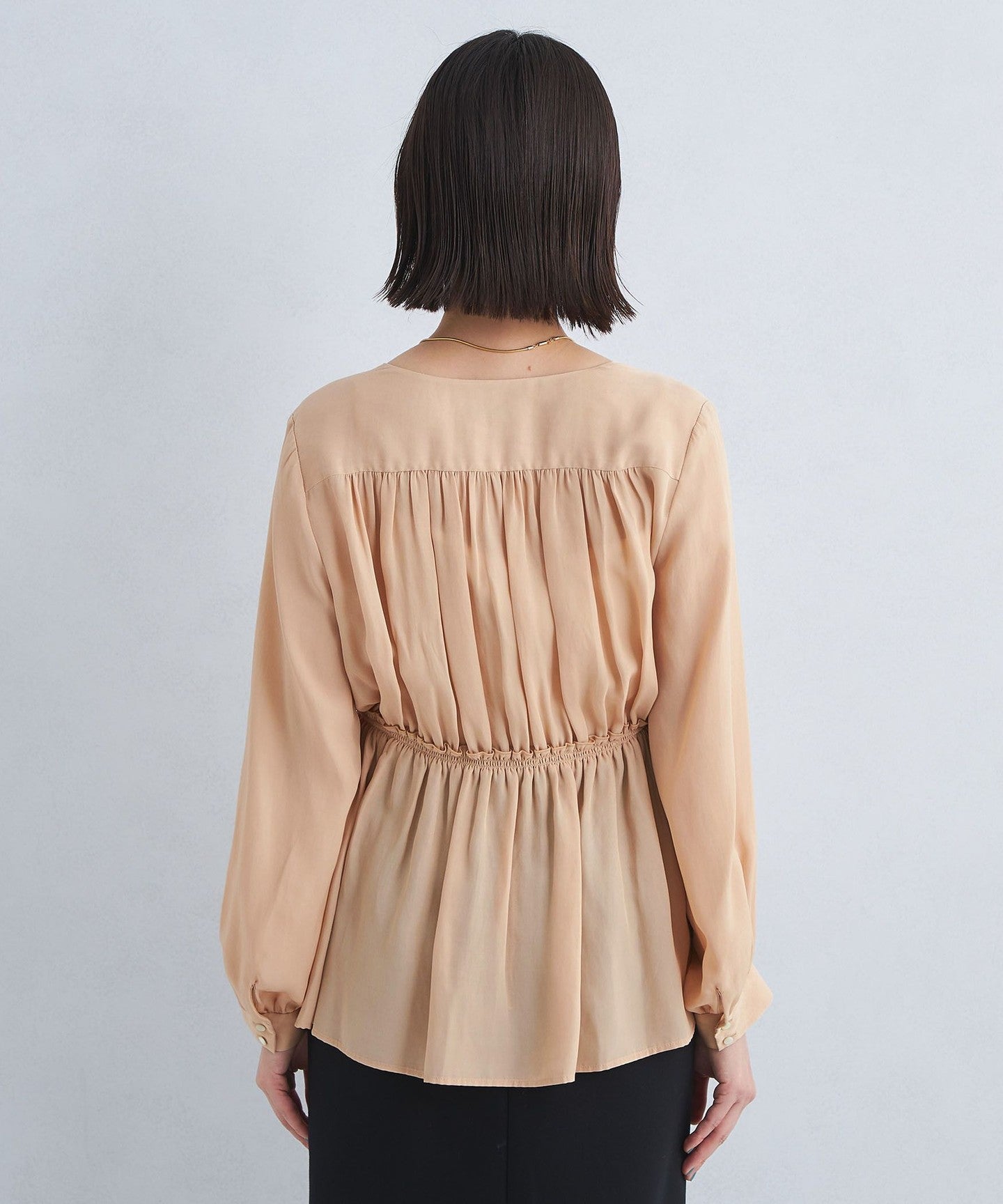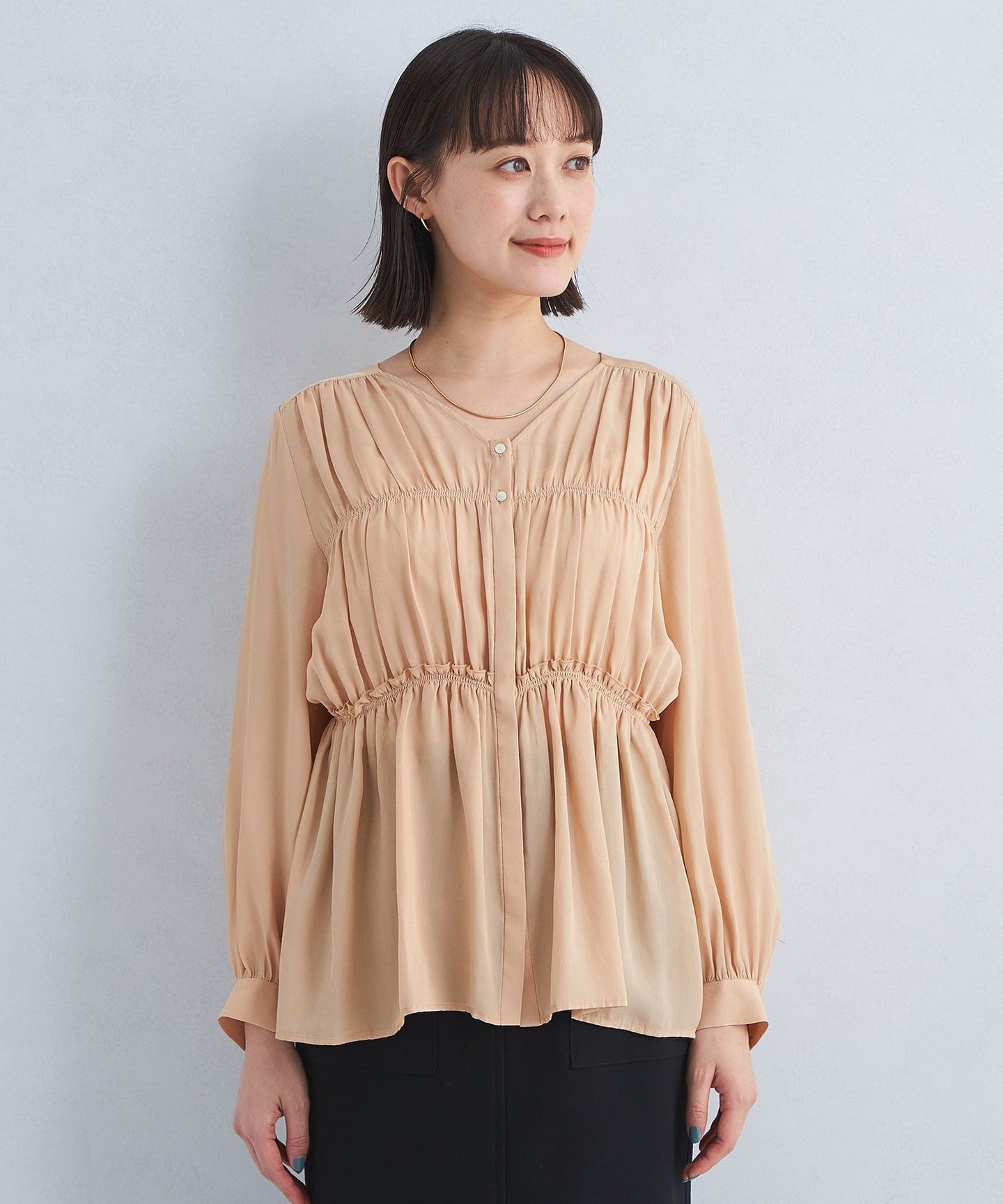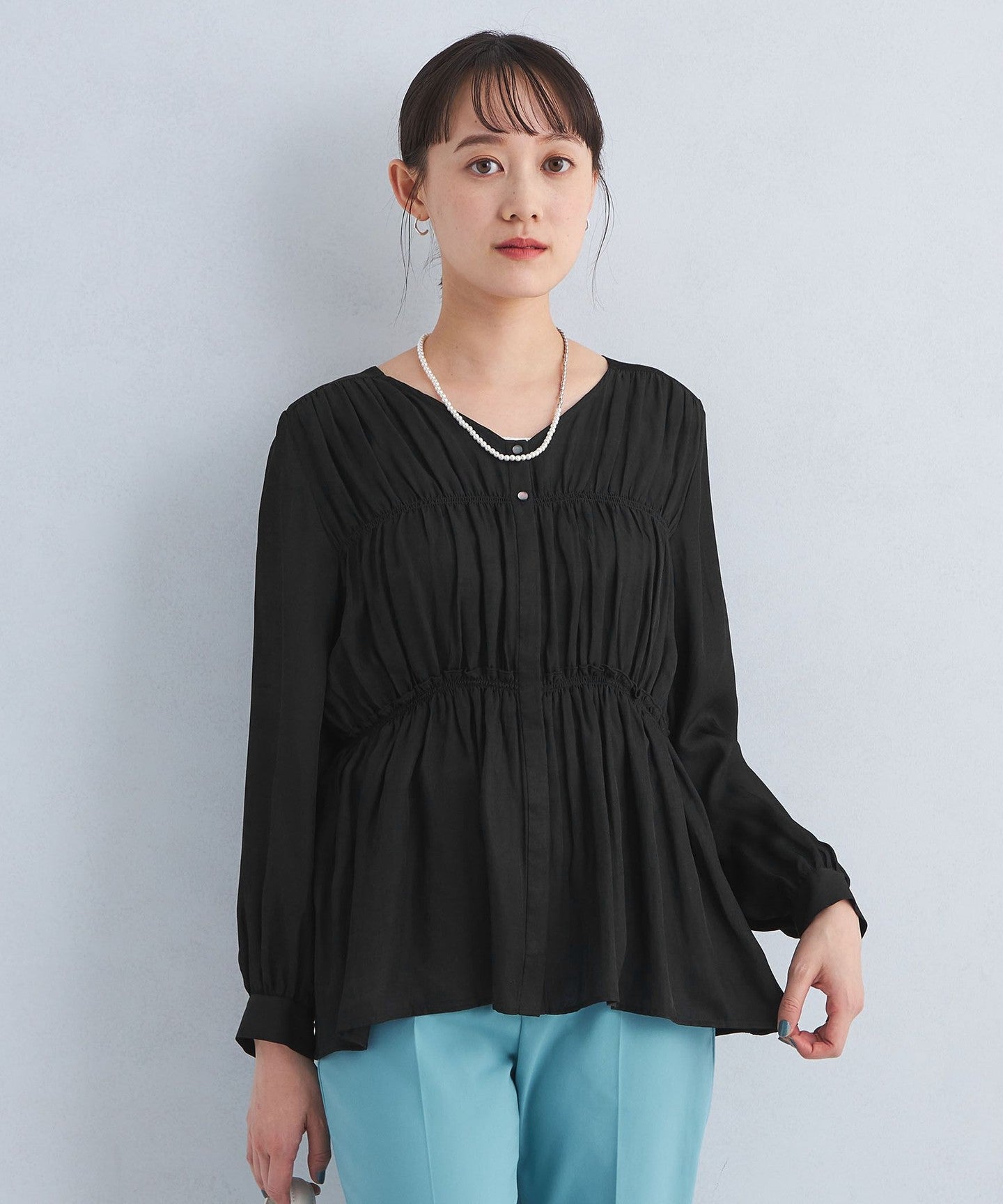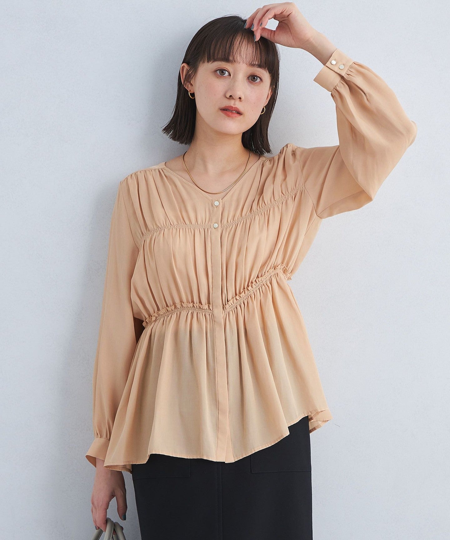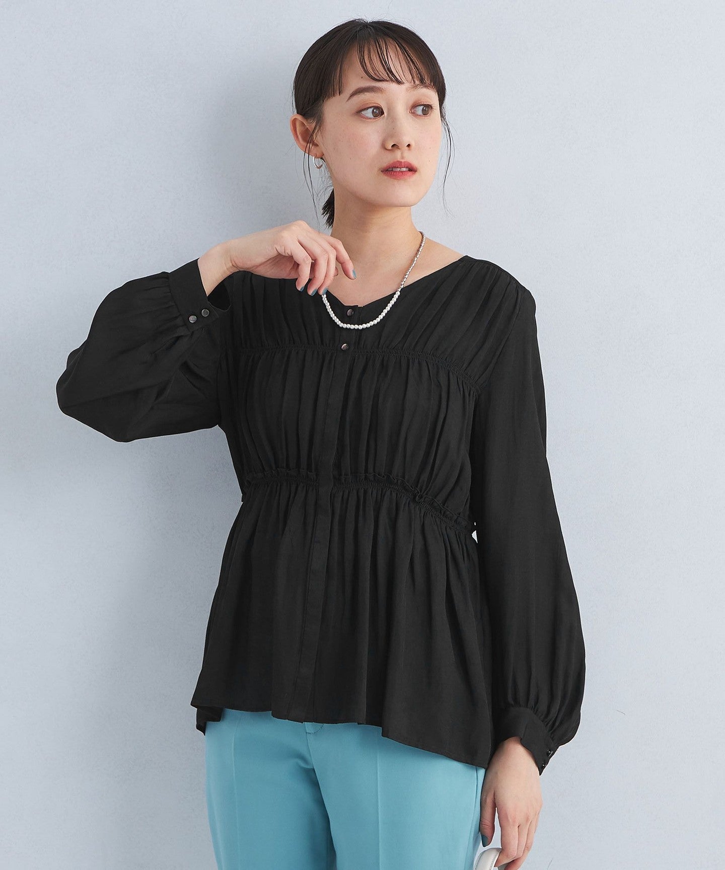 A blouse with a shirred design that looks great on its own