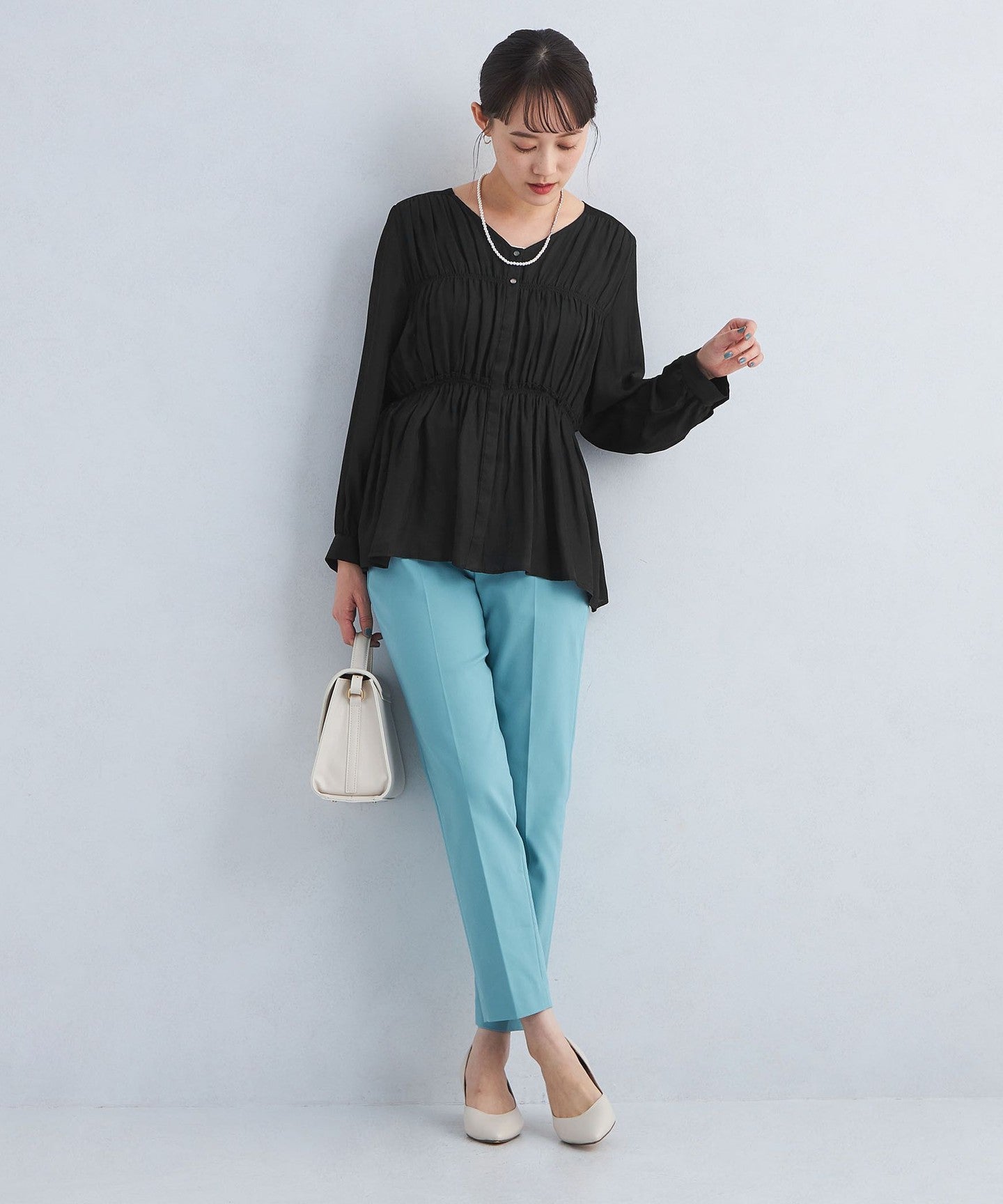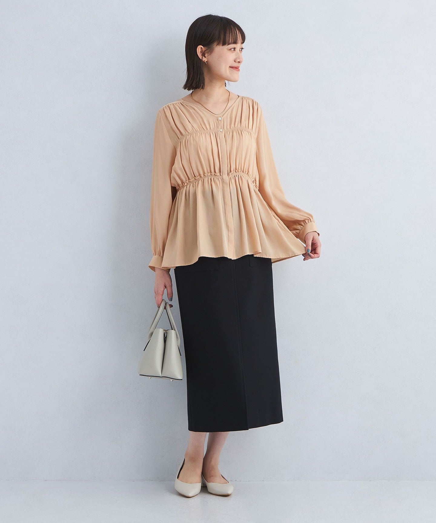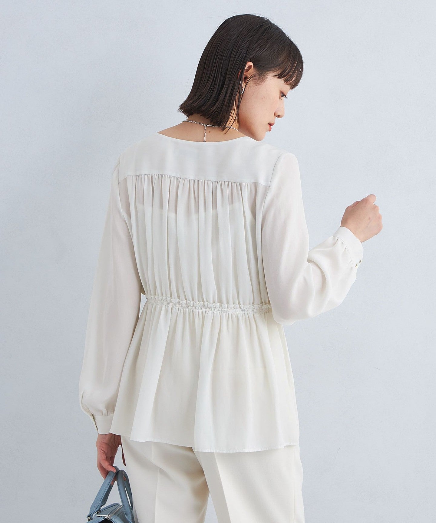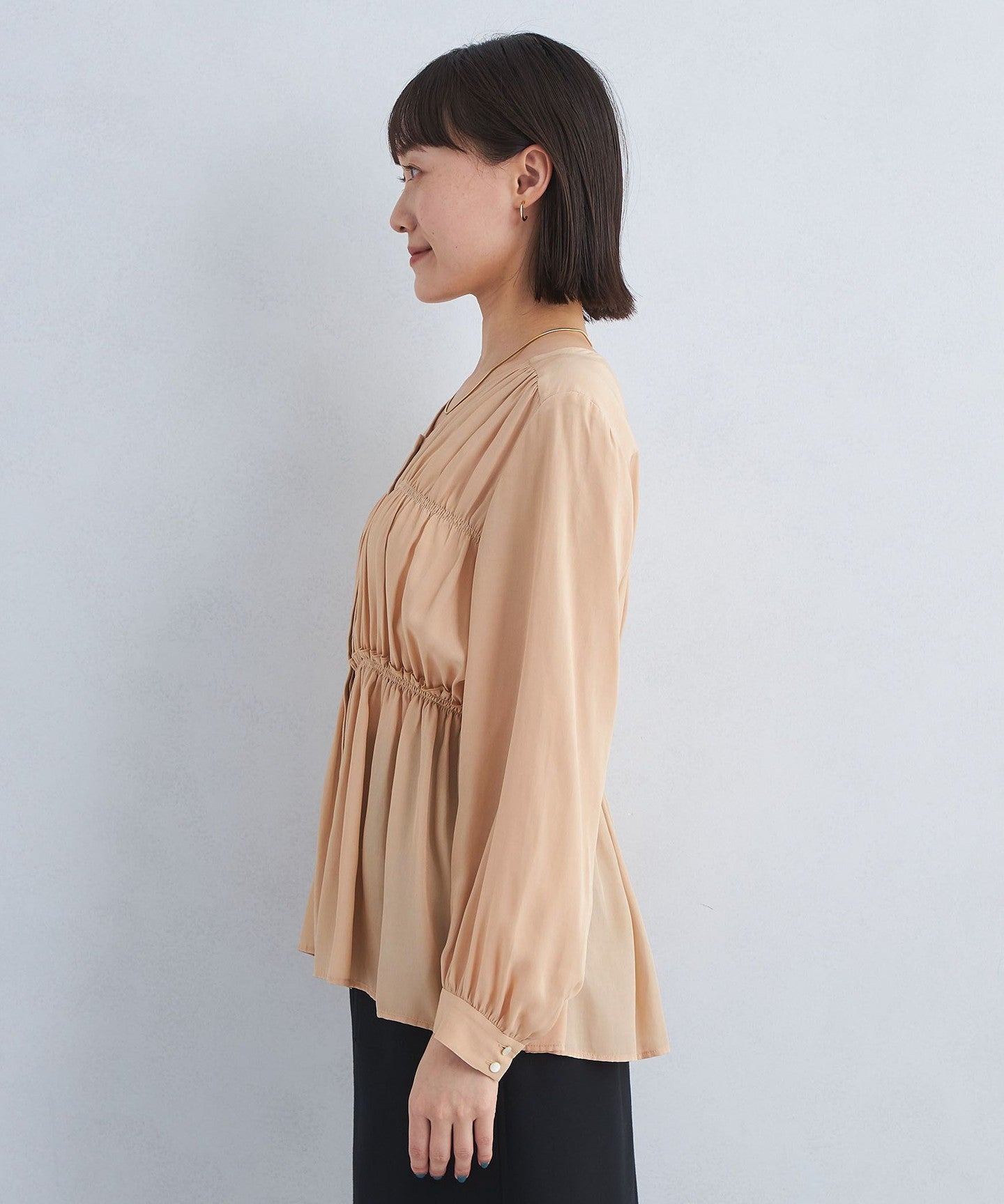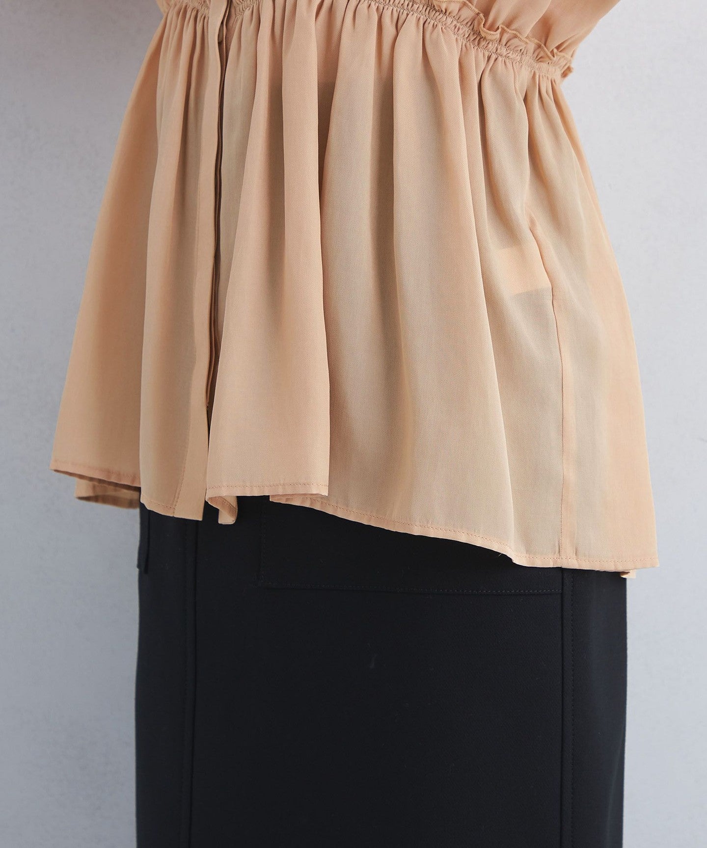 A blouse with a shirred design that looks great on its own