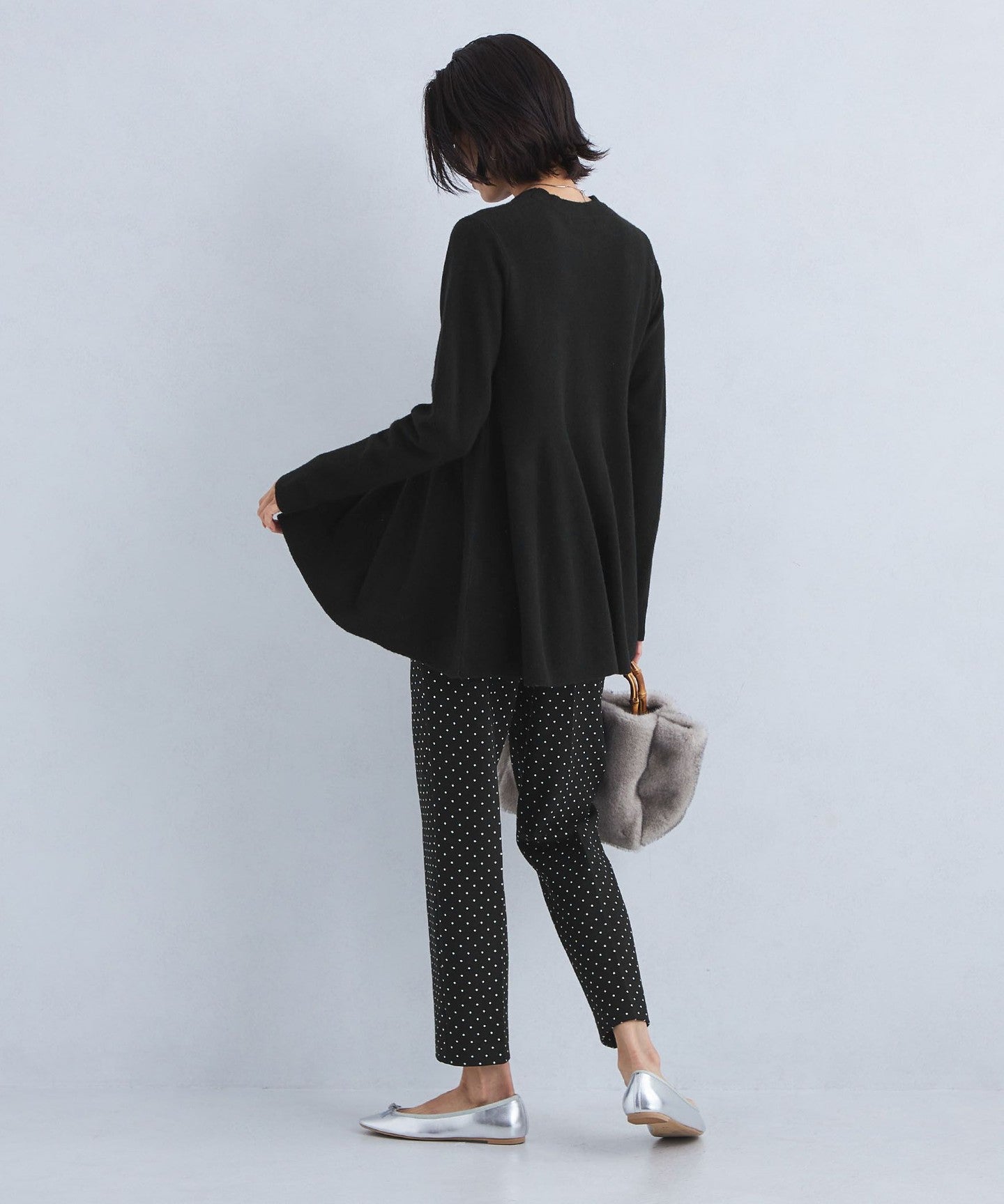 A warm peplum knit with a fluffy, light texture.