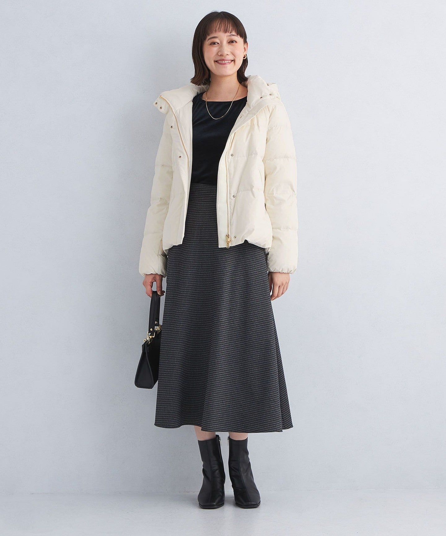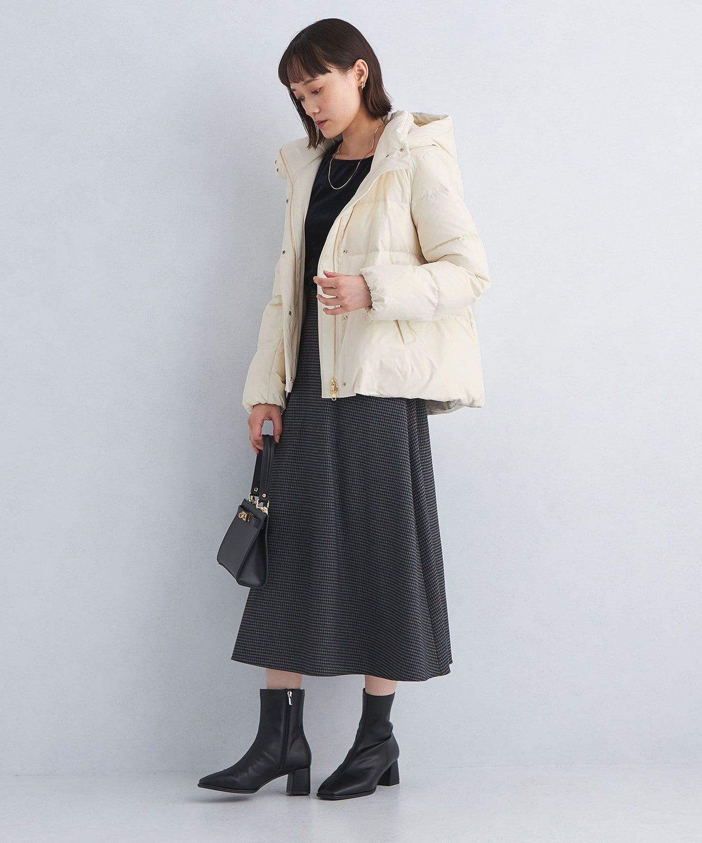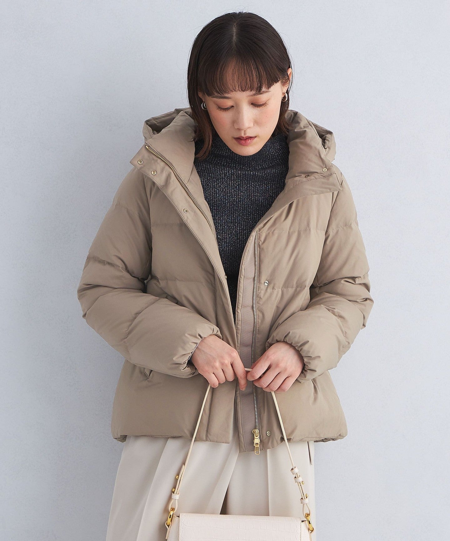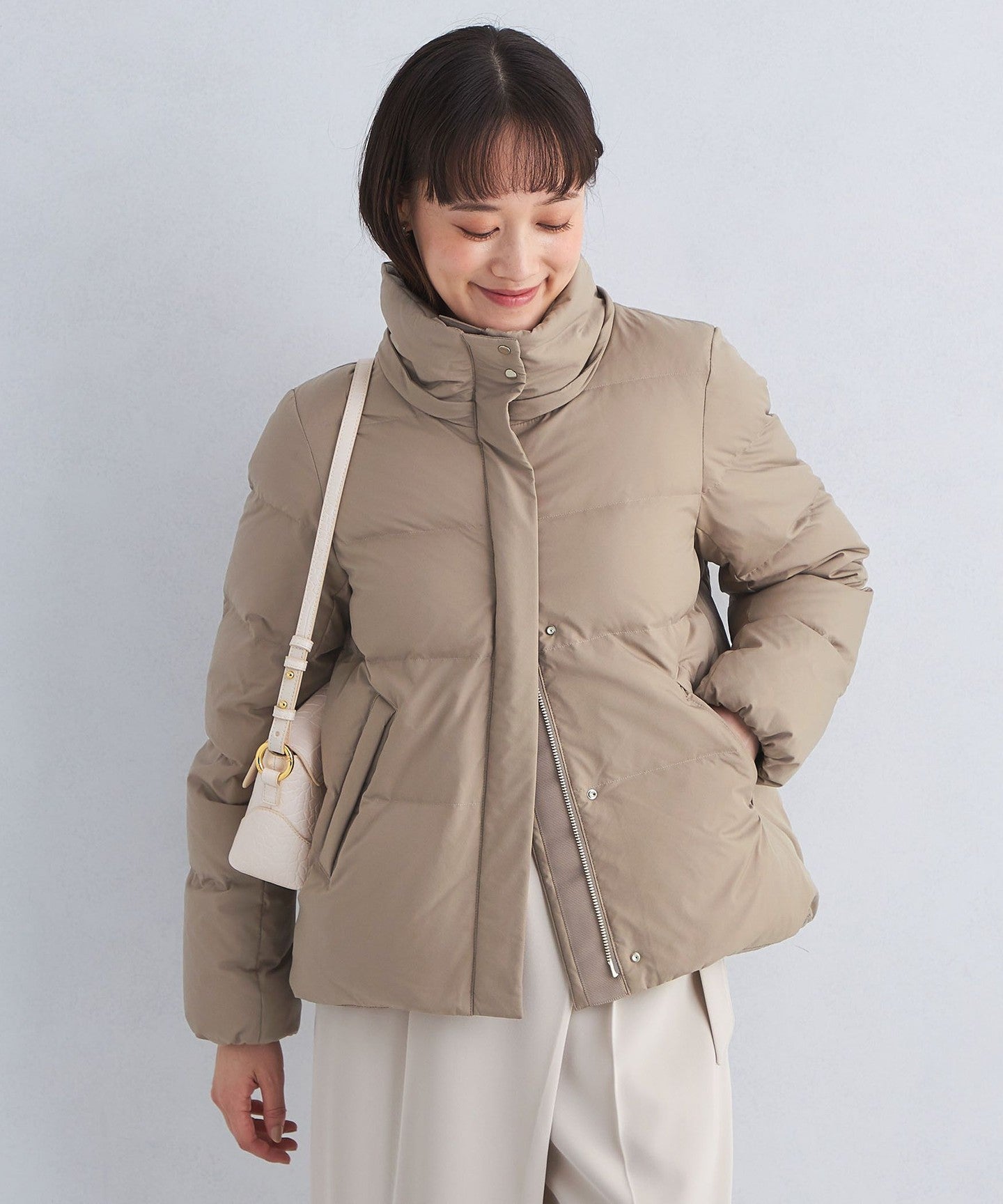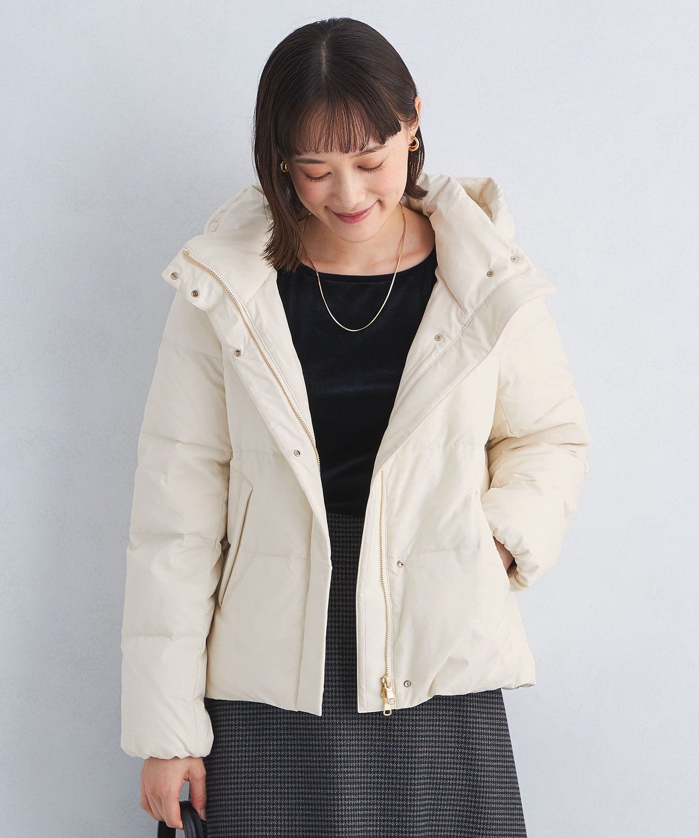 A versatile short down jacket that can be worn with any bottoms.