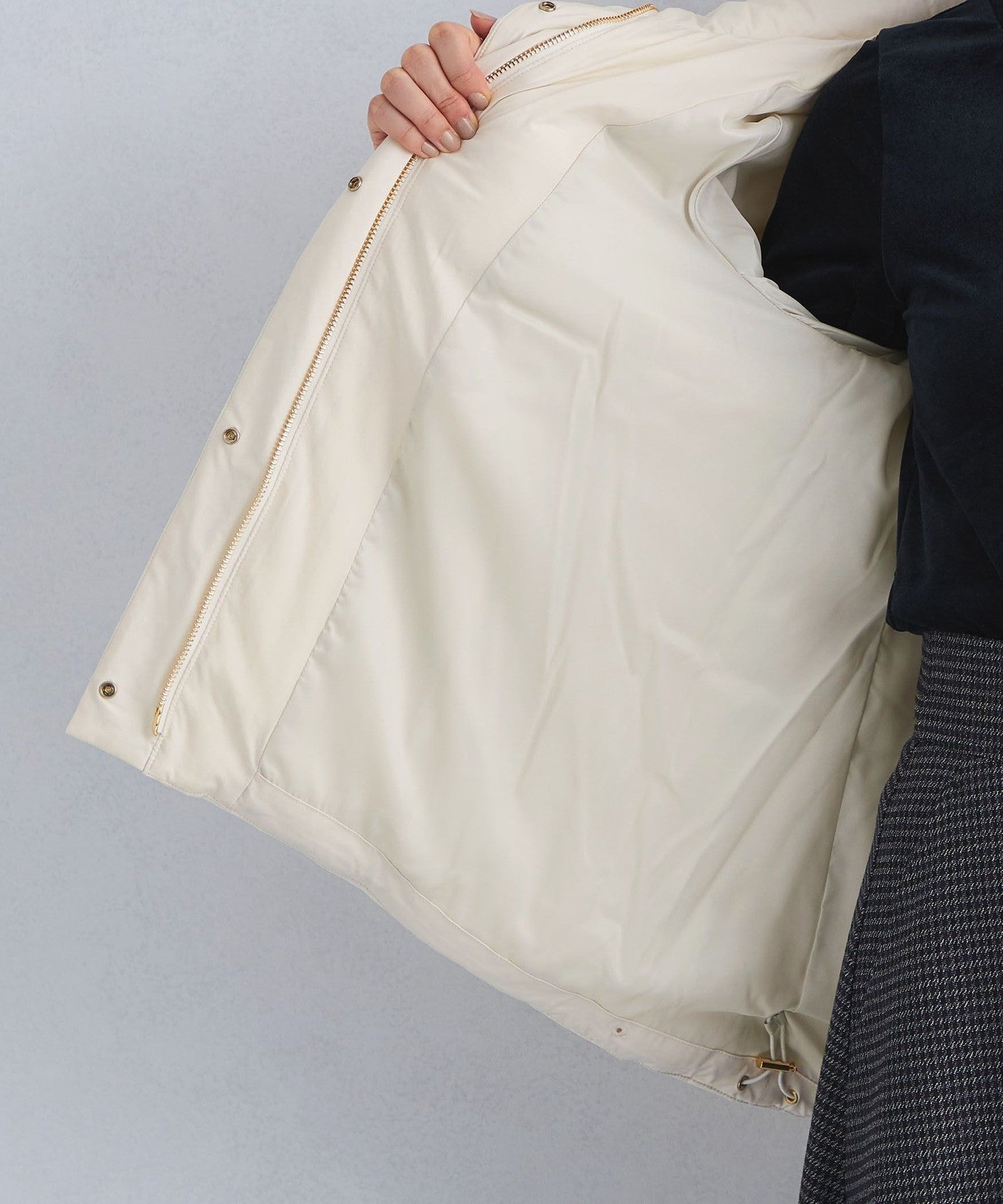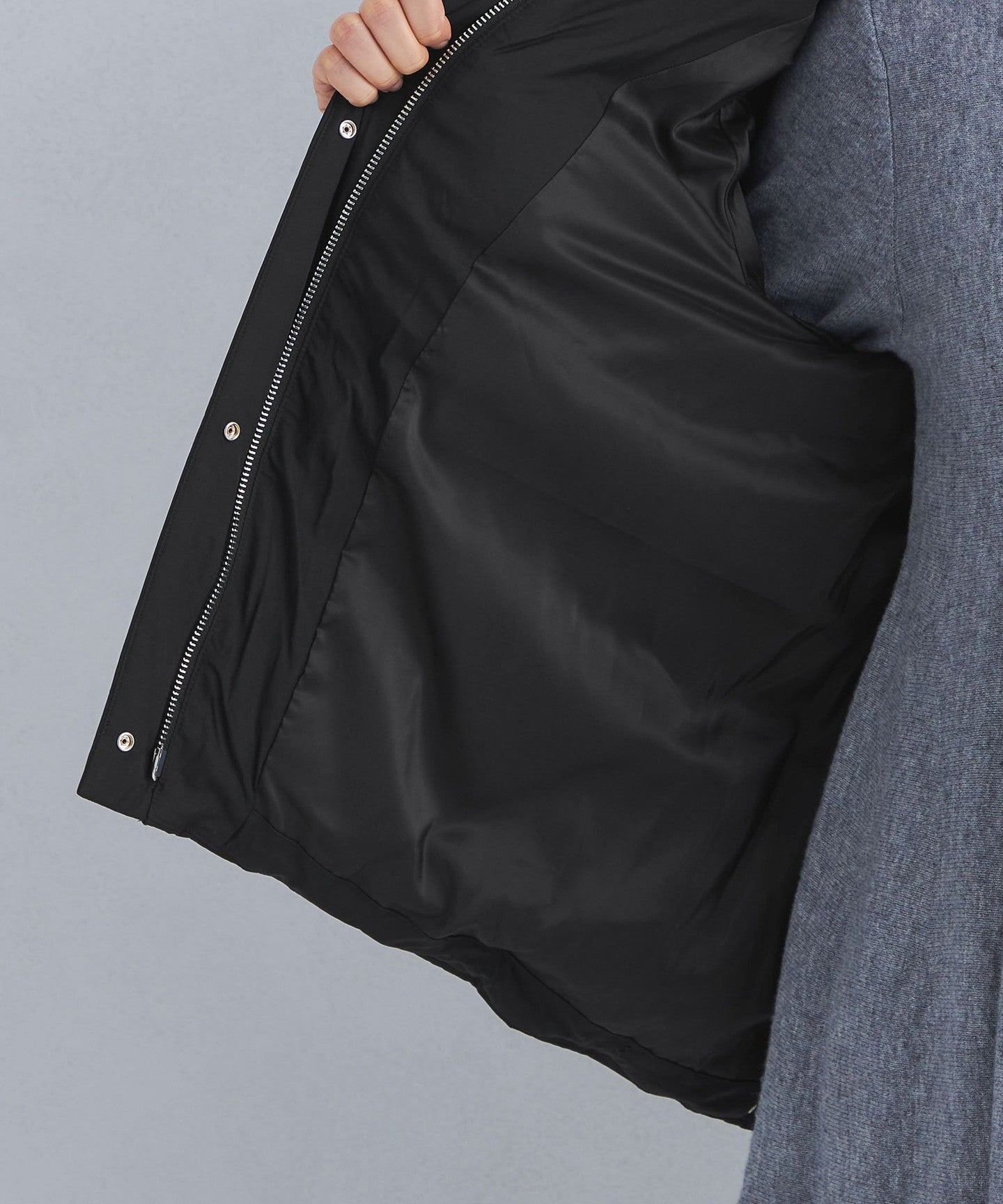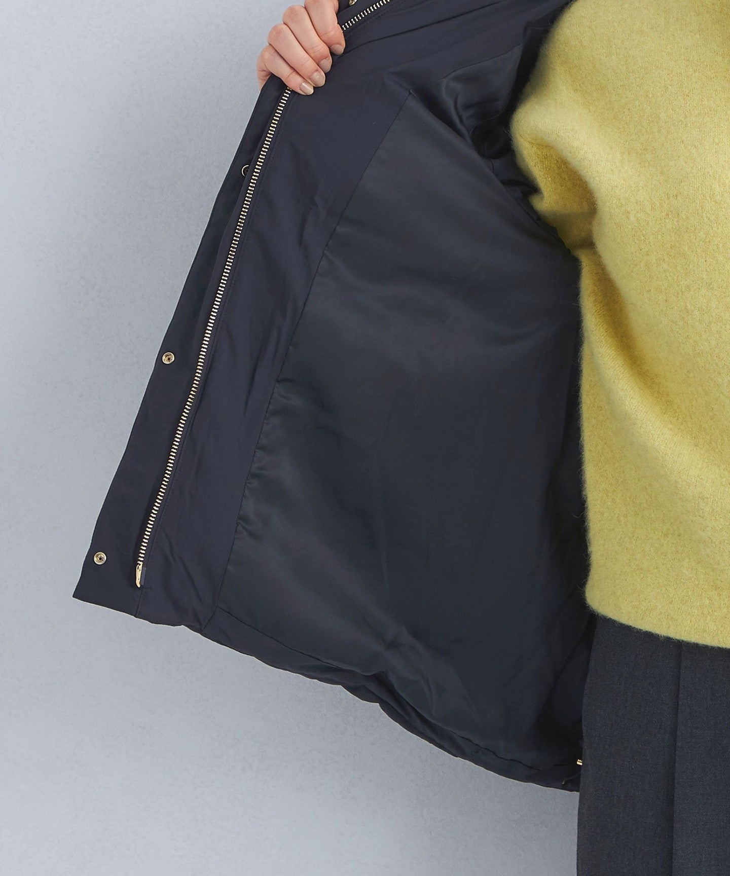 We paid particular attention to the height of the stand collar and the volume of the hood to create a garment that looks great.