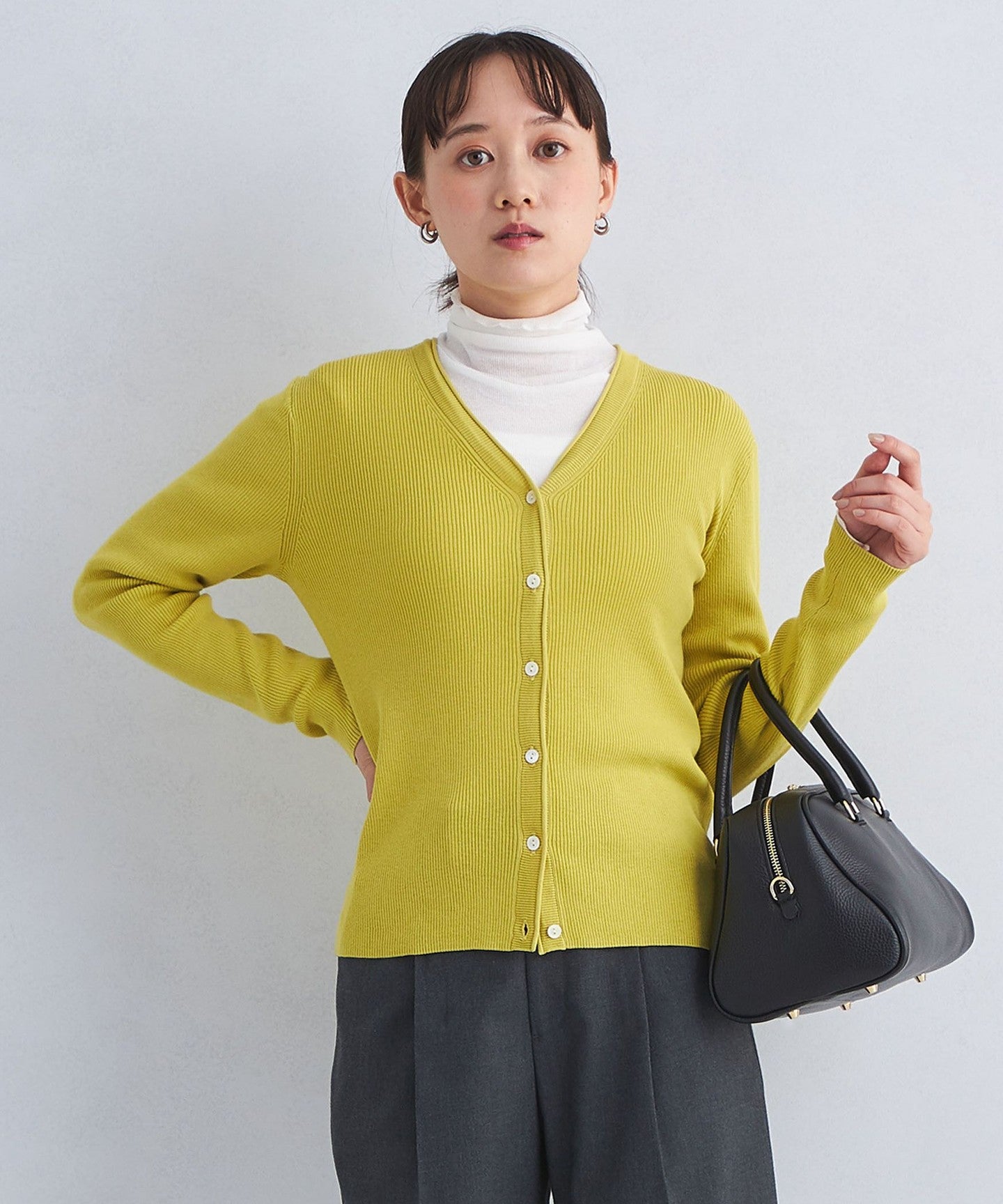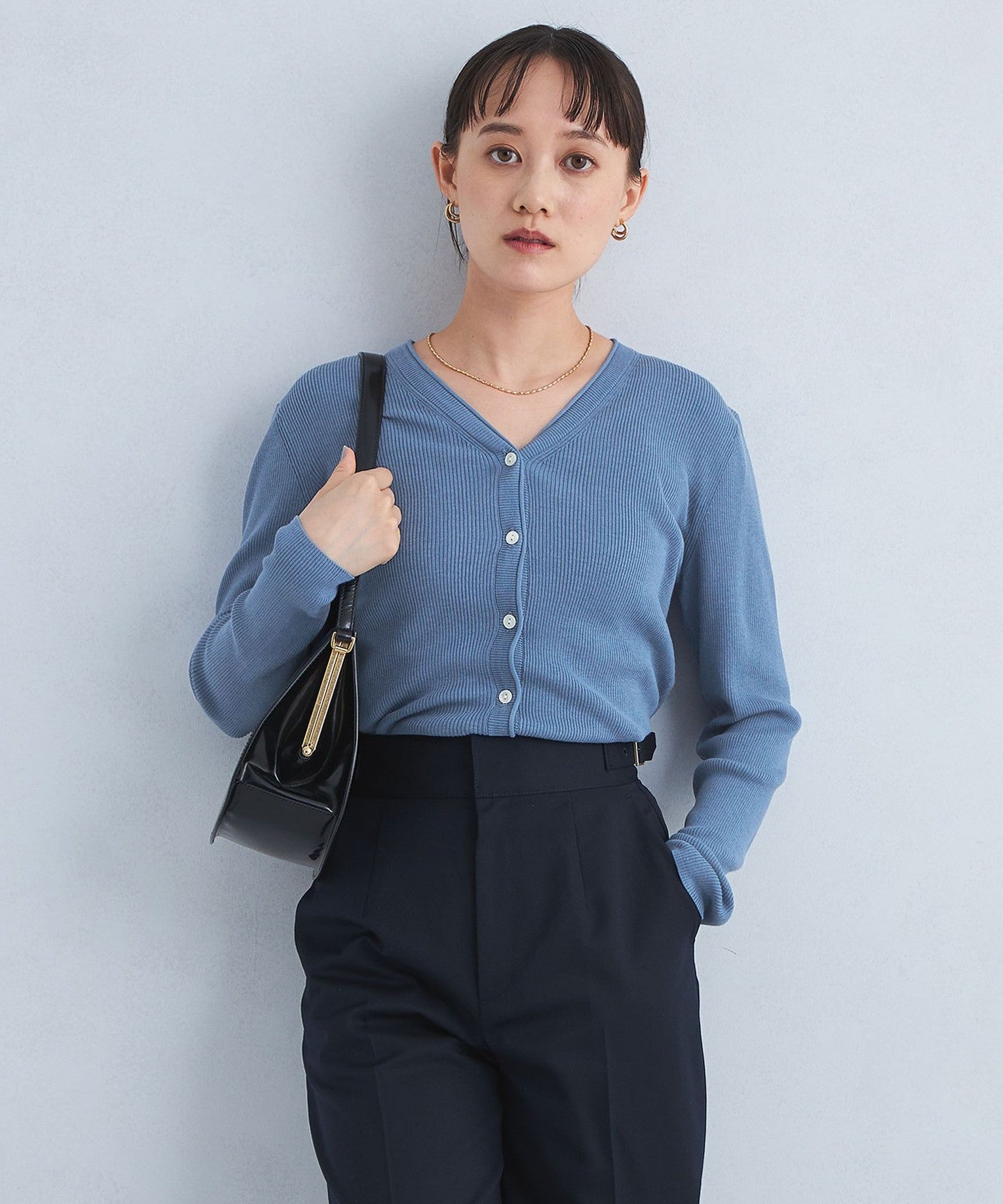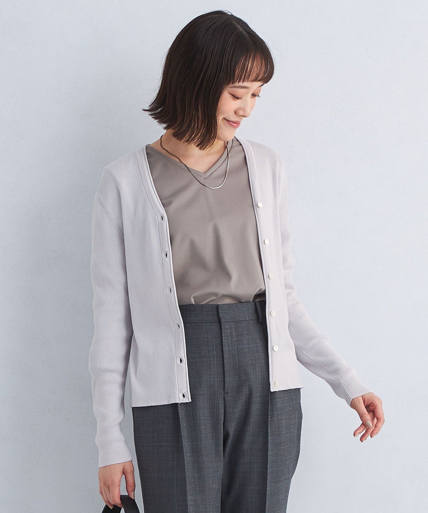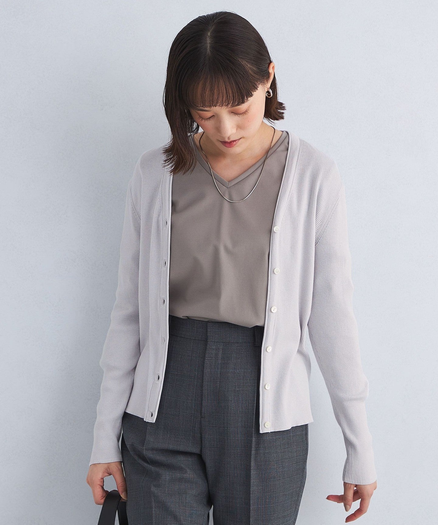 A versatile V-neck cardigan with a simple design that can be worn in many different ways.