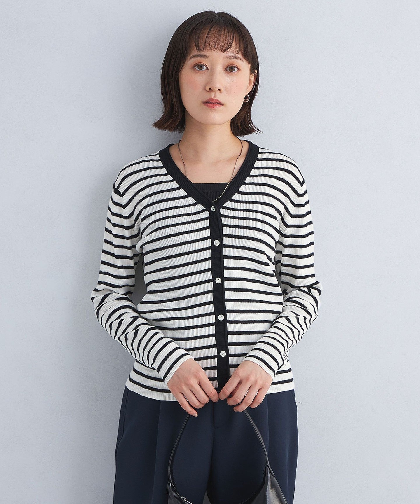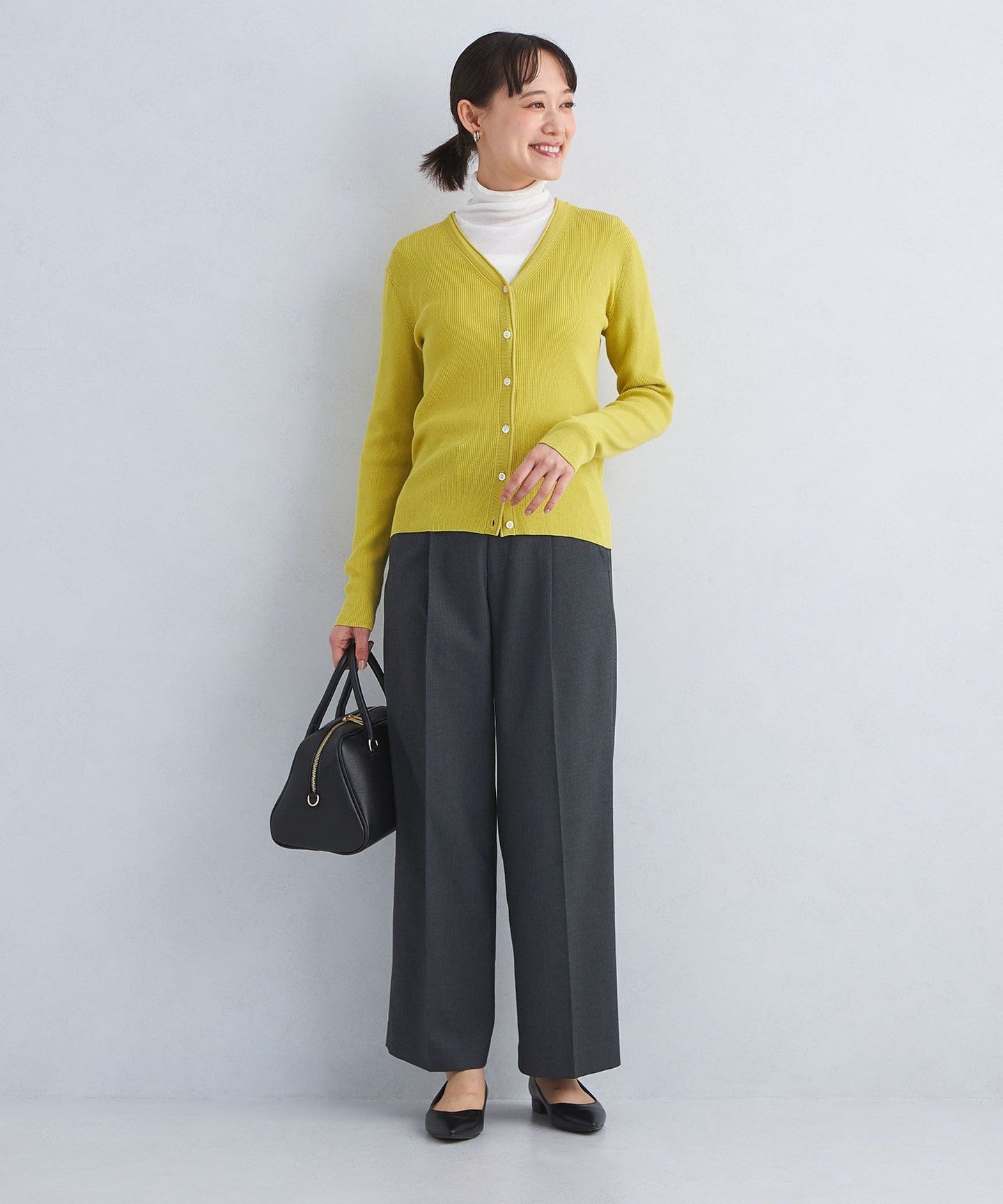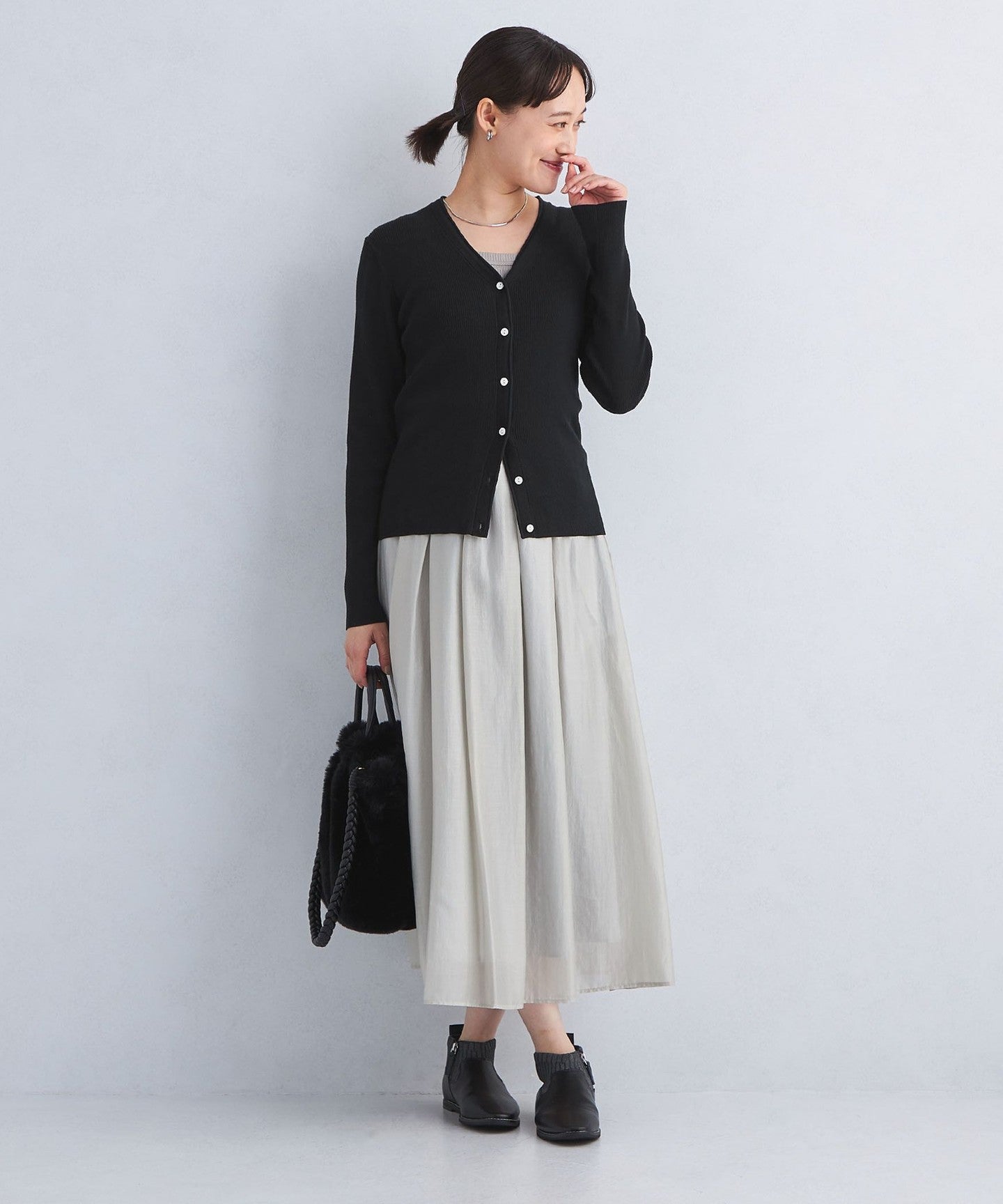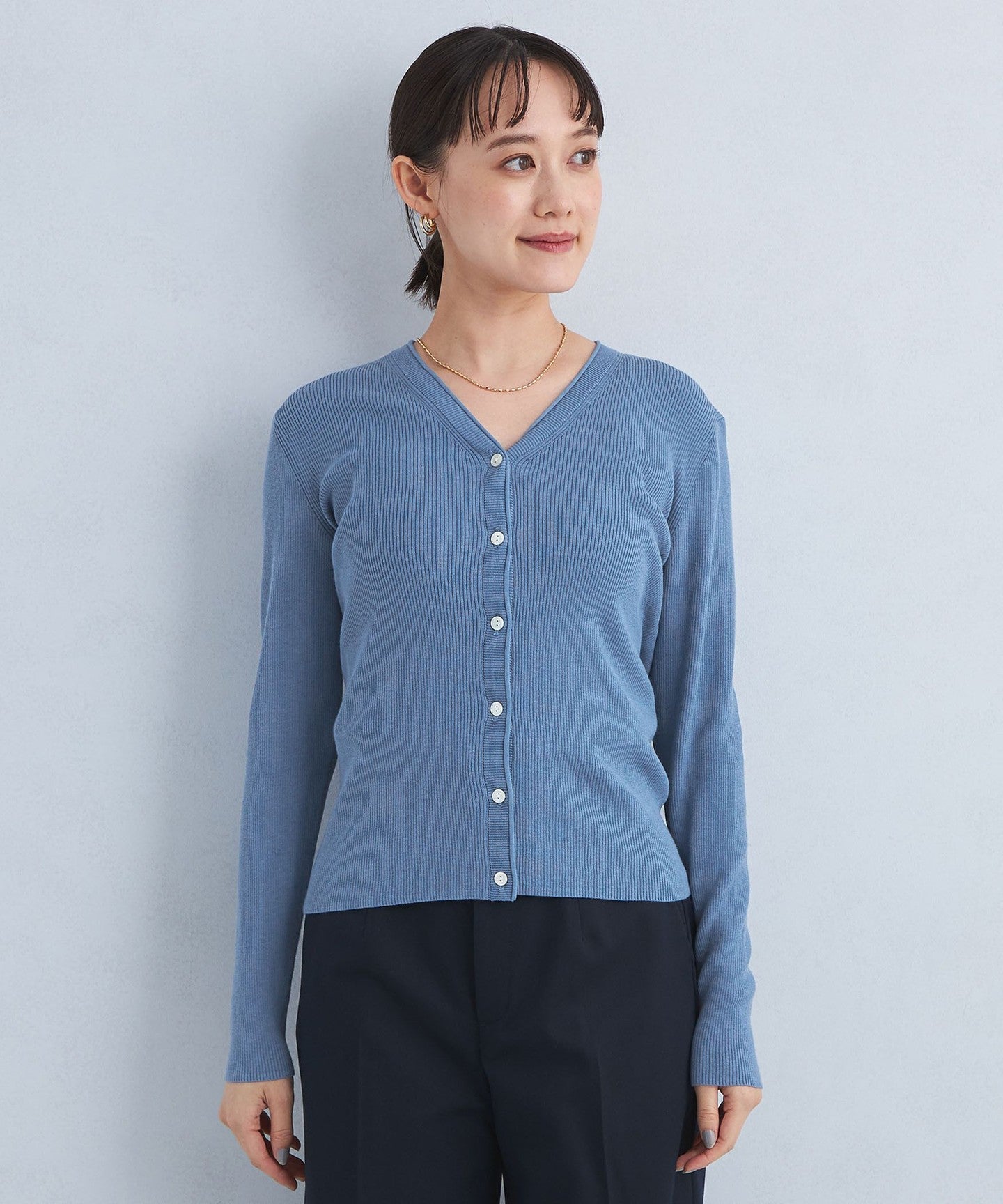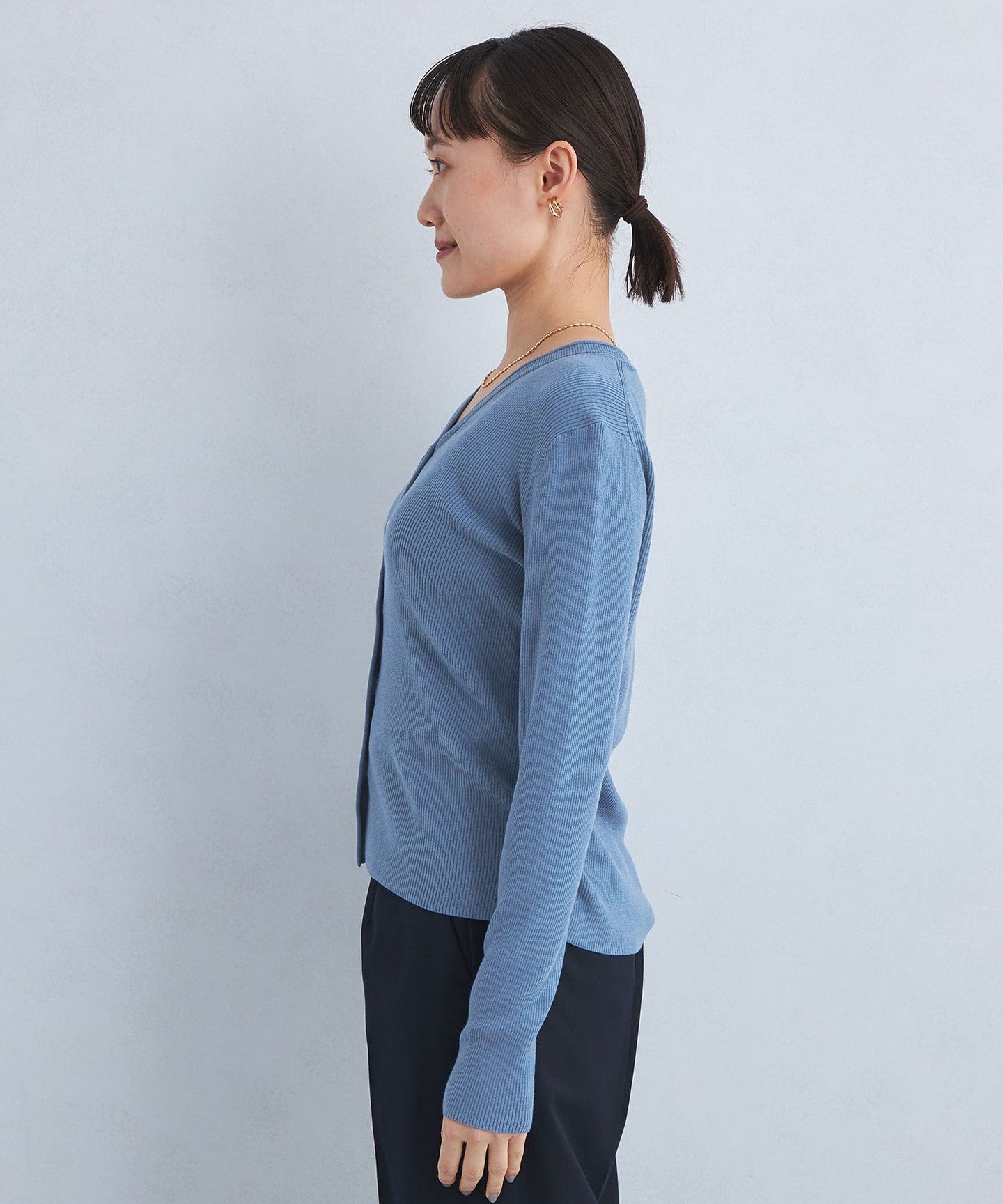 A versatile V-neck cardigan with a simple design that can be worn in many different ways.