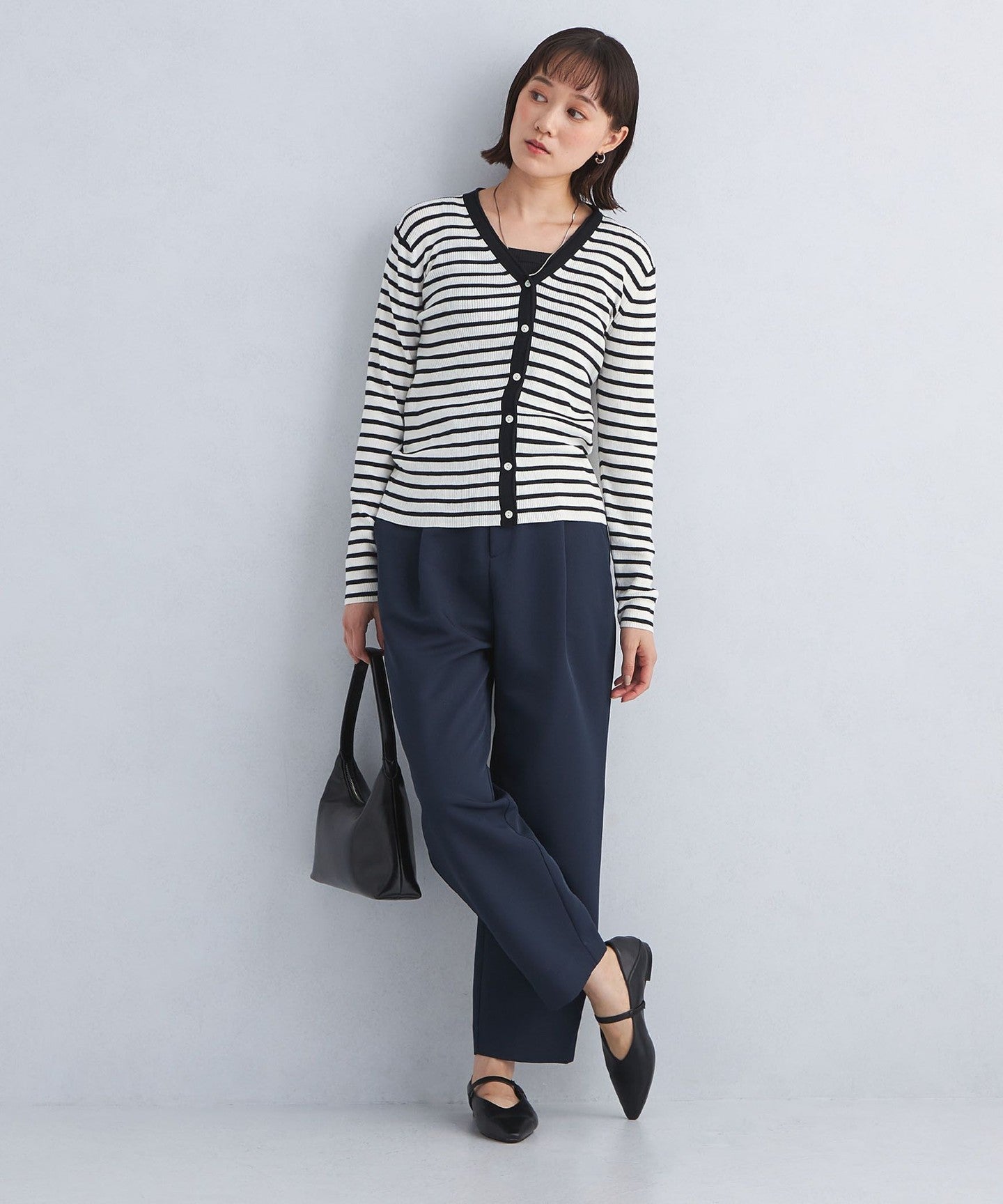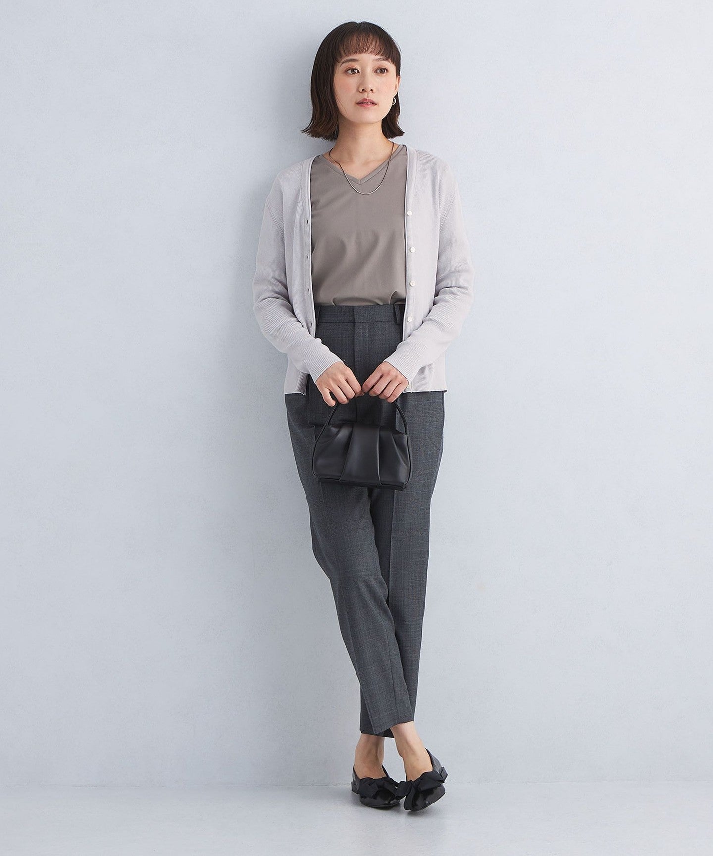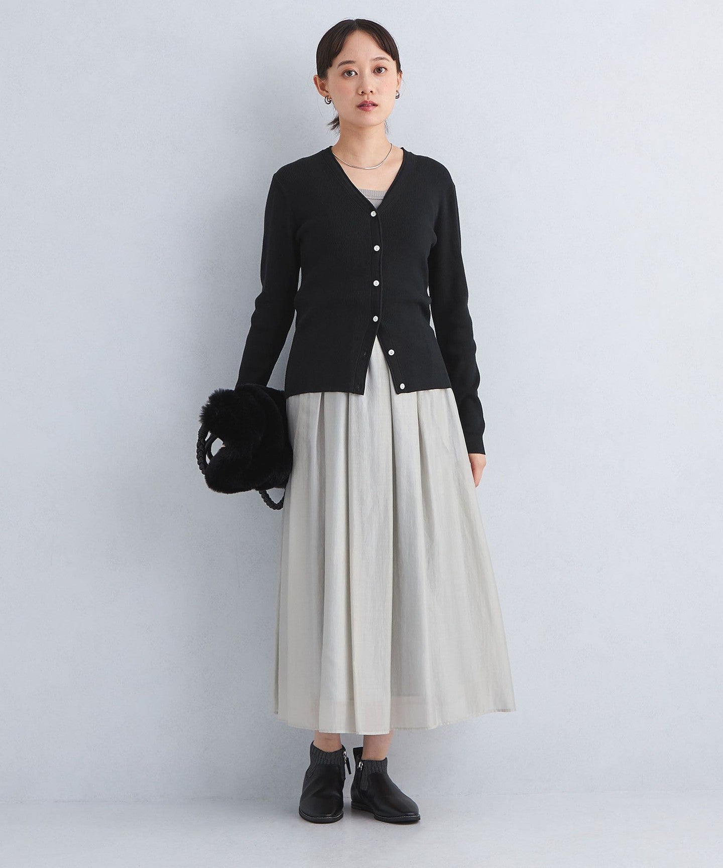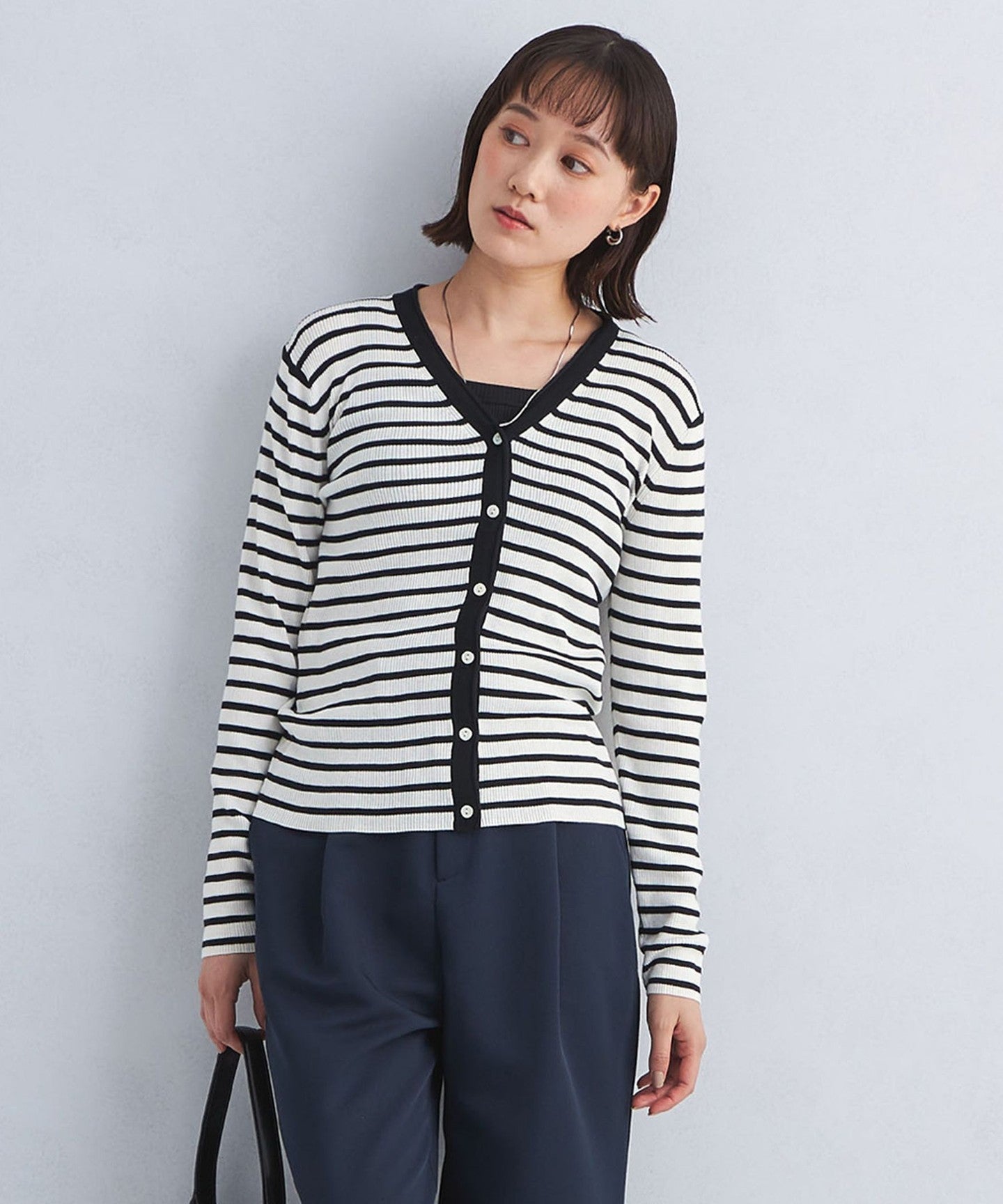 A versatile V-neck cardigan with a simple design that can be worn in many different ways.