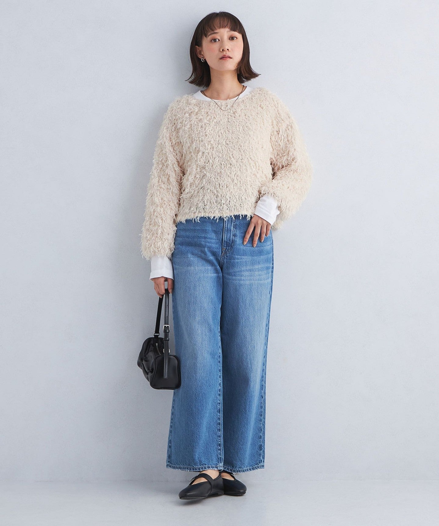 The cropped length makes it a great match for voluminous bottoms such as wide pants.