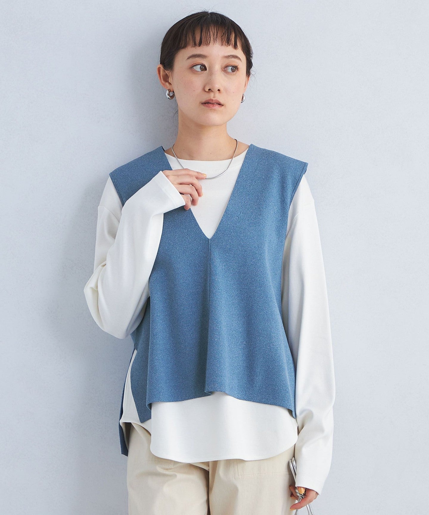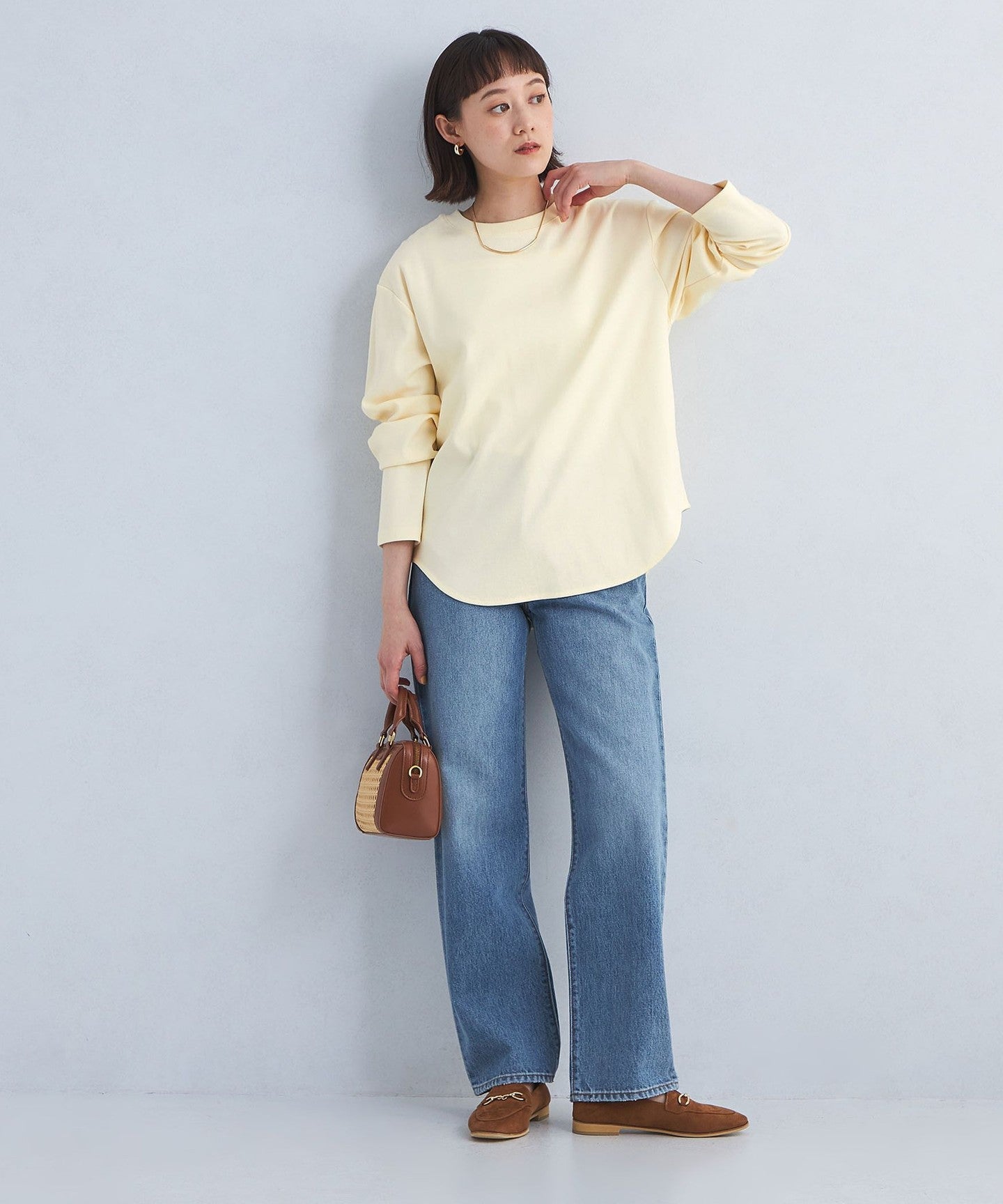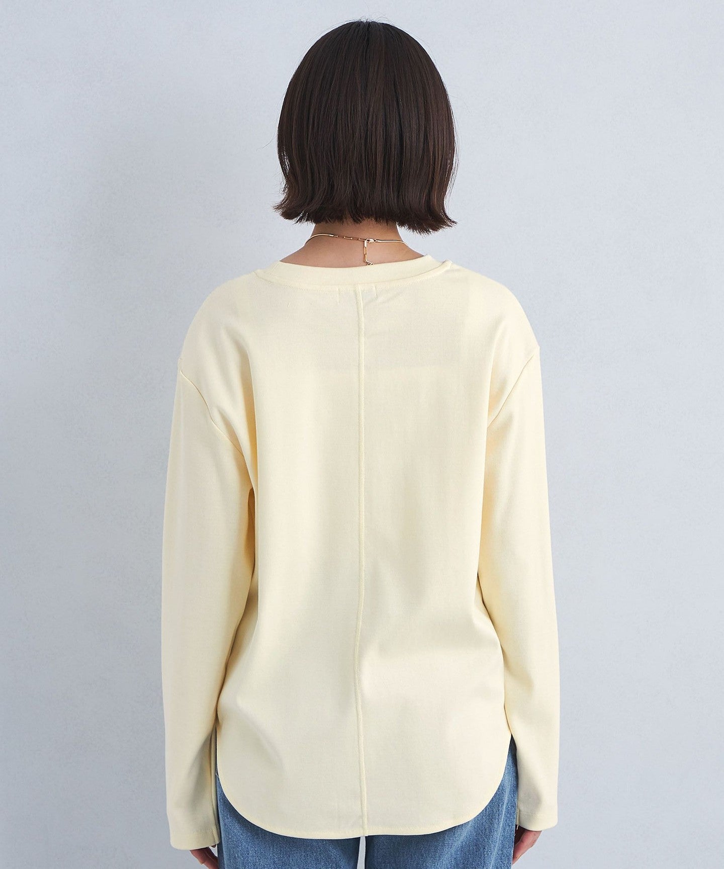 This pullover has a sophisticated round hem design that makes it easy to wear on its own.