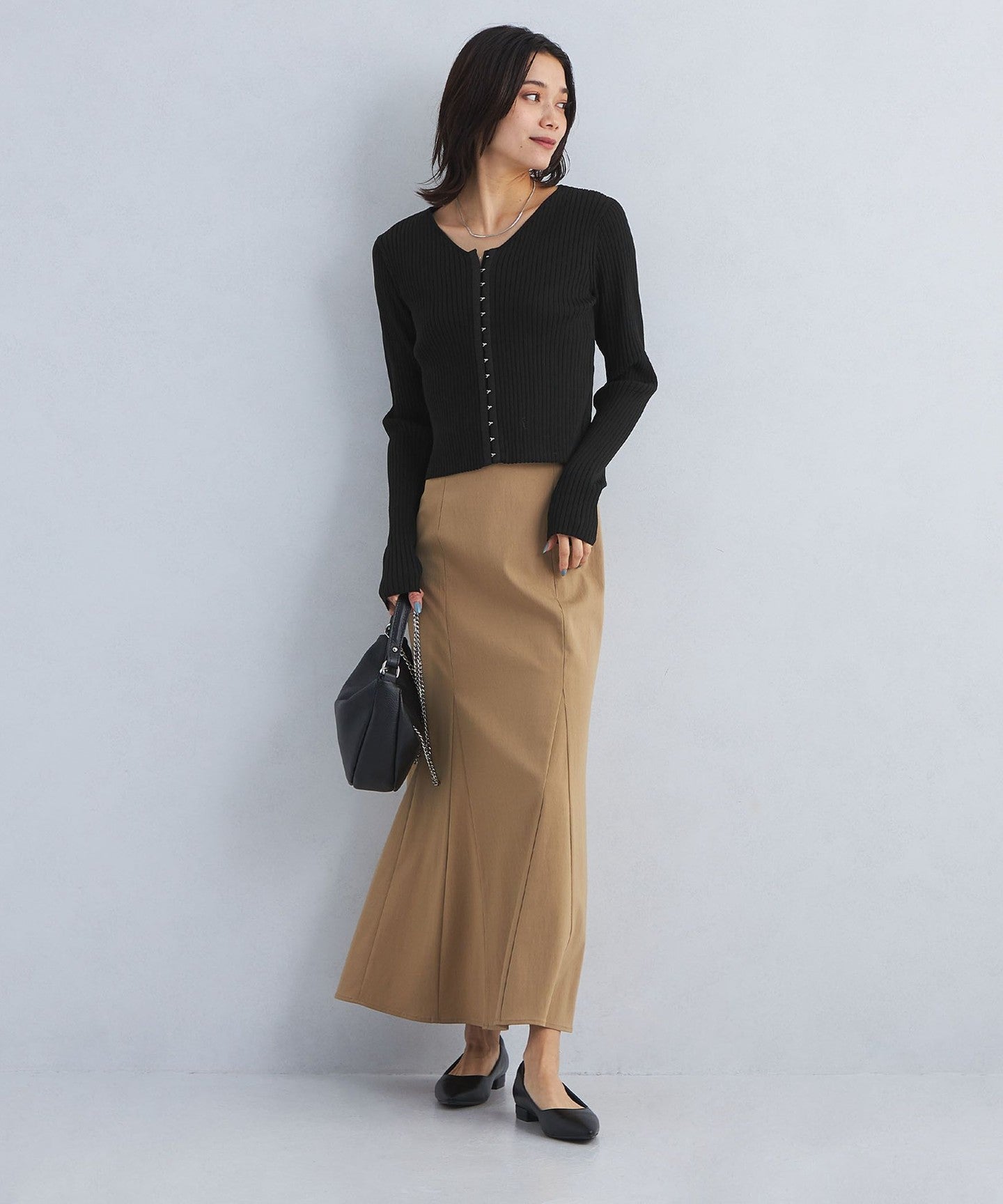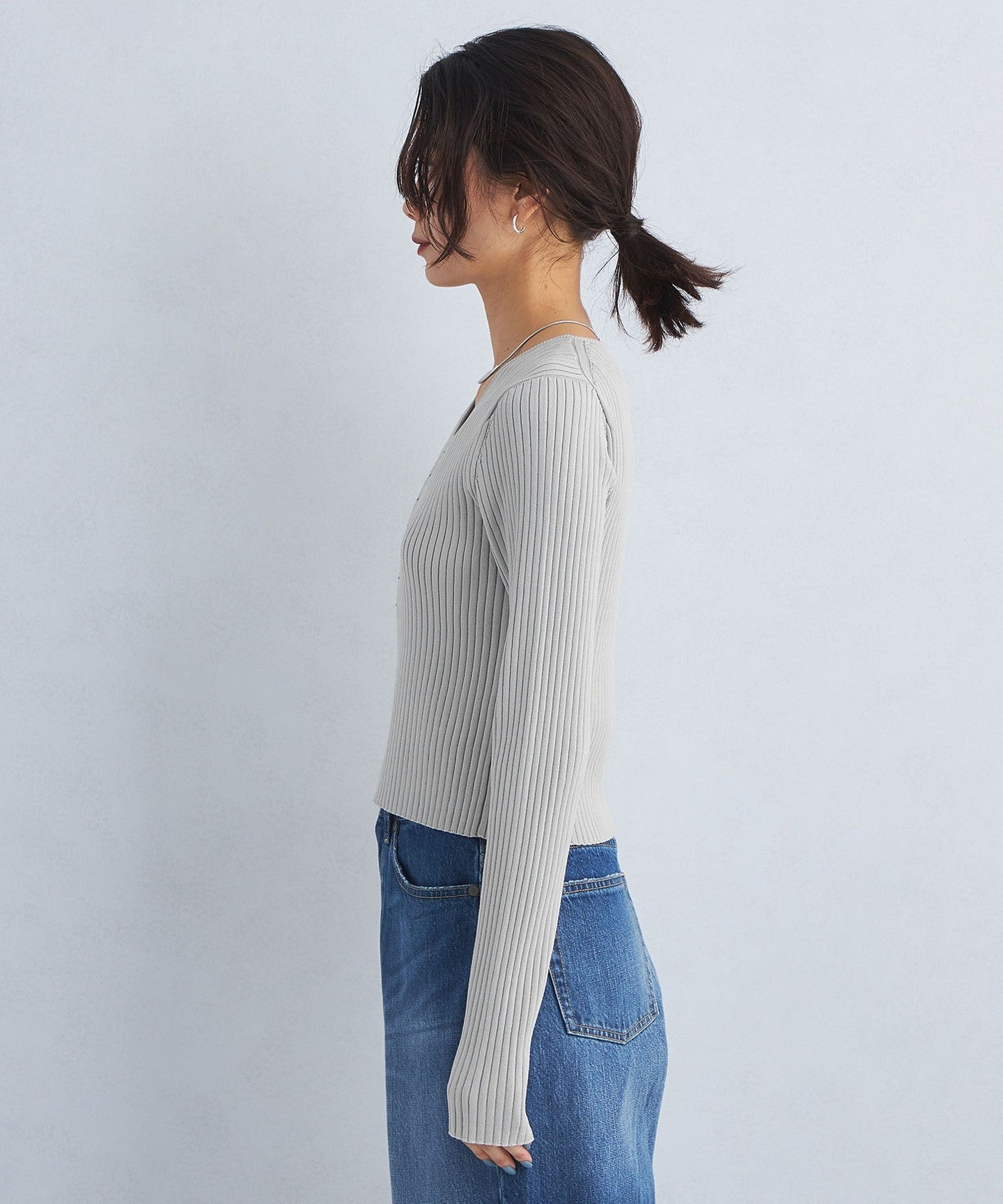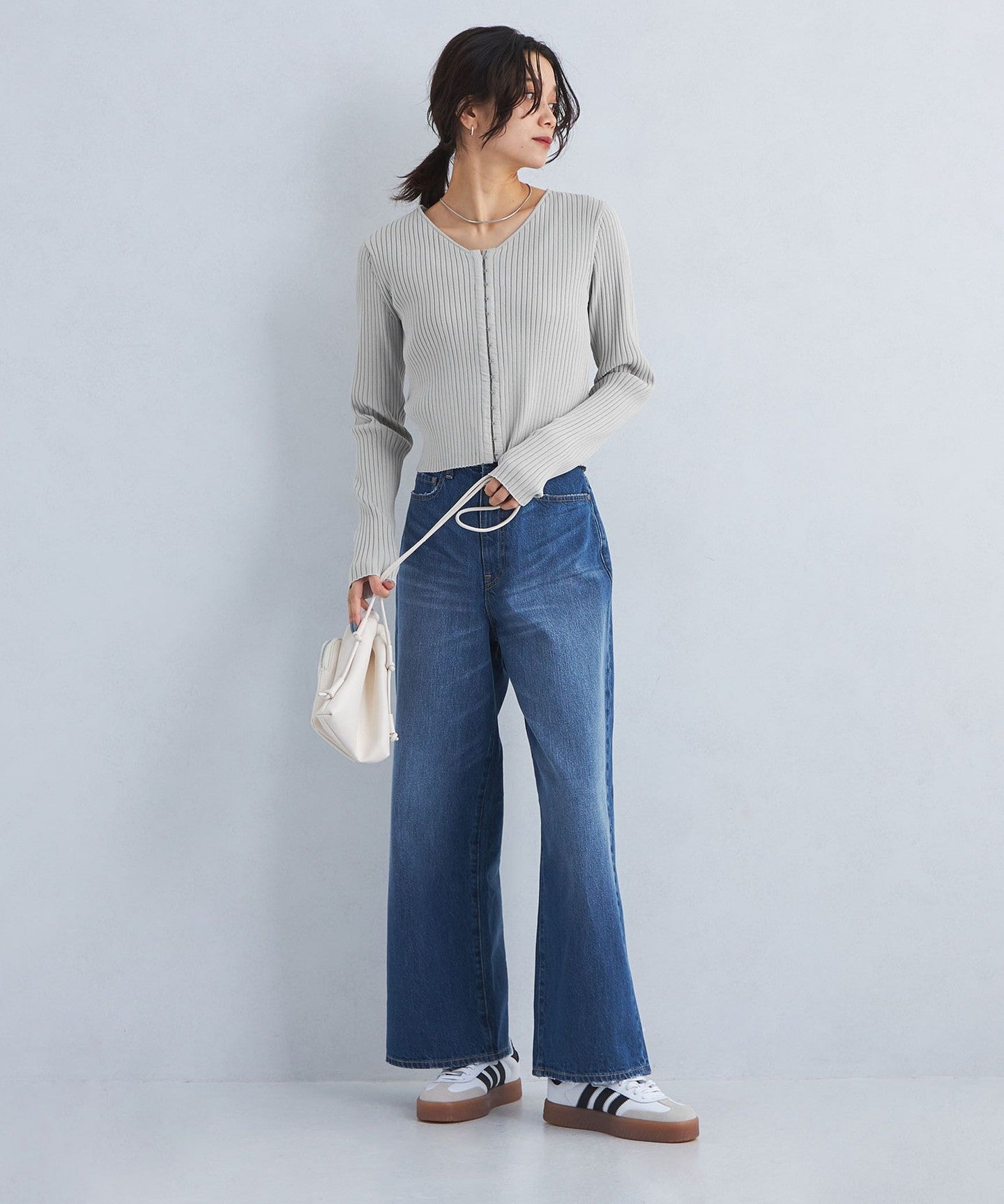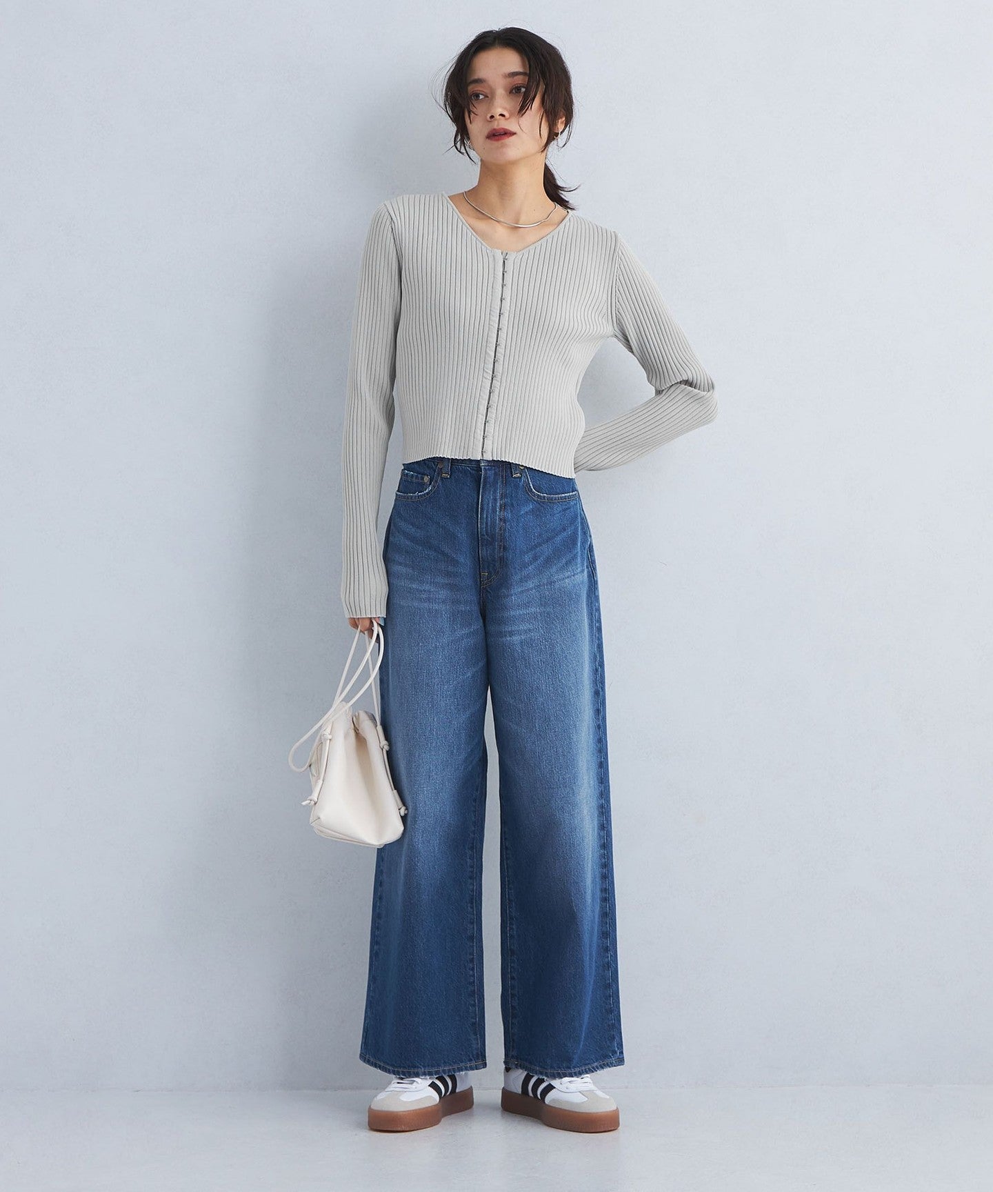 When paired with voluminous bottoms, it makes your upper body look slender and gives a neat impression.