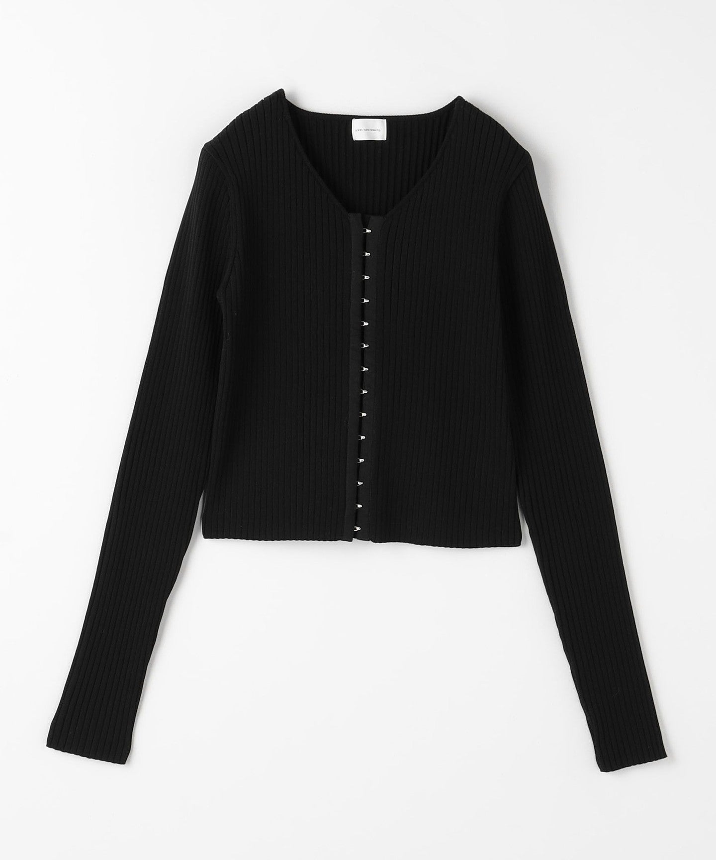 A knit pullover with a front hook design