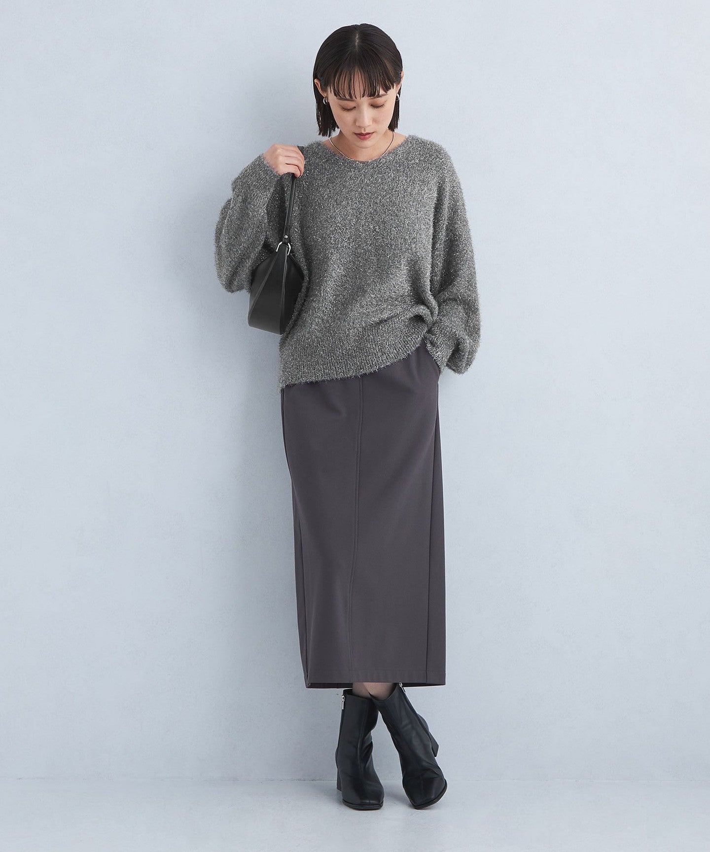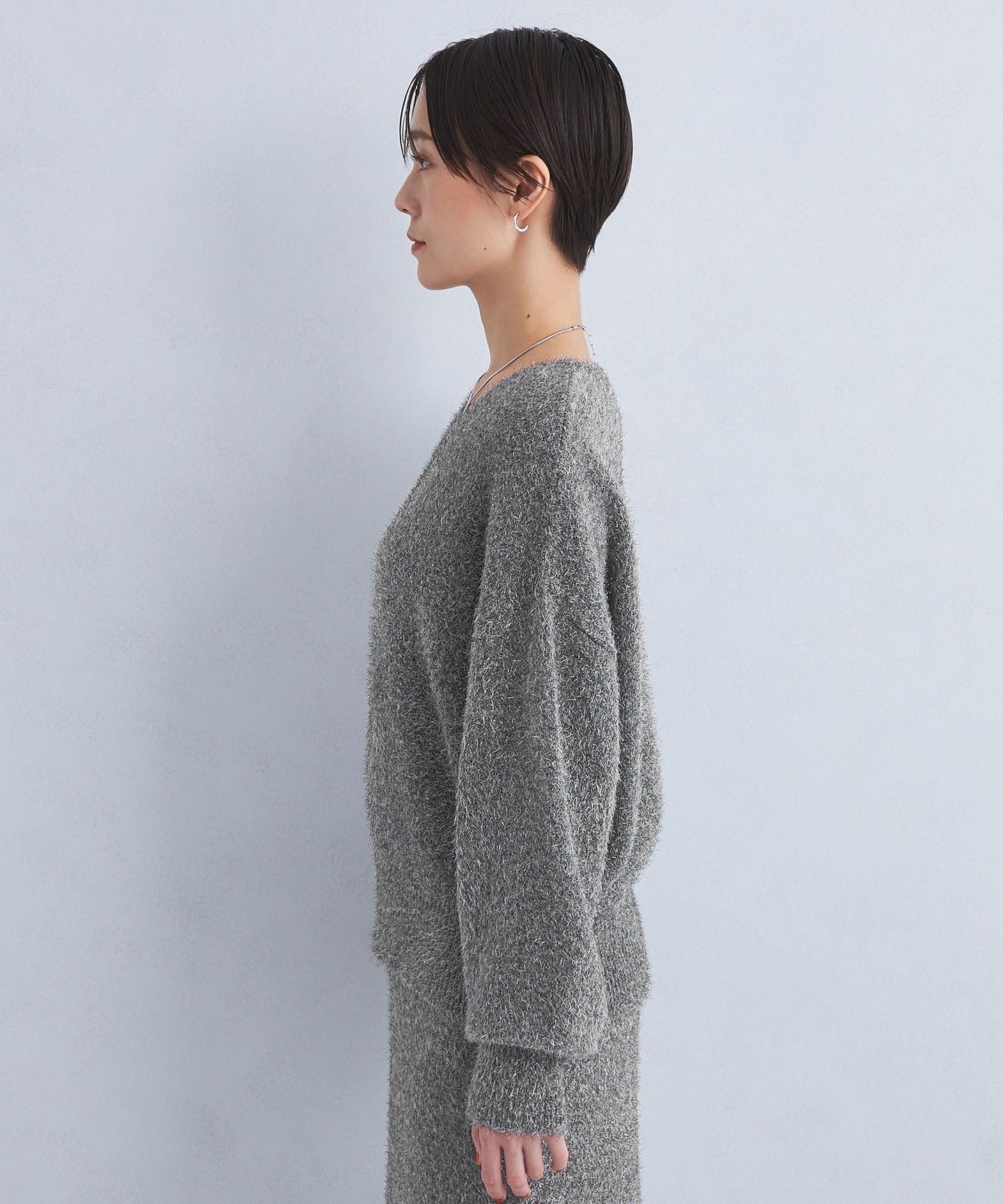 We also recommend wearing it as a set with a skirt made of the same material.