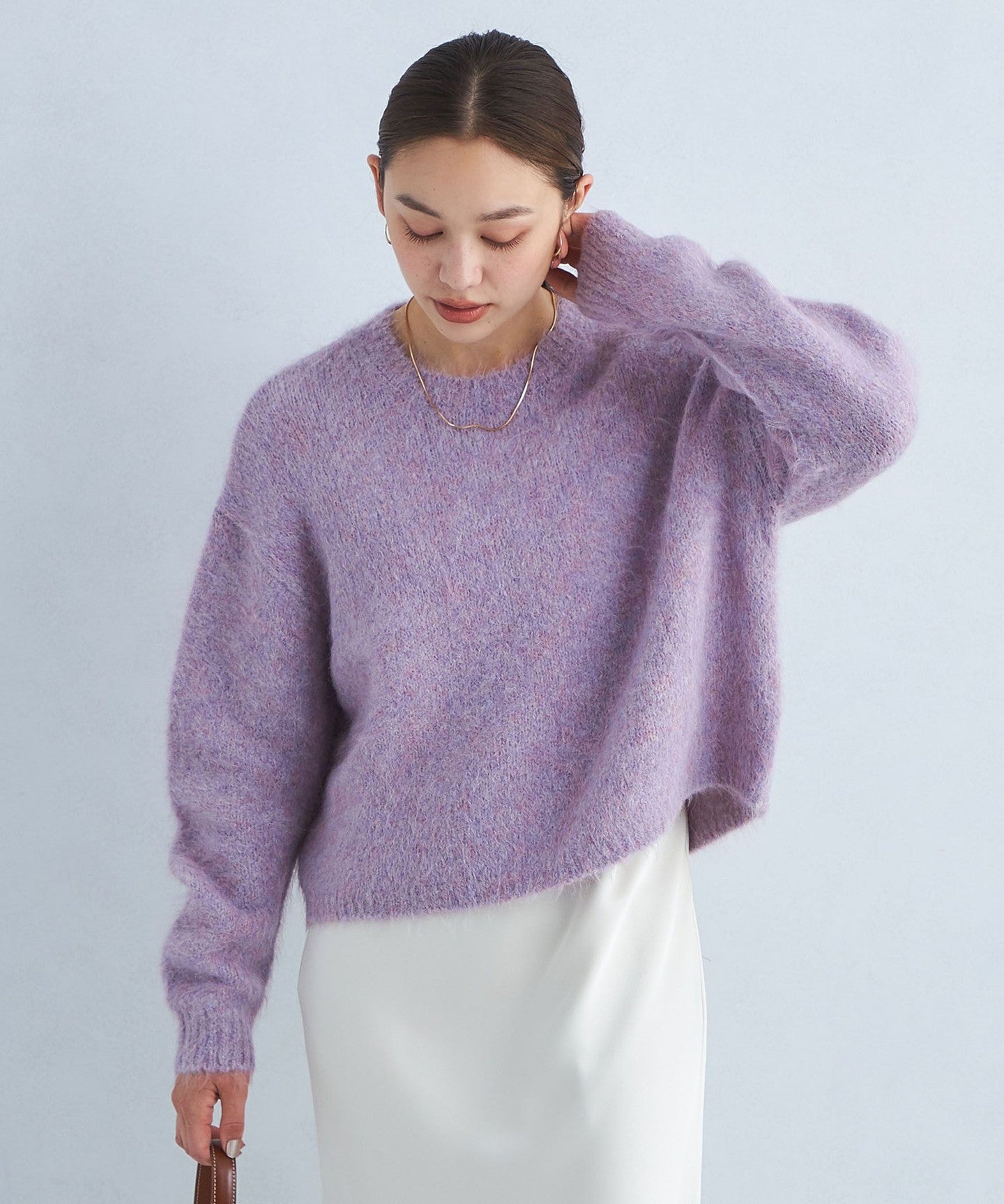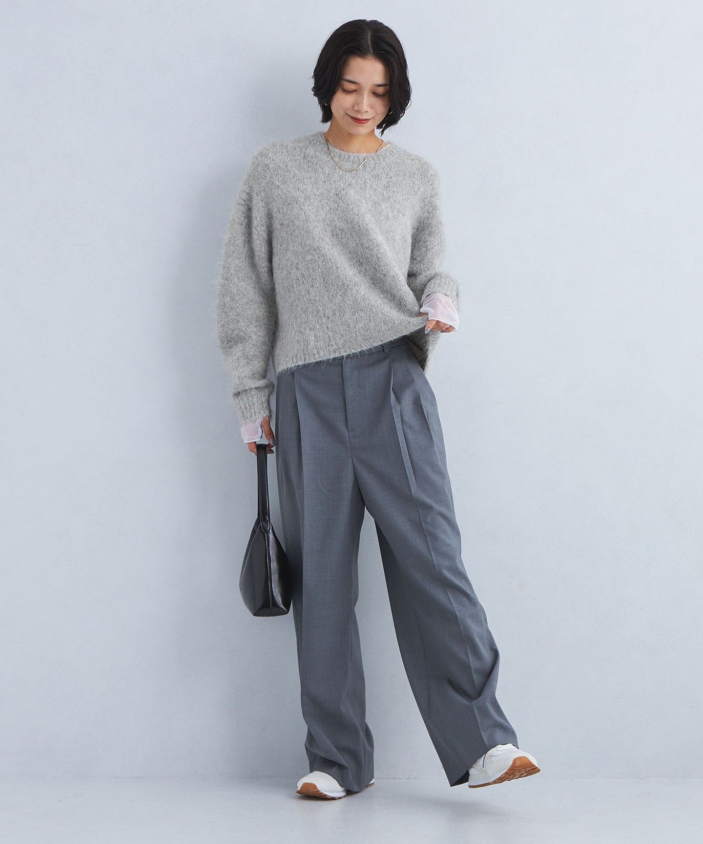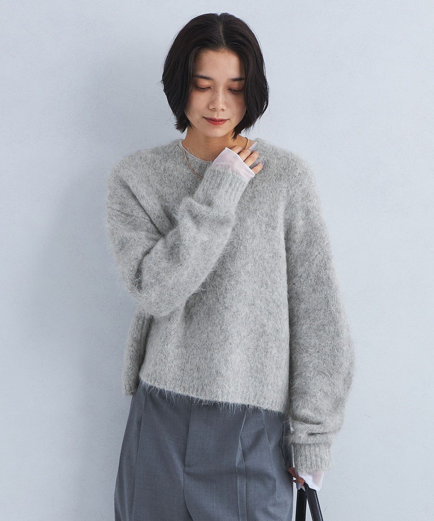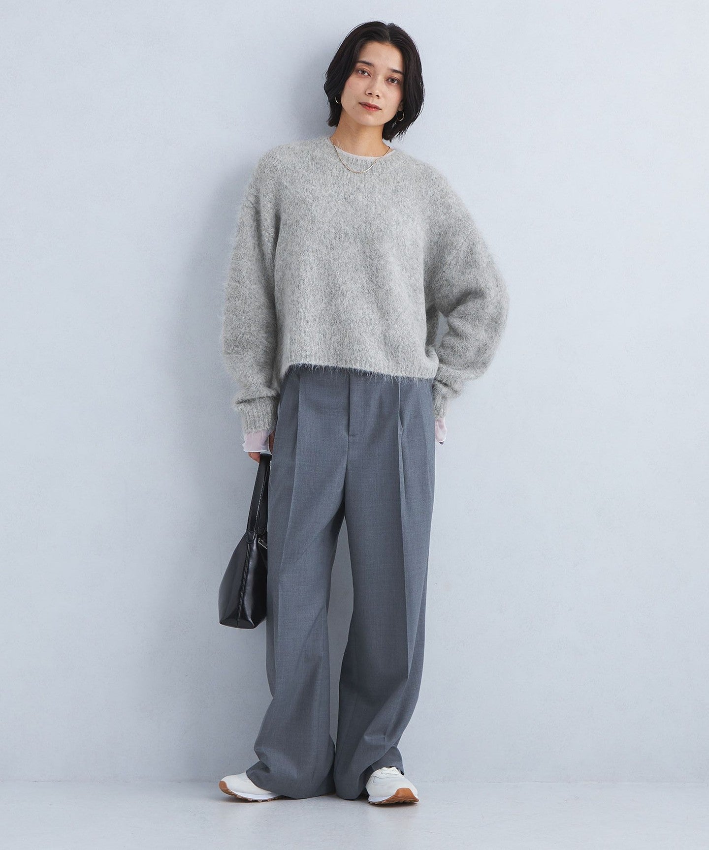 The key point is the balance between the wide width and the cropped length that adds a sense of looseness.KNIT .
