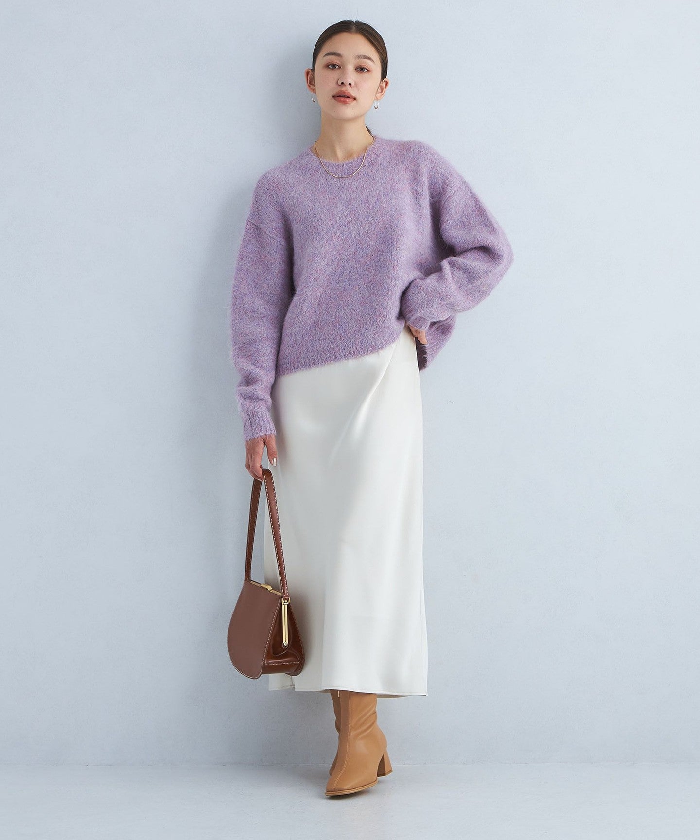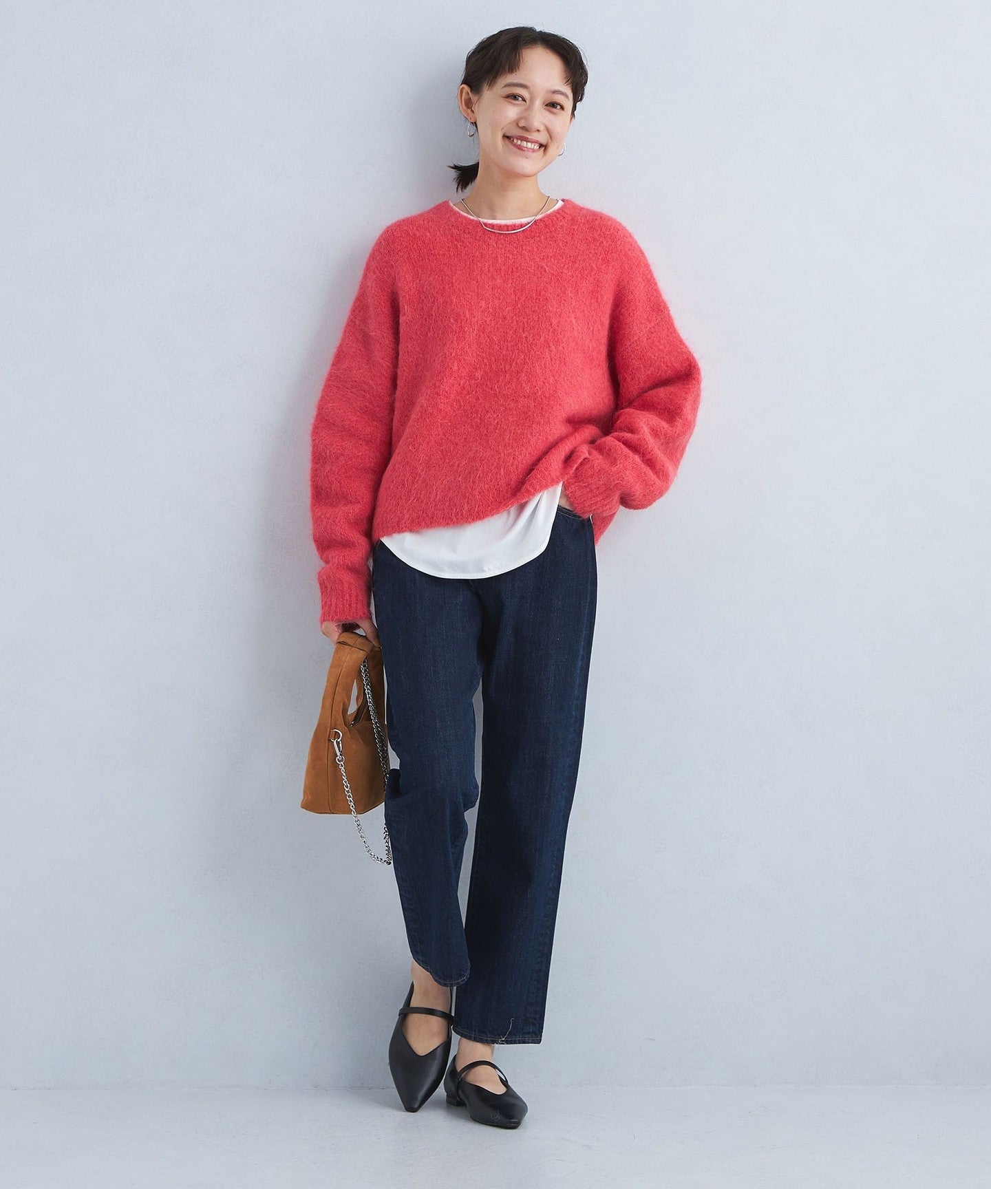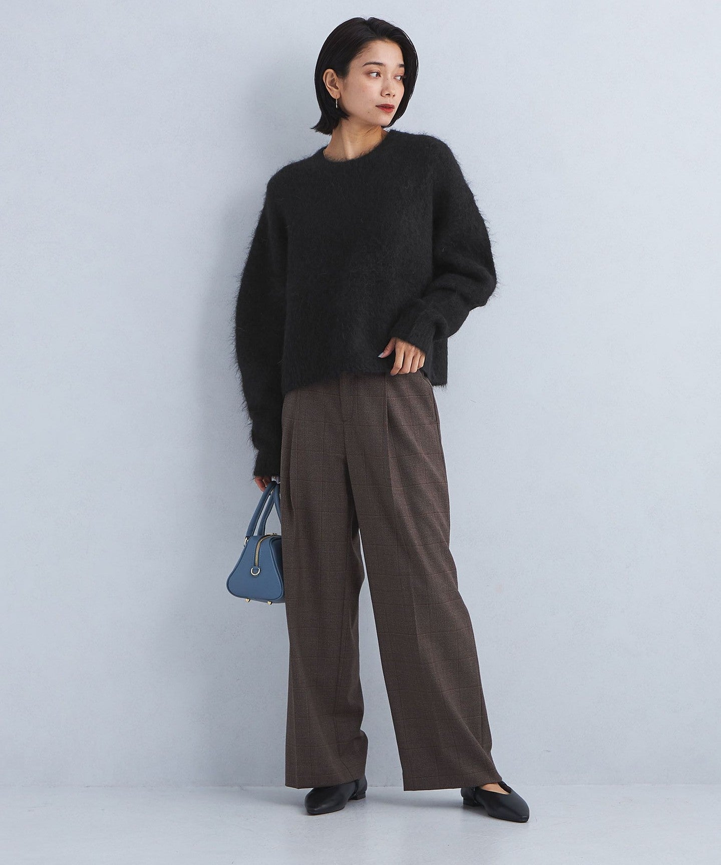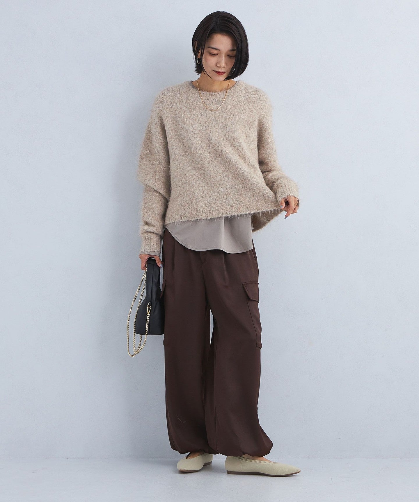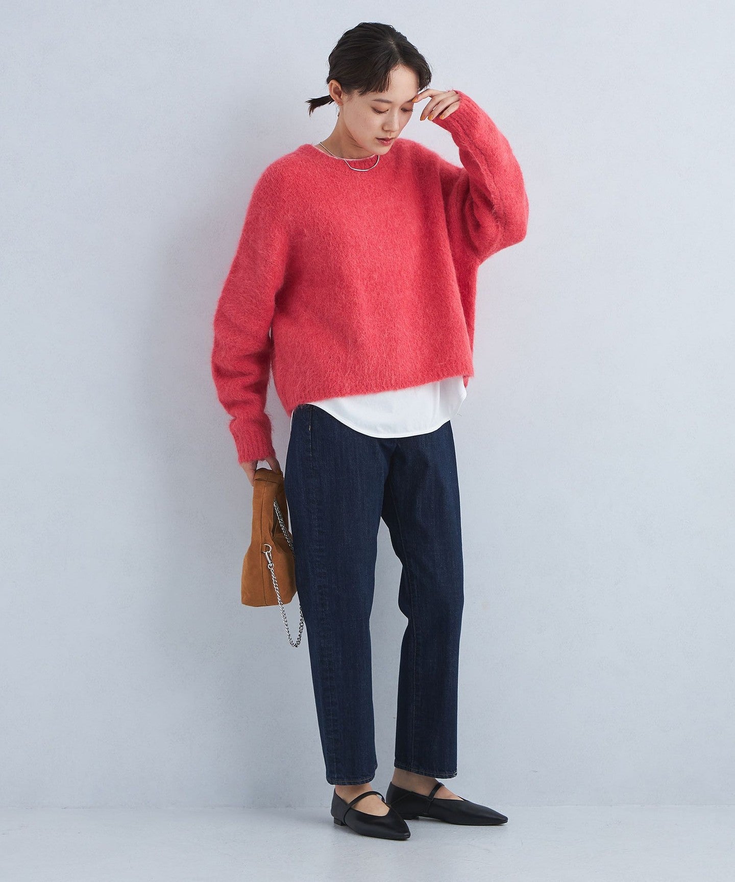 The key point is the balance between the wide width and the cropped length that adds a sense of looseness.KNIT .