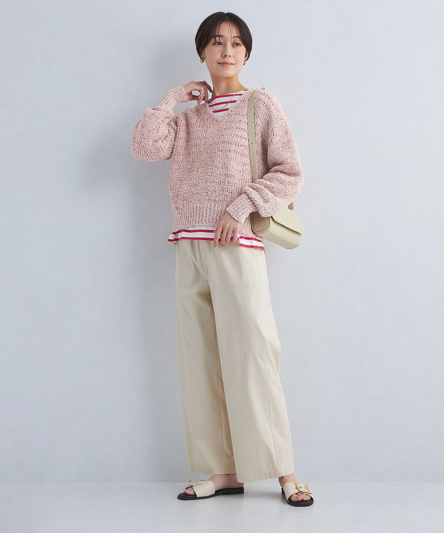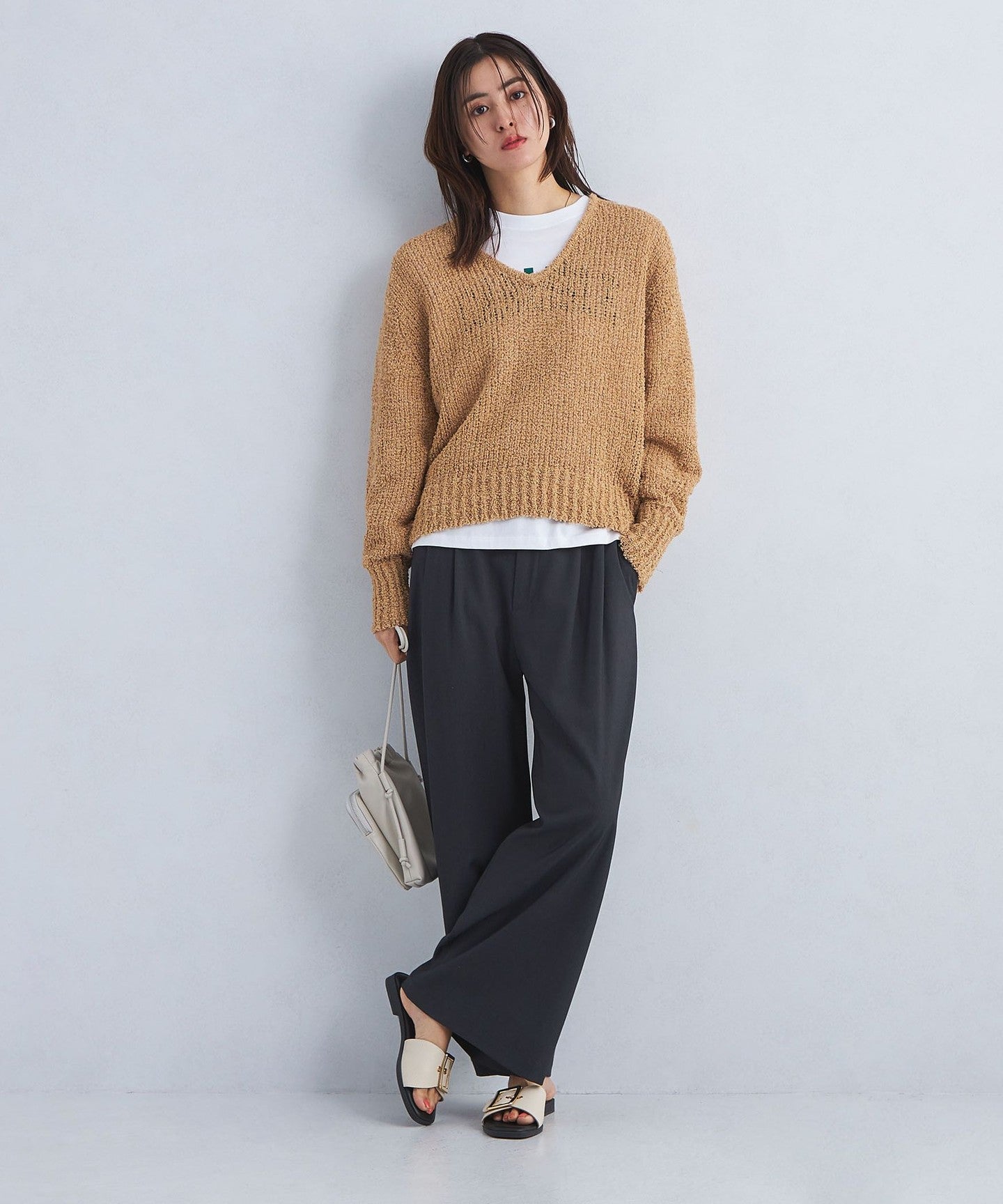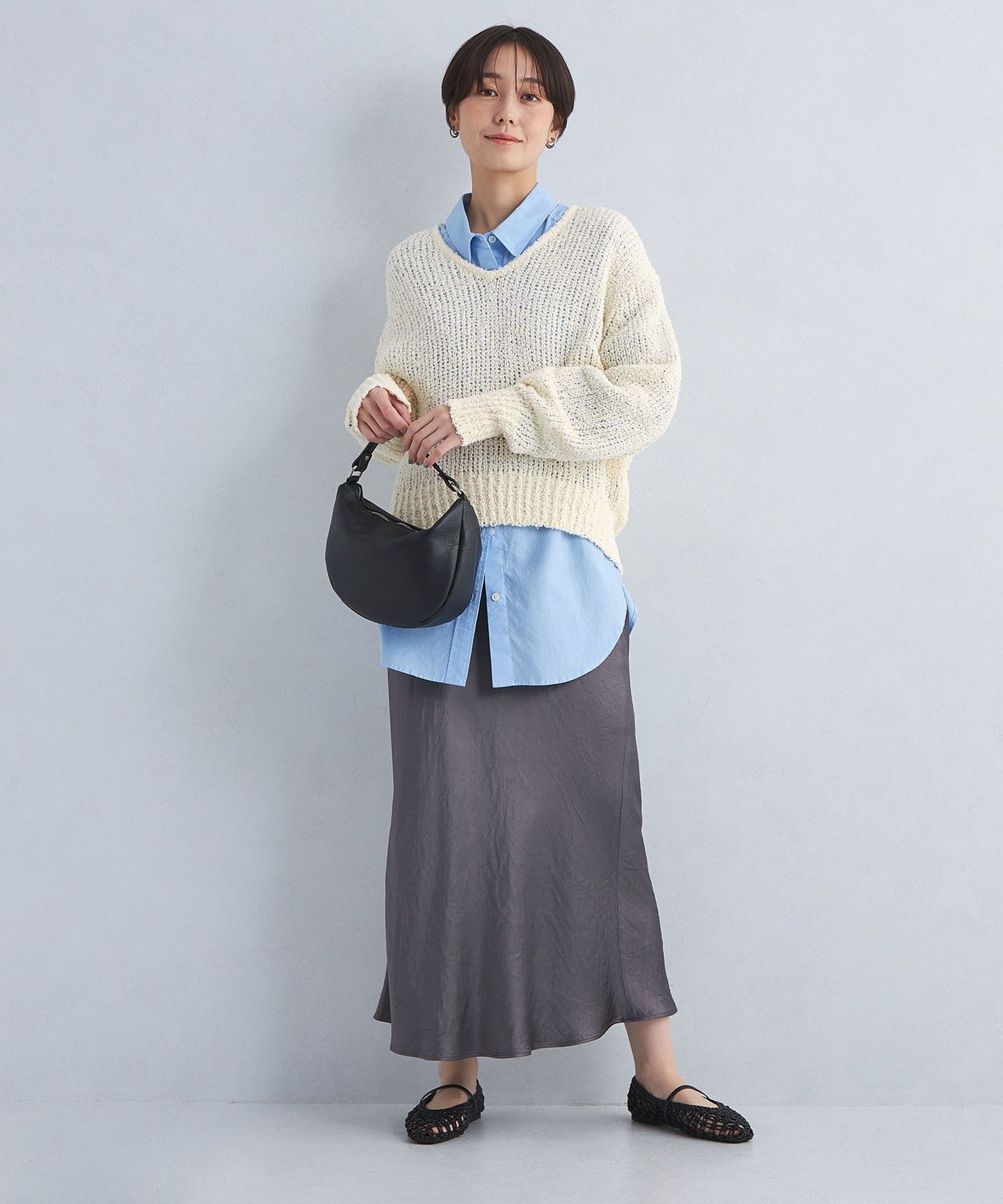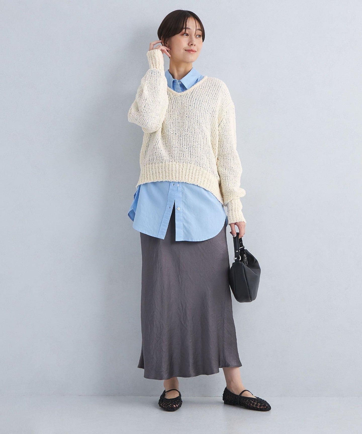 The impression changes depending on the innerwear you layer it with, such as a shirt or a cut-and-sew top.
