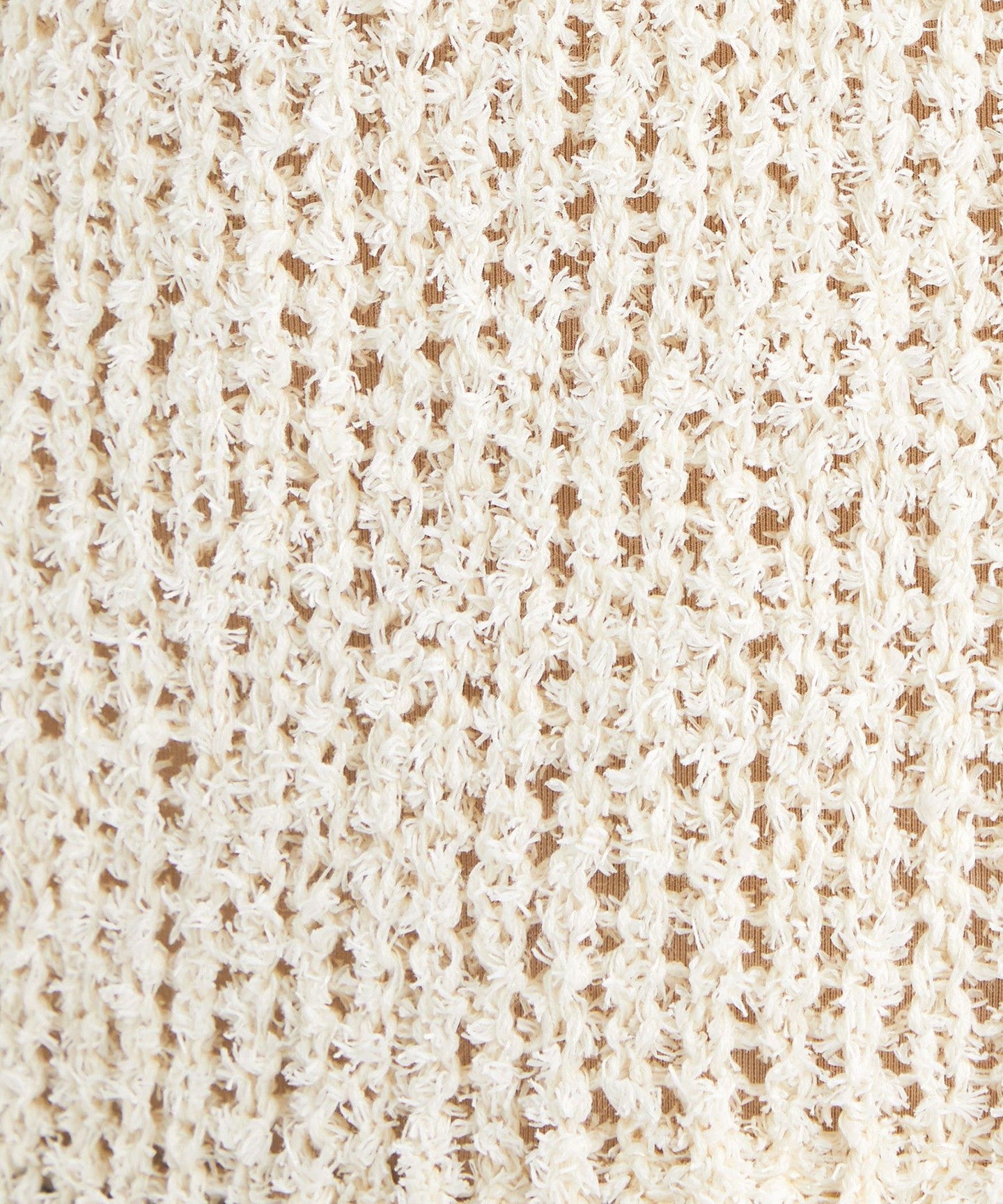 Trendy fringe is expressed in knit material, creating a gorgeous and voluminous look.