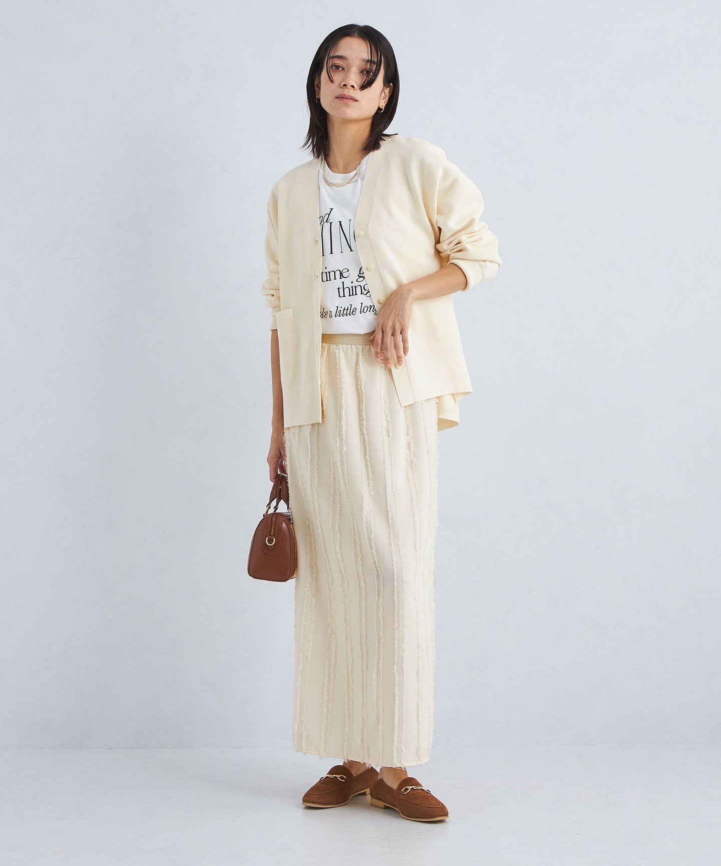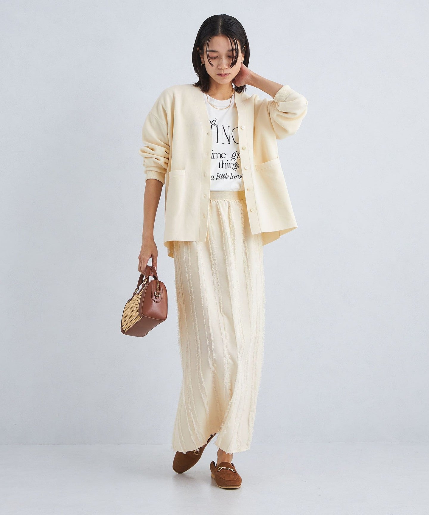 It goes well with casual denim, but we also recommend a feminine look paired with an airy skirt.
