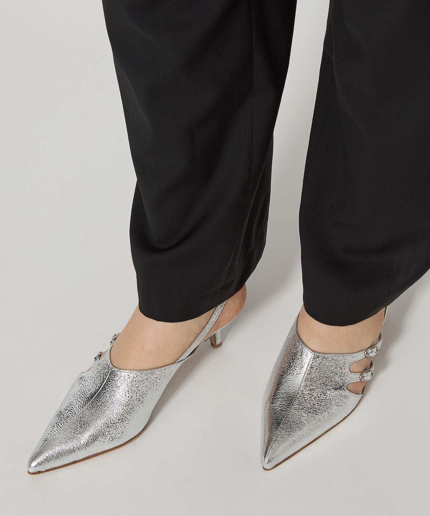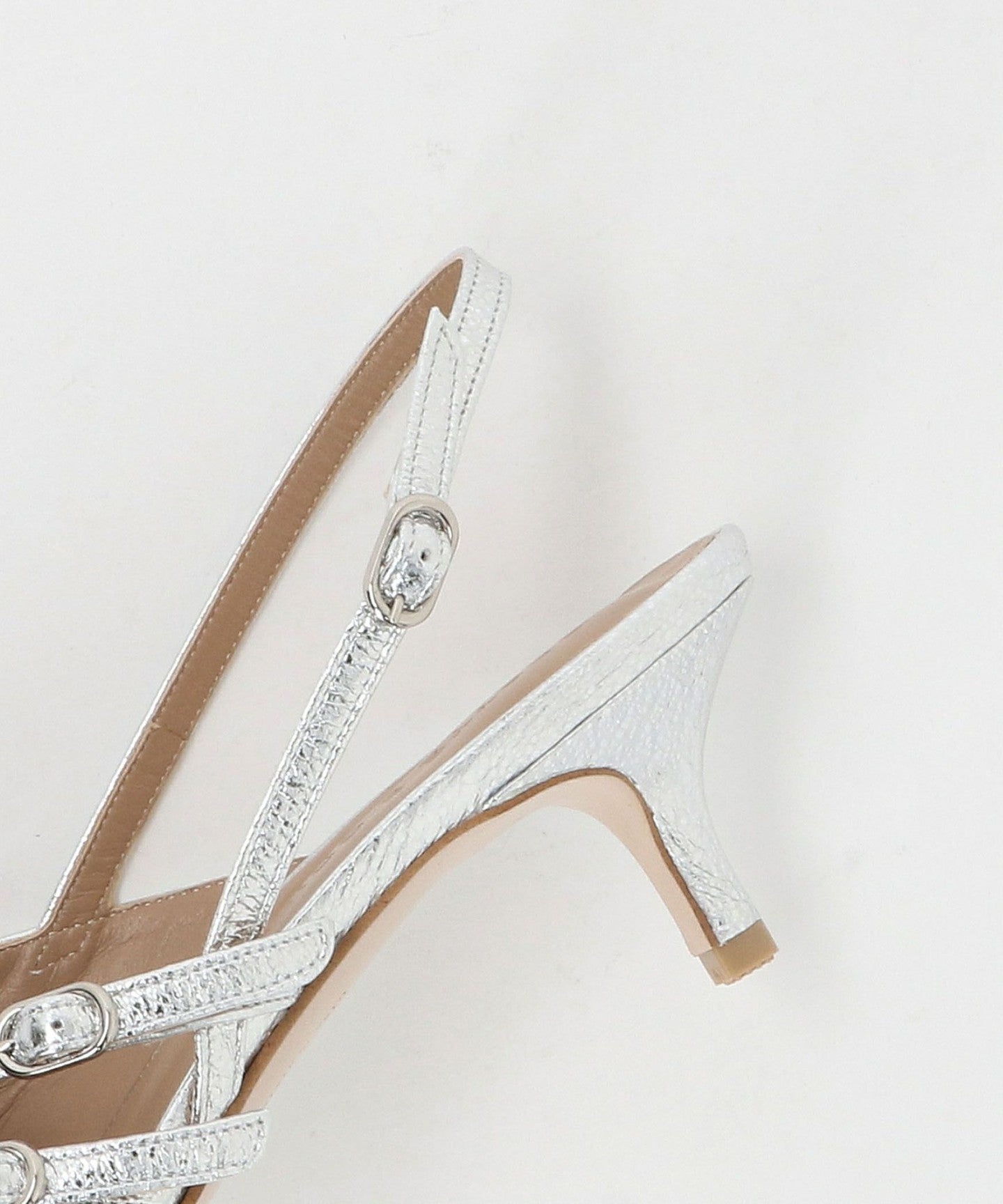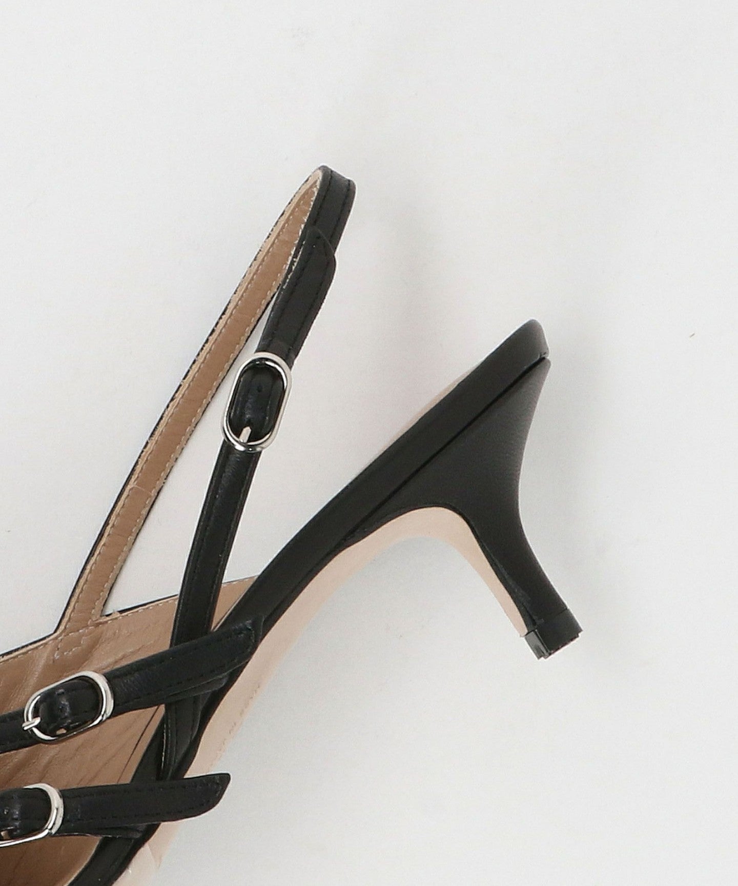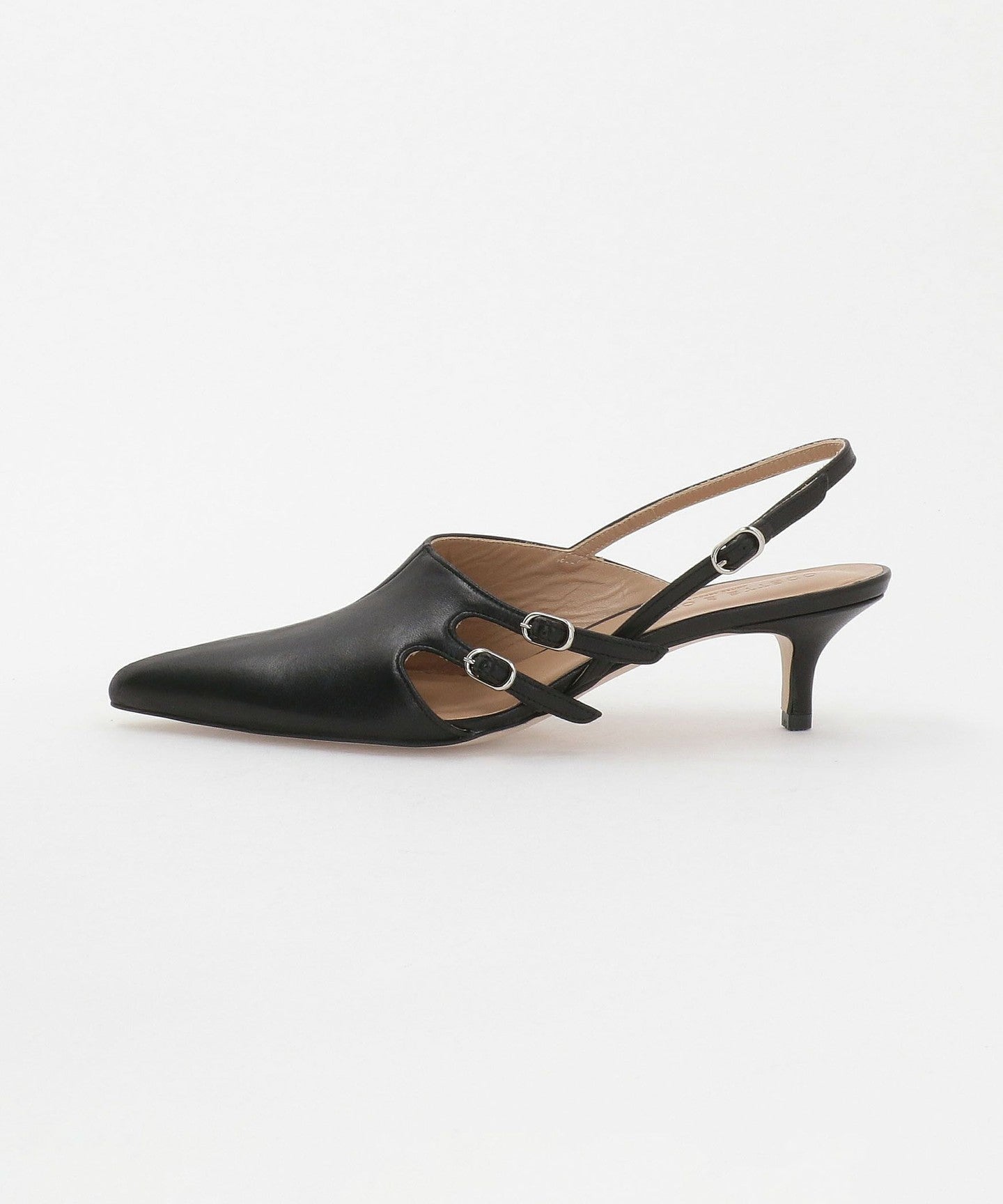Back belt pumps with an impressive asymmetrical upper design.