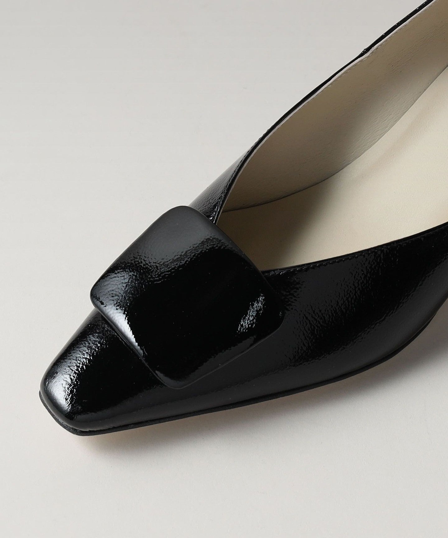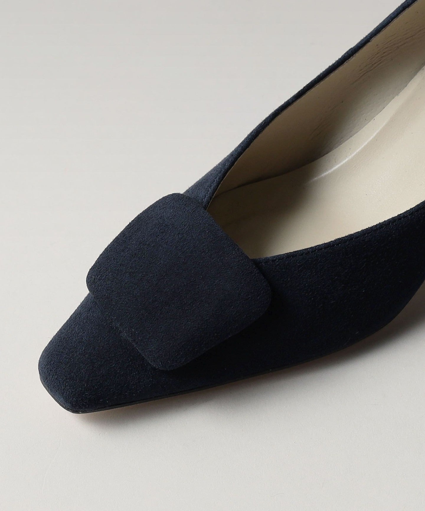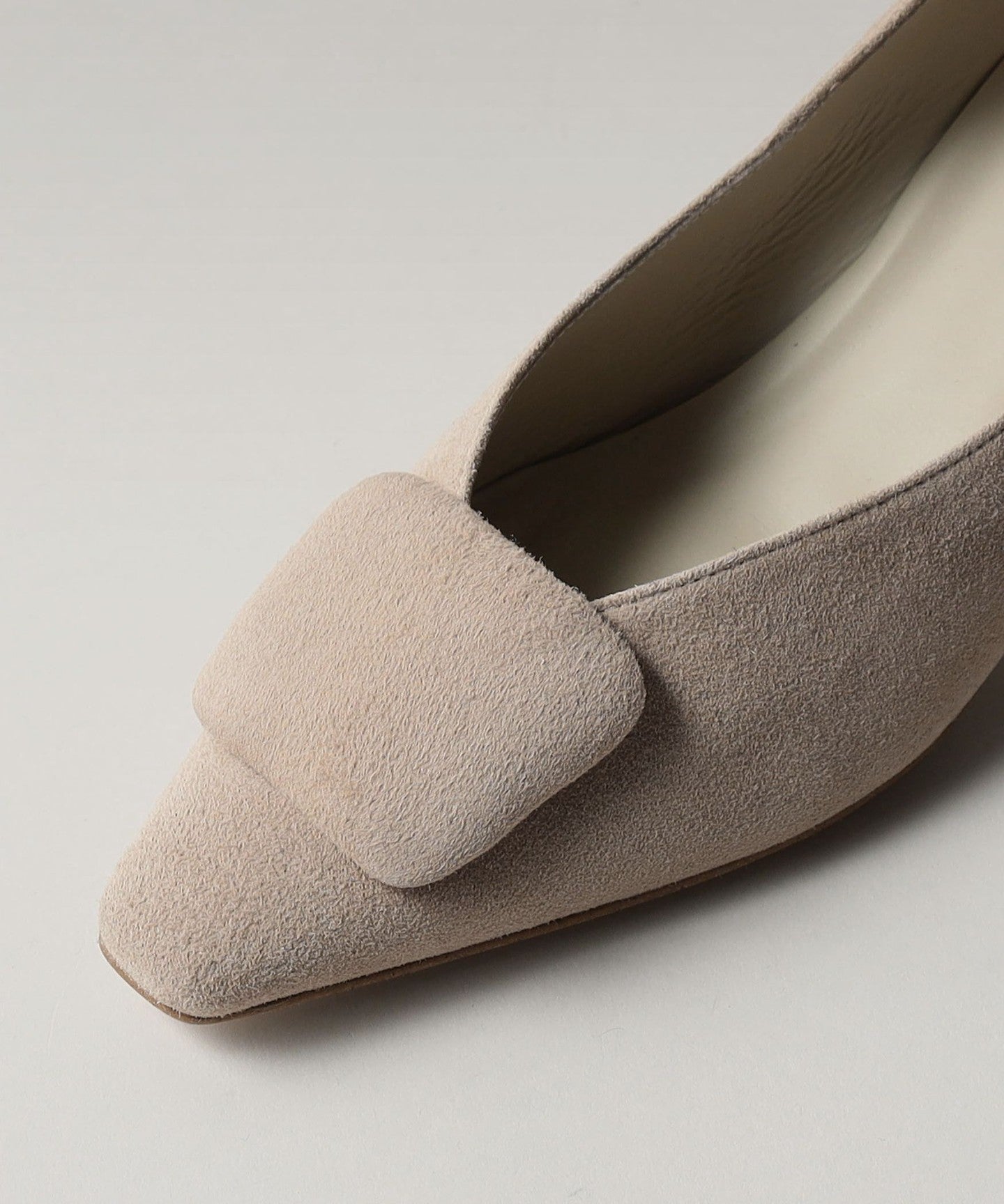 The square ornament is made from the same material as the upper and features a soft design with cushioning for a plump feel.