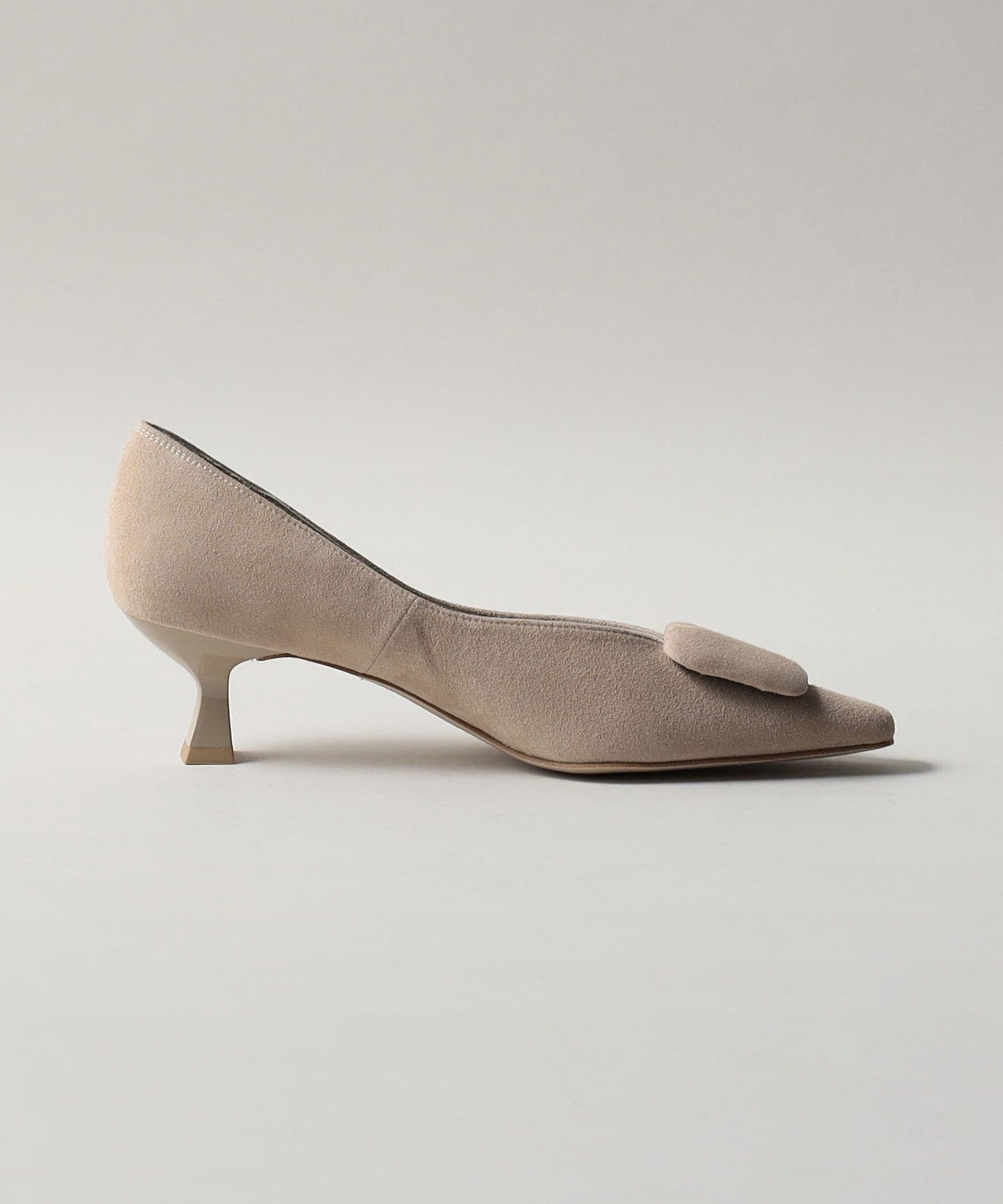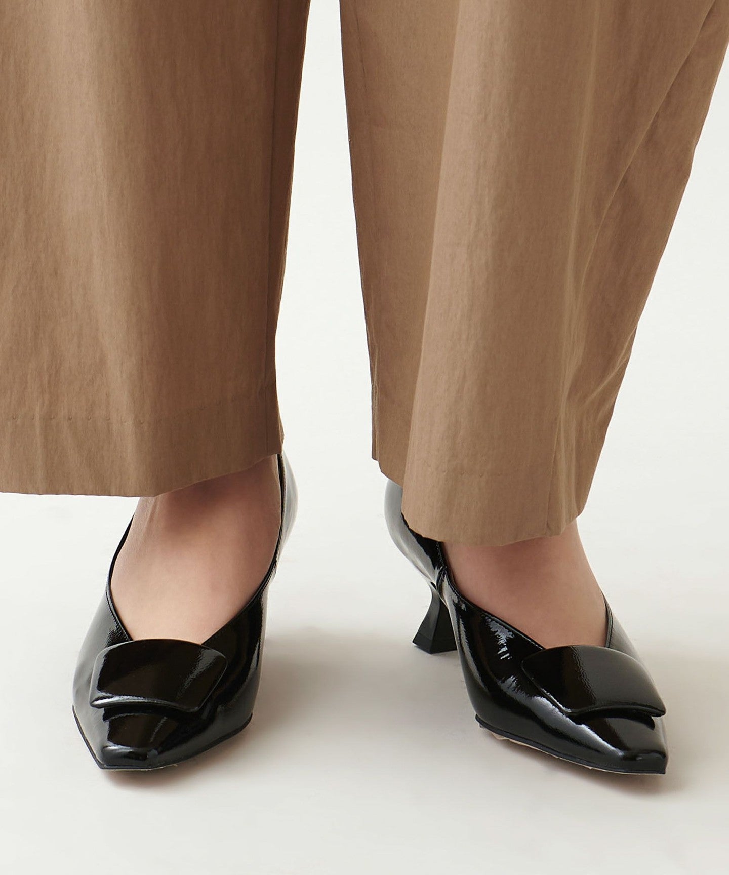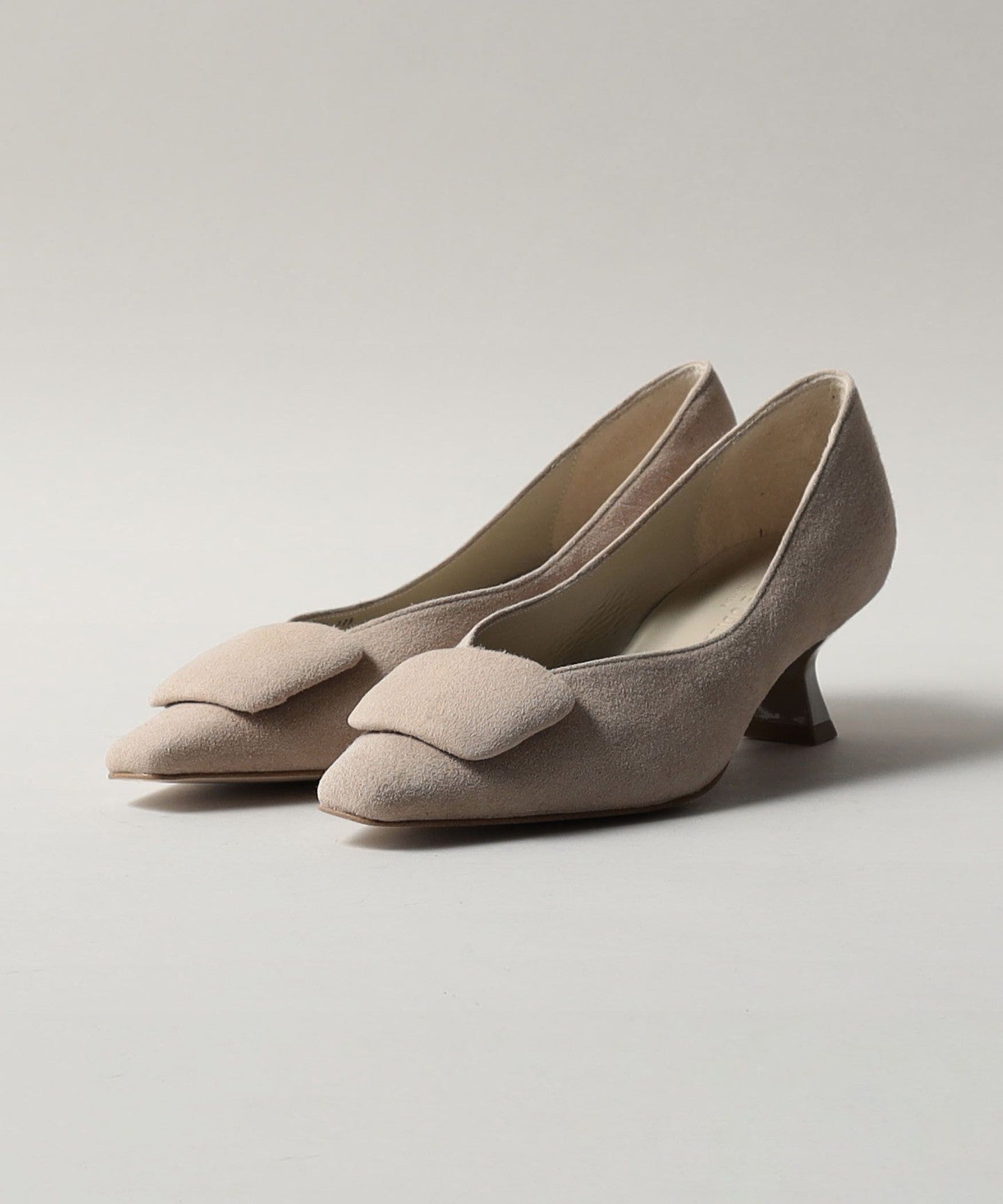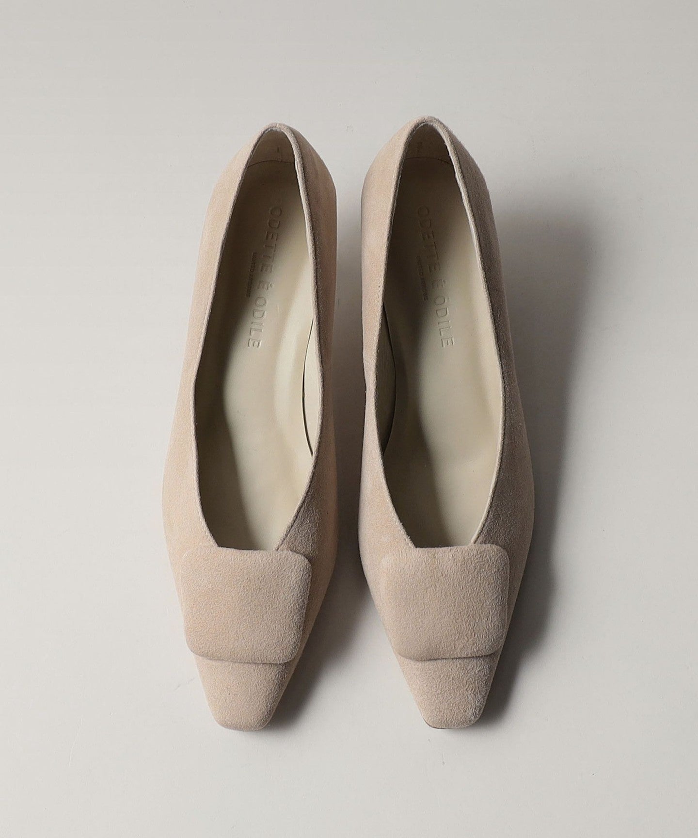 The square ornament is made from the same material as the upper and features a soft design with cushioning for a plump feel.