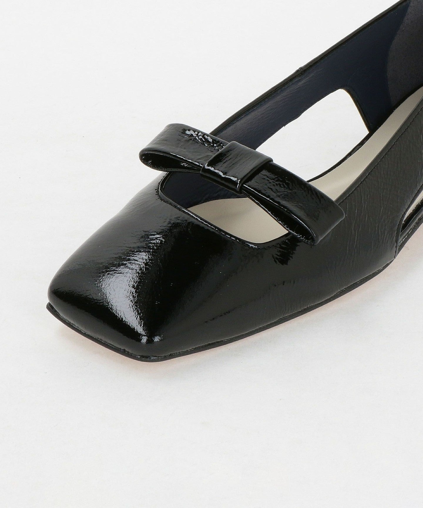 A pair of shoes with a wide square toe that gives a calm impression.