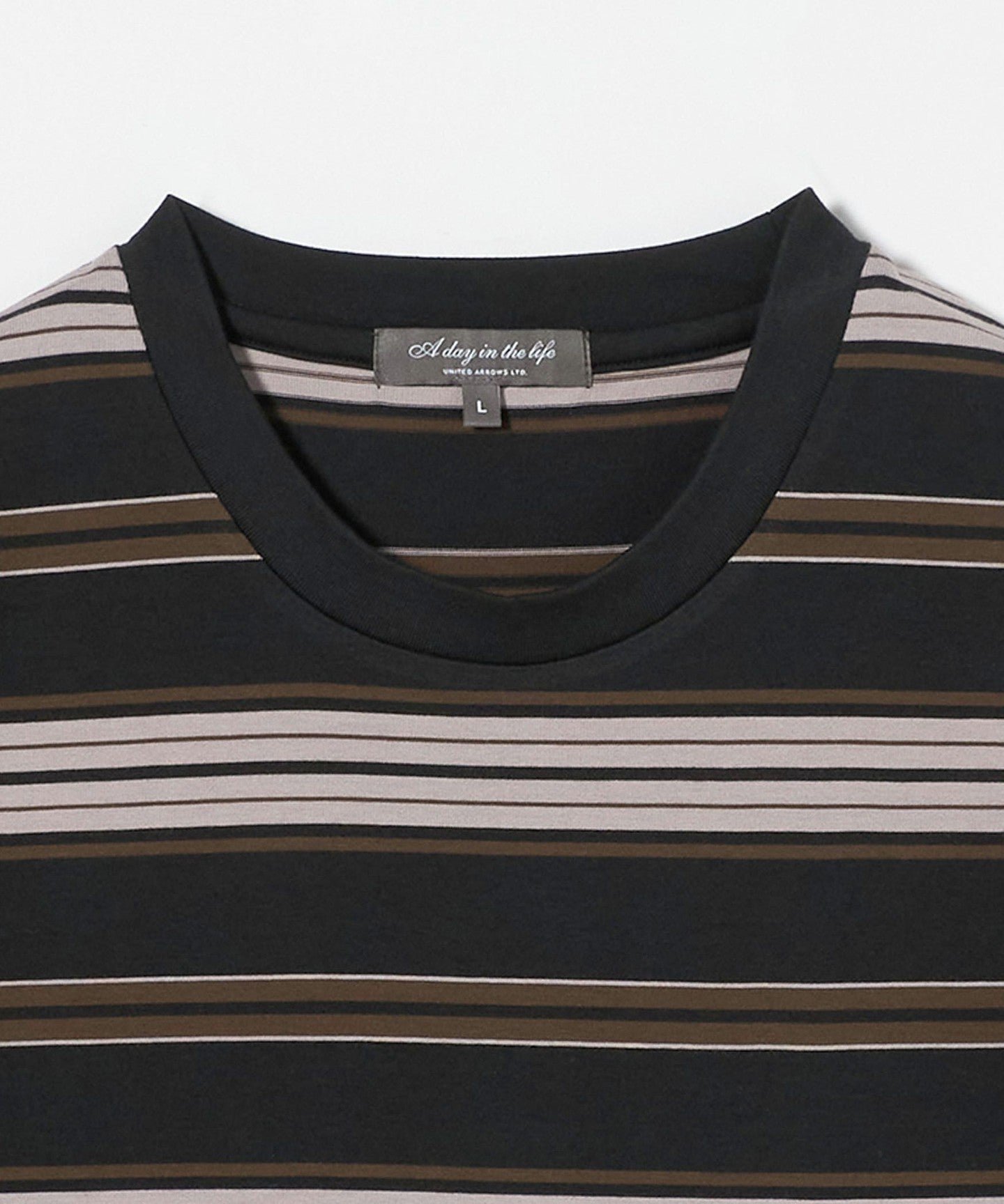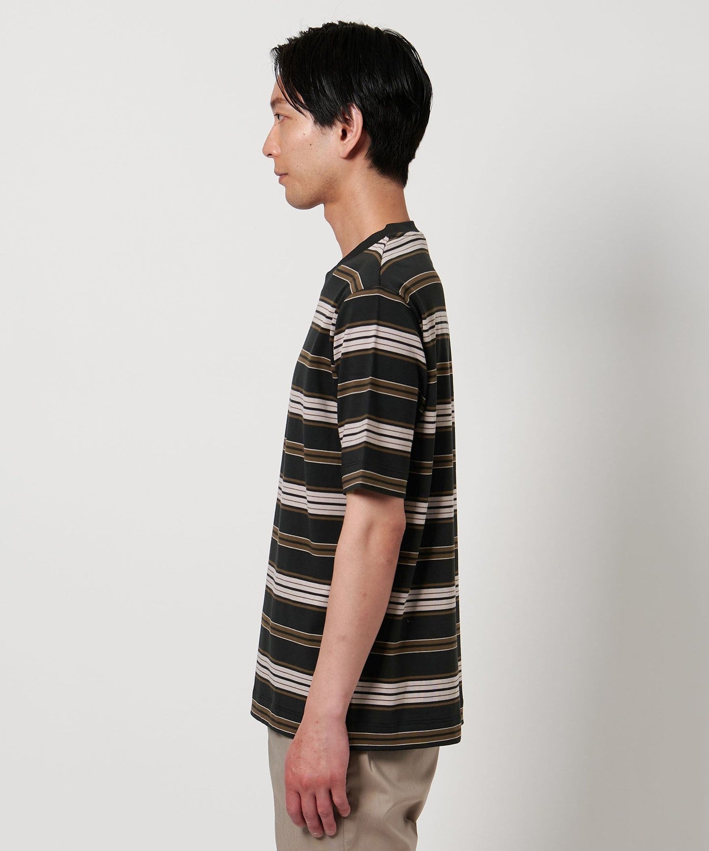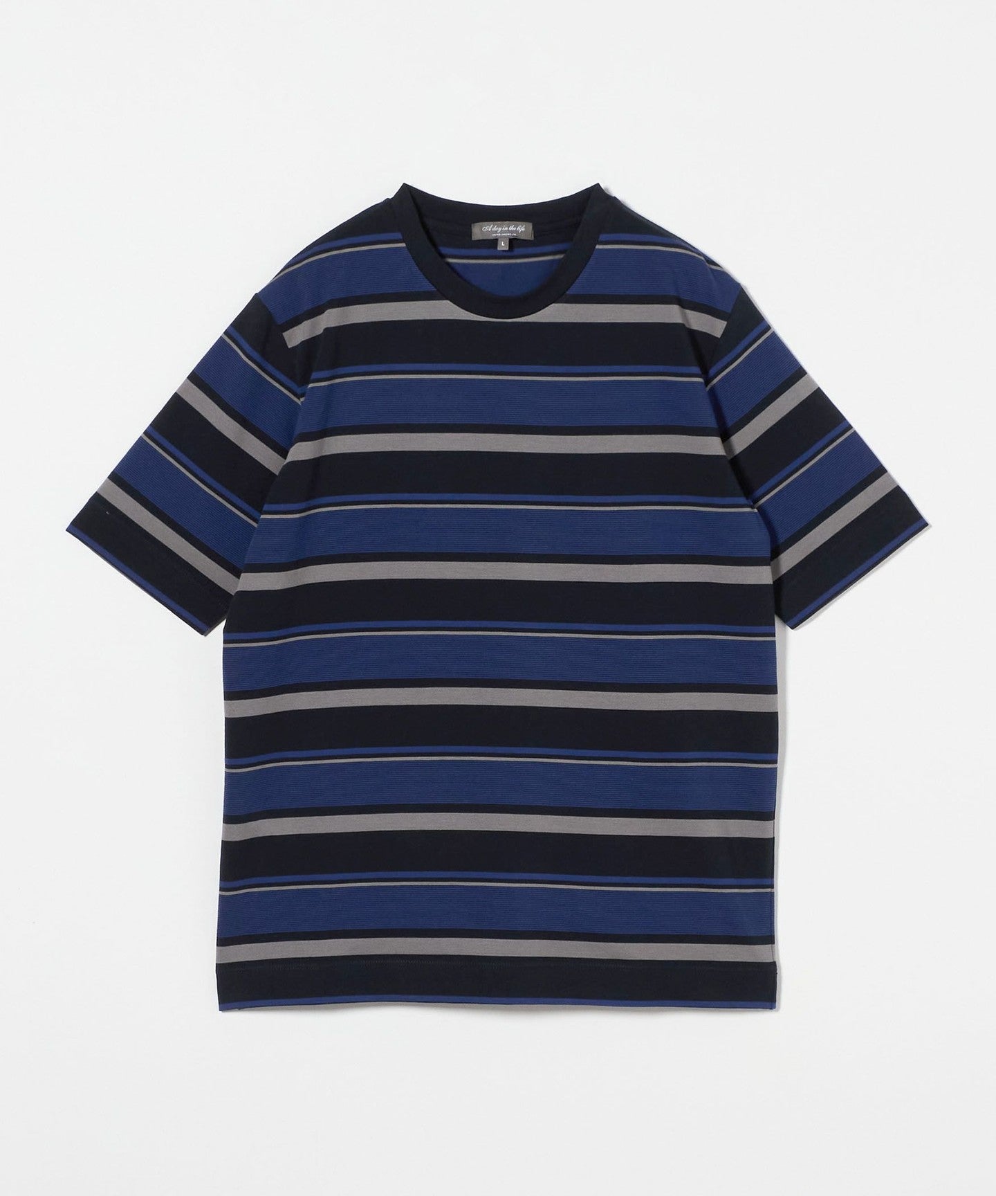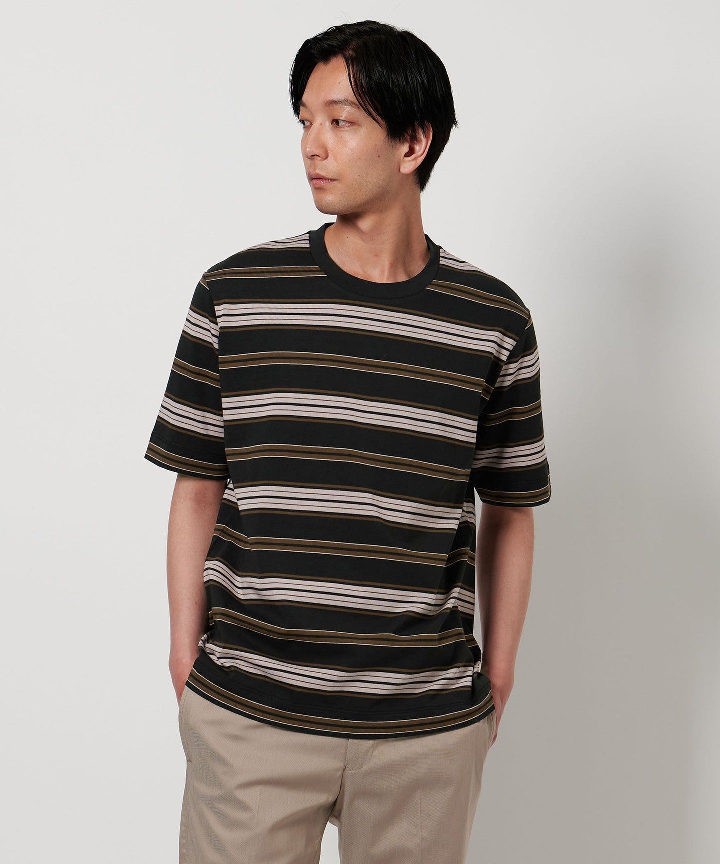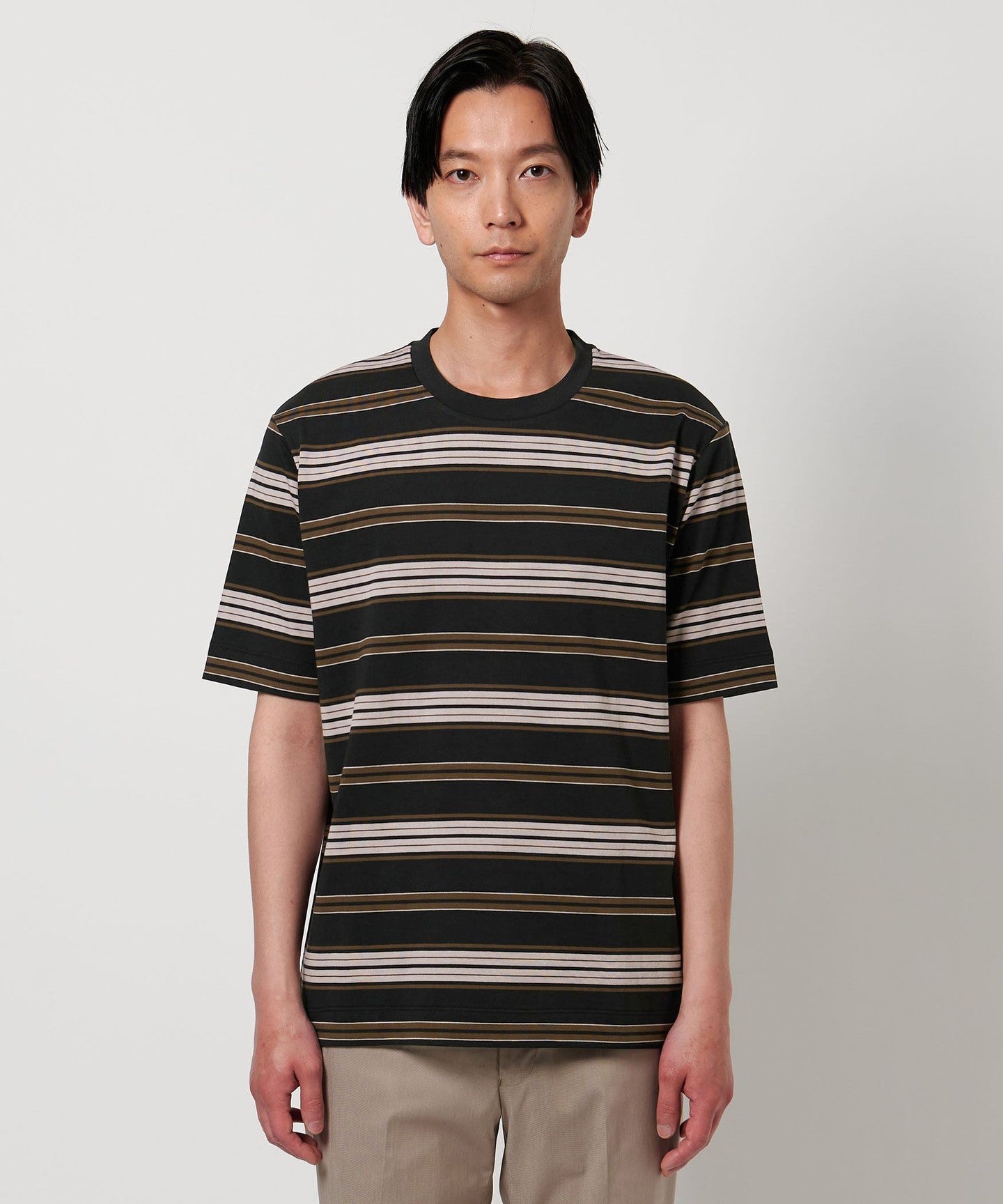 A multi-border T-shirt that adds a refreshing touch to summer styling.