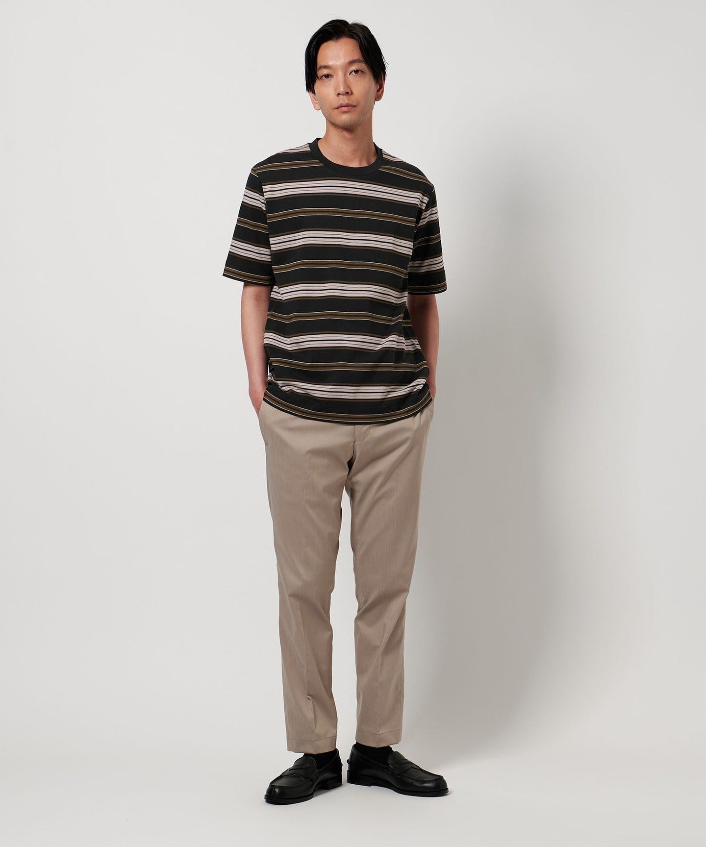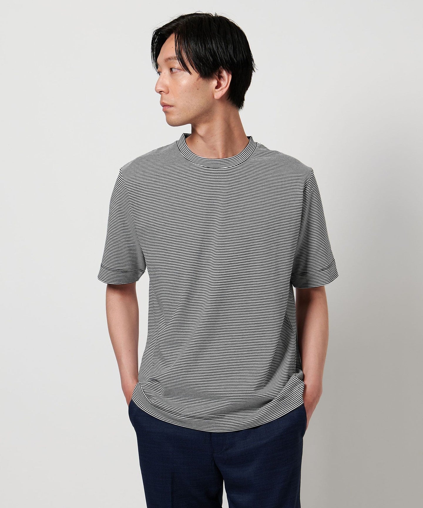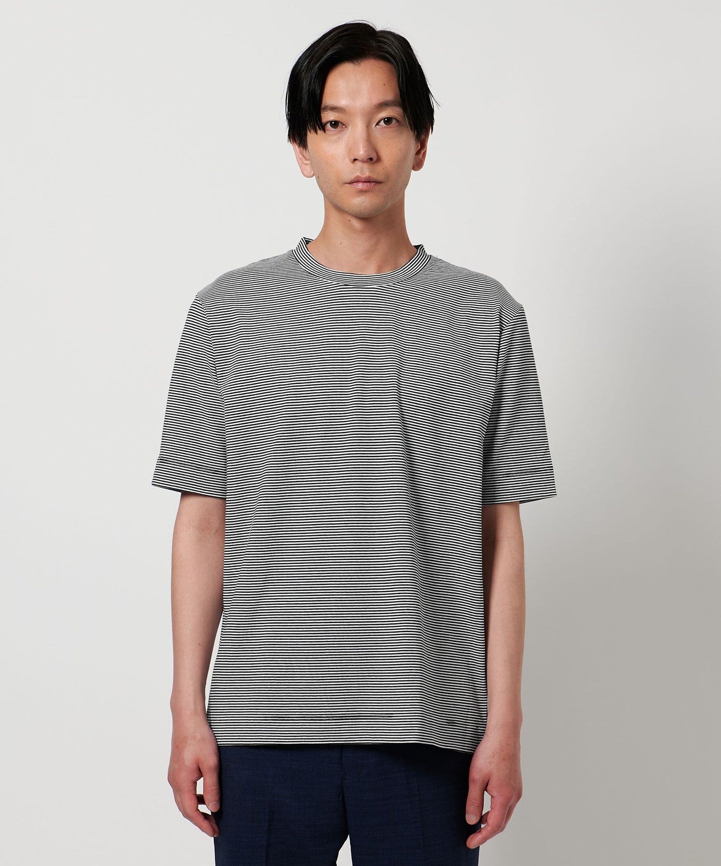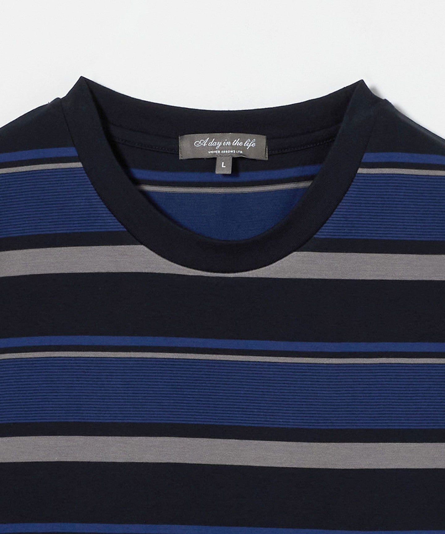A multi-border T-shirt that adds a refreshing touch to summer styling.