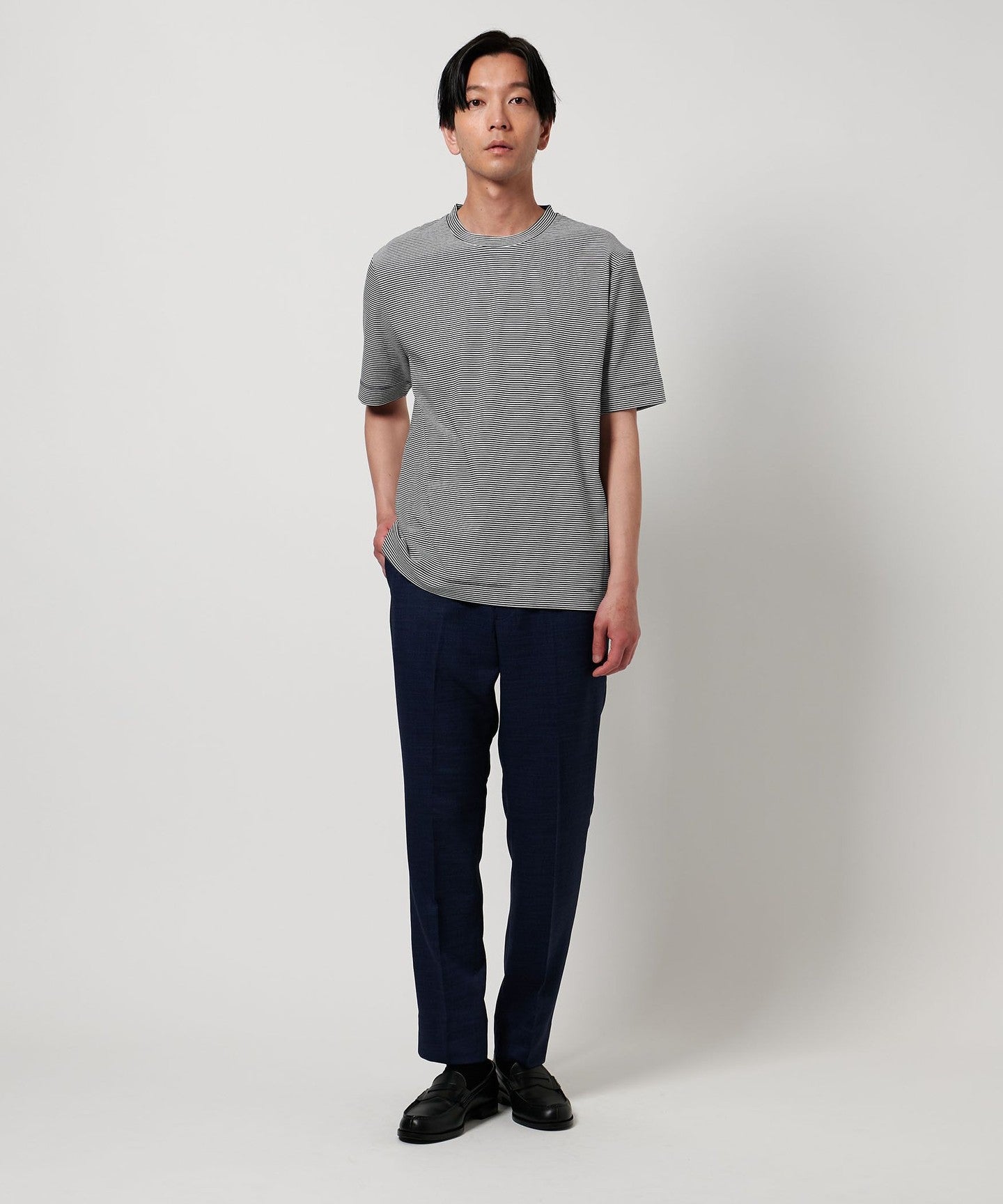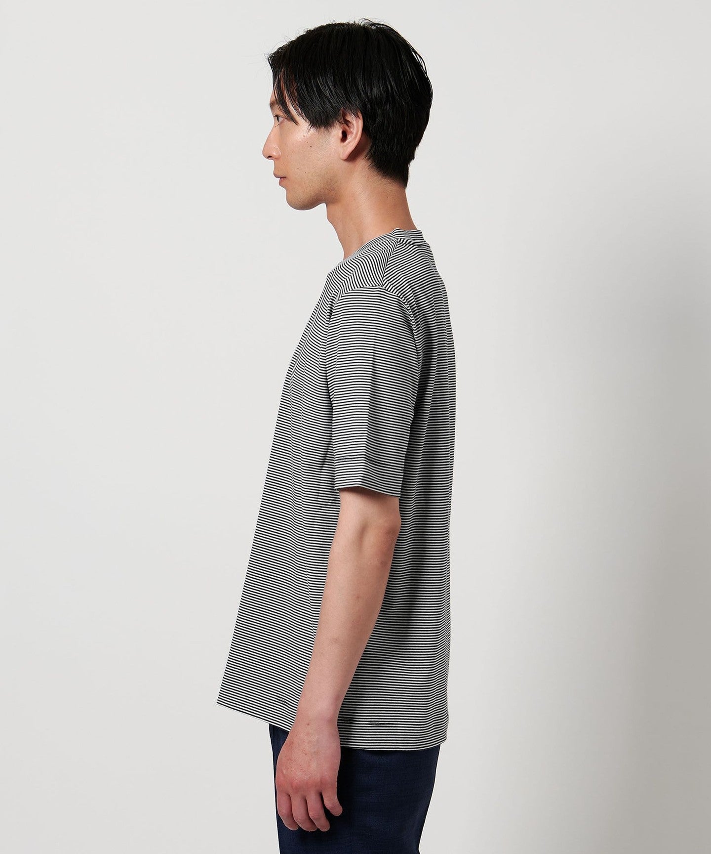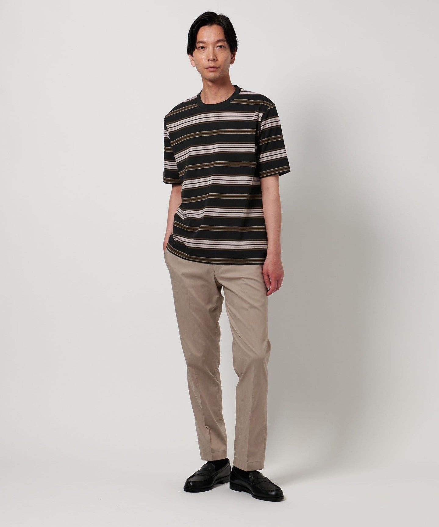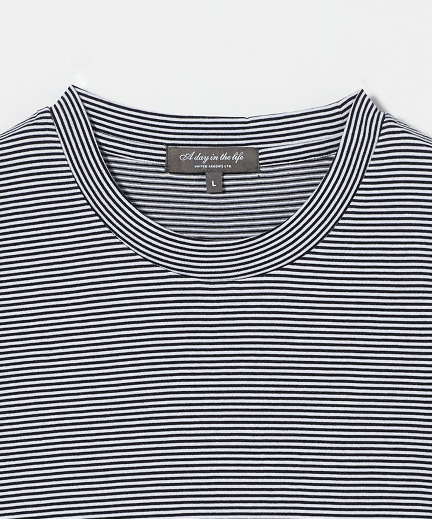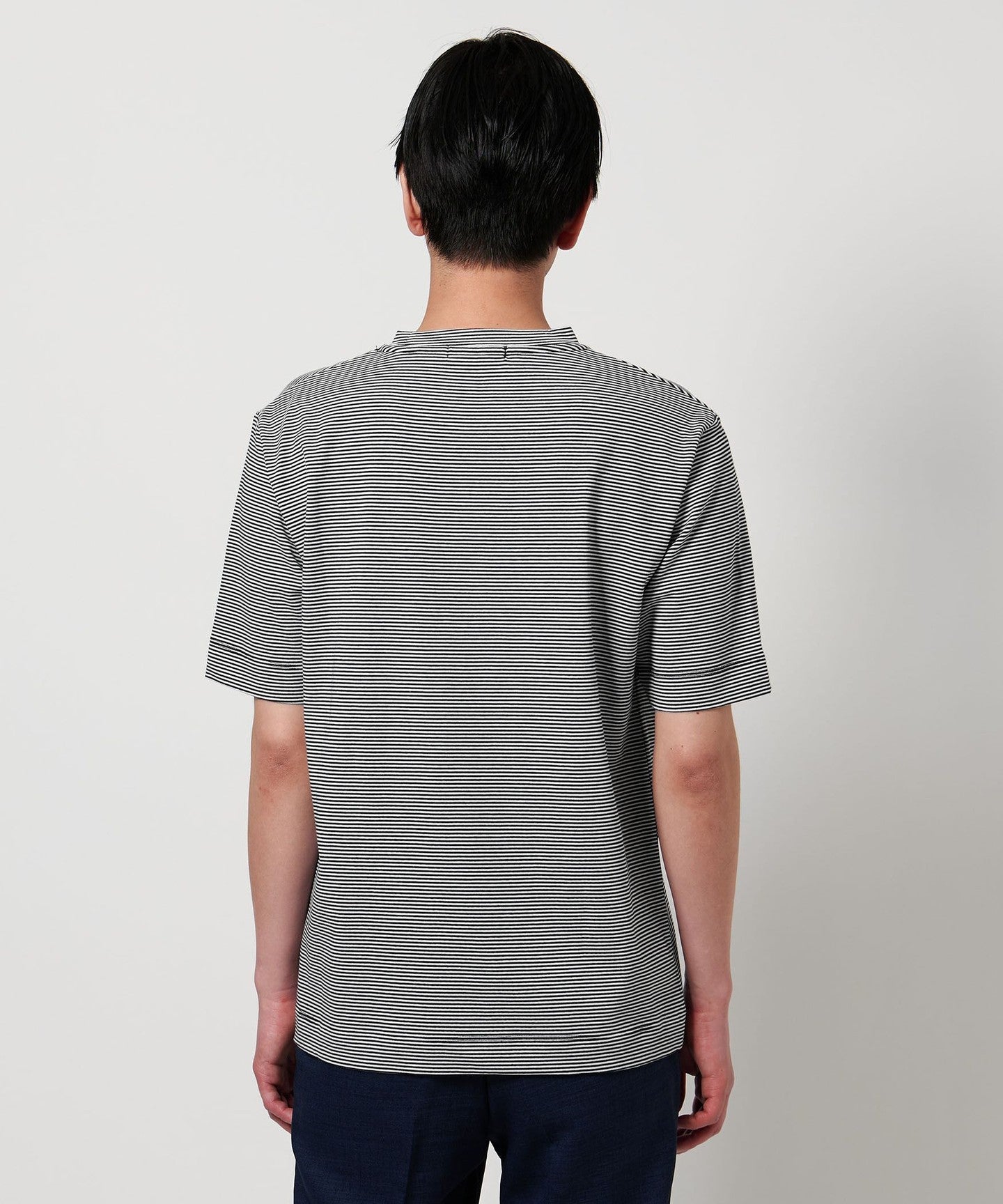 A multi-border T-shirt that adds a refreshing touch to summer styling.